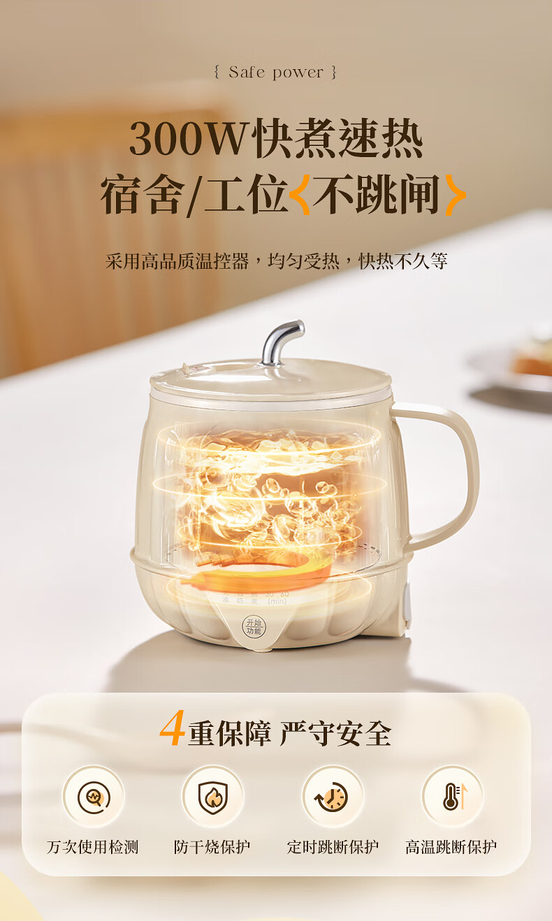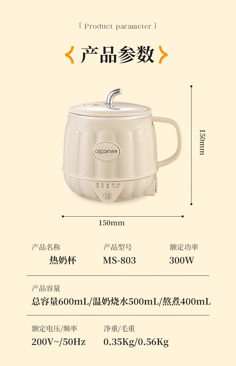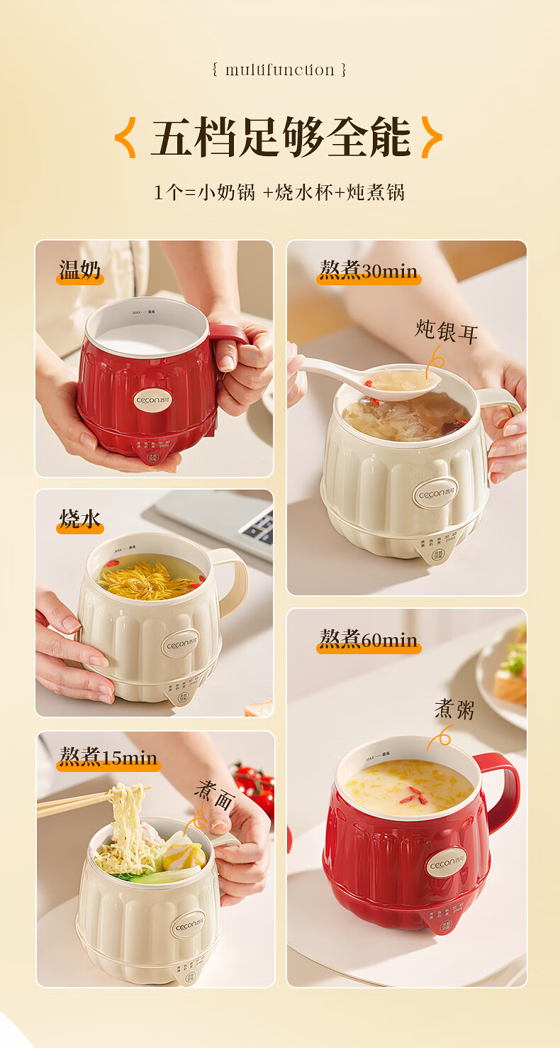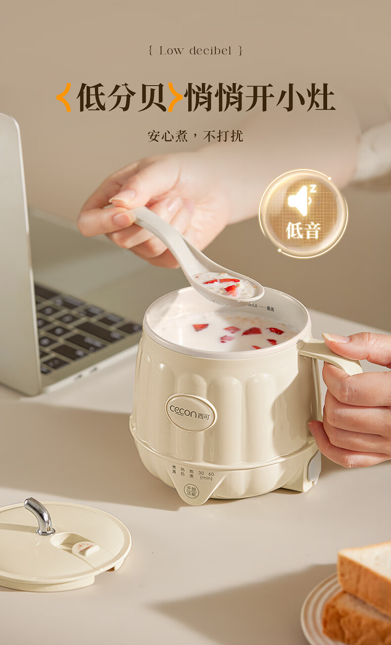 Japan's MUJU hot milk cup, home health cup, electric stew cup, multi-function boiling cup, office constant temperature milk cup, cream white upgraded digital display model, with tea leakage storage bag 0.9L