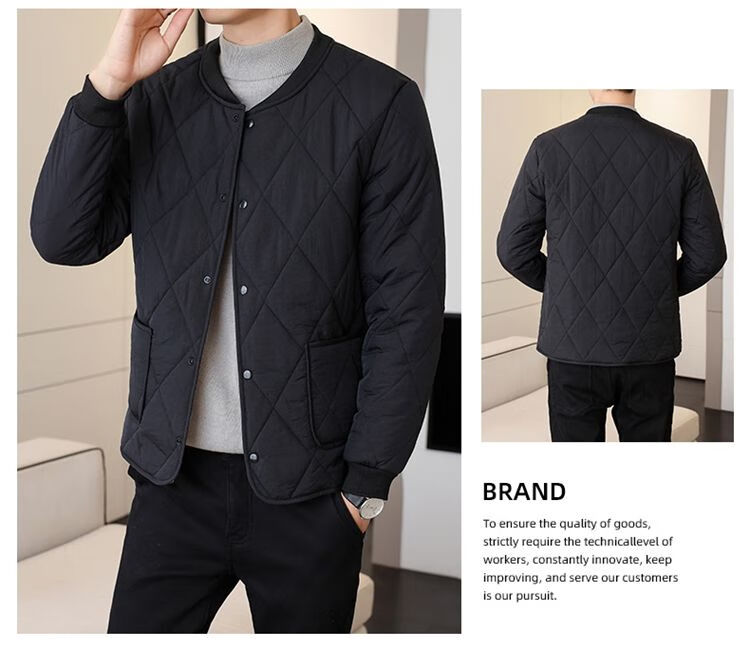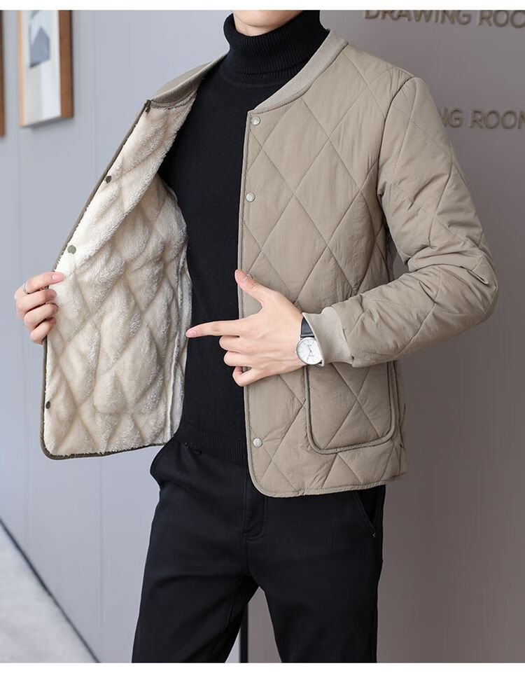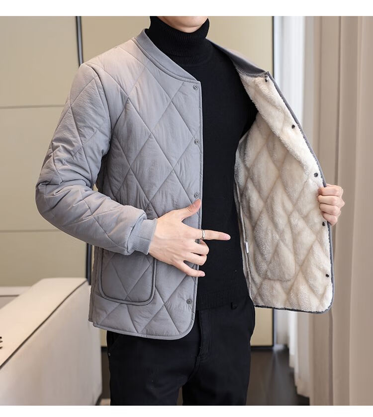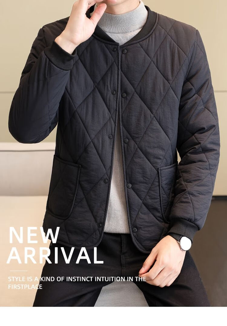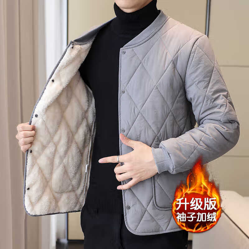 Playboy (PLAYBOY) men's velvet thickened lining cotton-padded jacket, down jacket, autumn and winter base layer, small cotton-padded jacket, warm short jacket, black XL