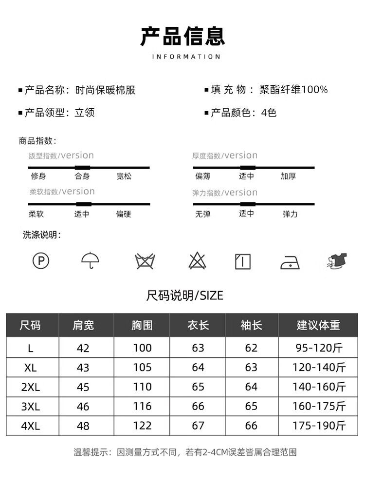 China (cm) 165 / 88-90 170 / 96-98 175 / 108-110 180 / 118-122 185 / 126-130