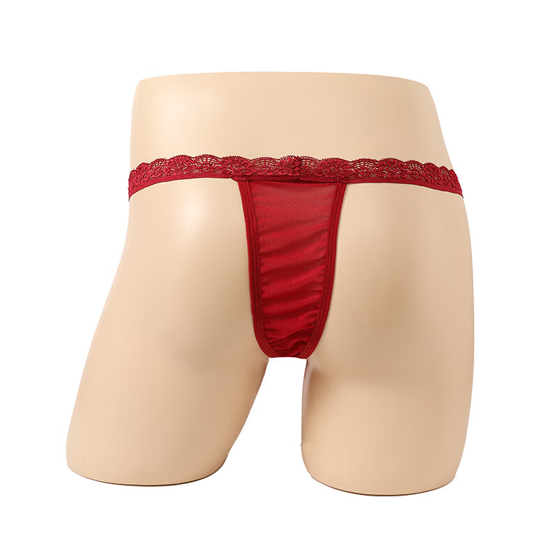 Men's sexy underwear, men's stretch underwear, lace safety buckle thong, European and American men, 2 pairs black L
