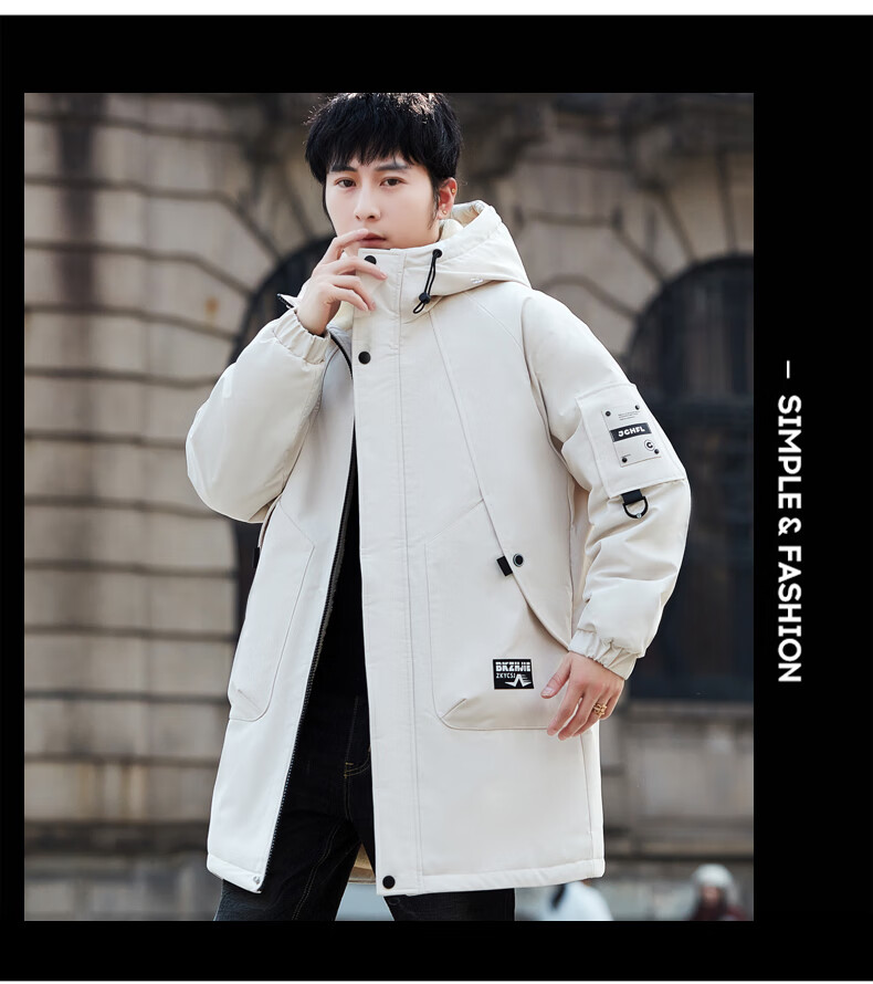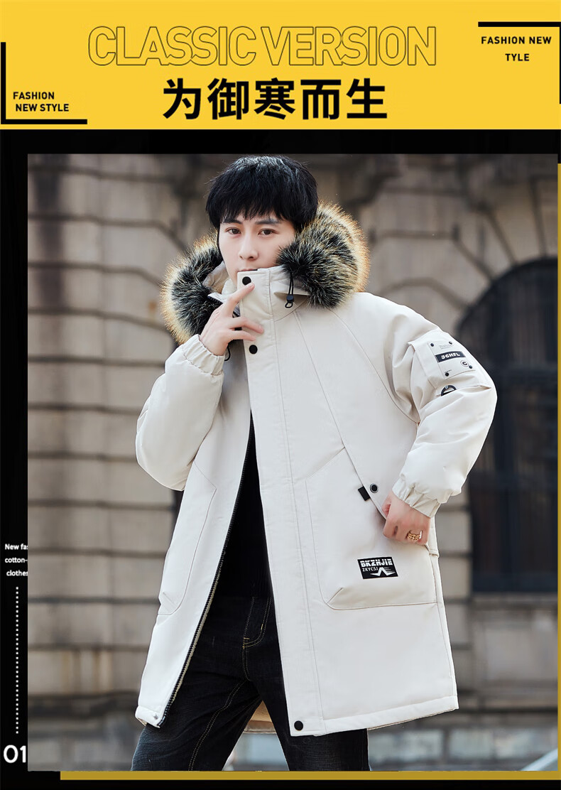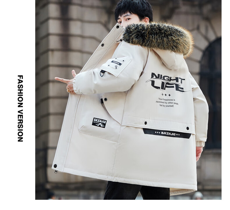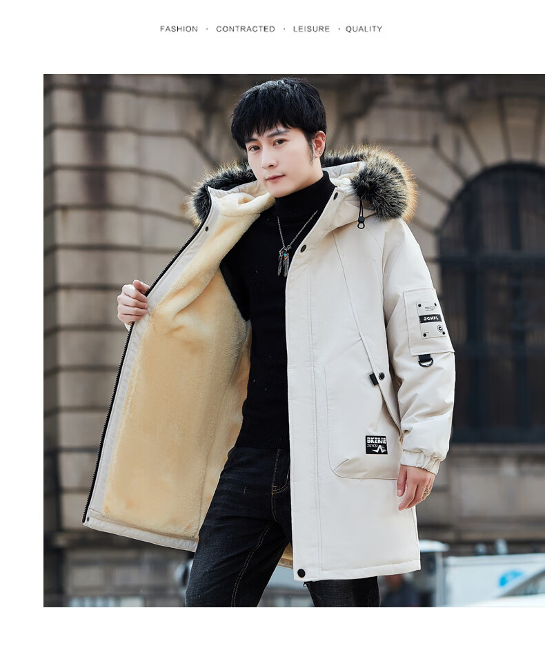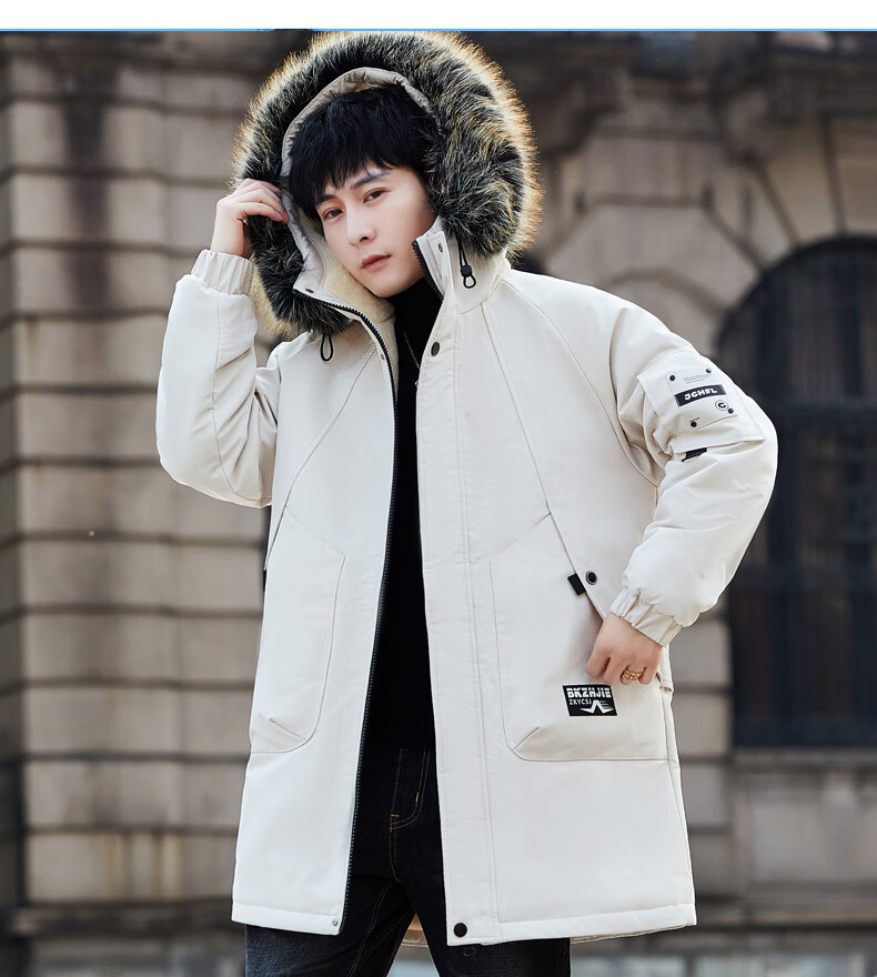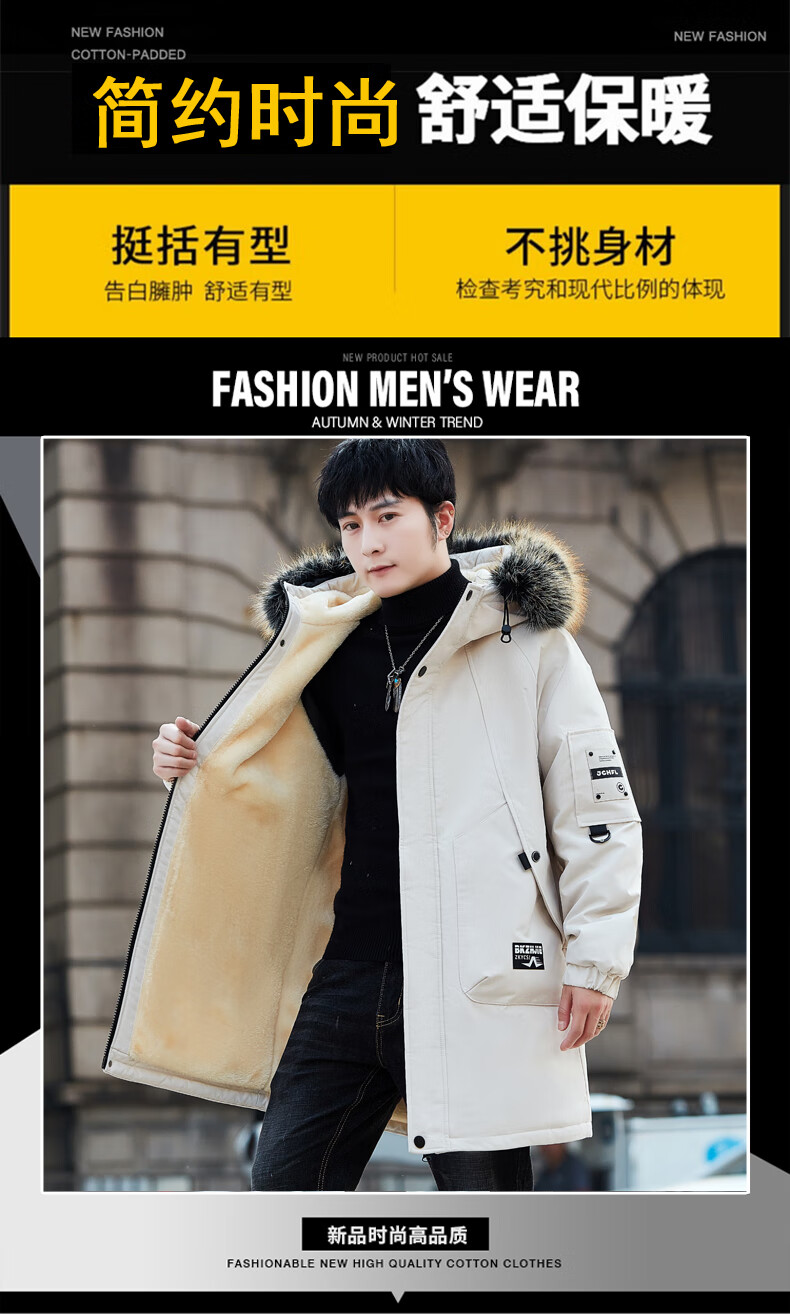 Luo Meng Cotton Clothes Men's Autumn and Winter Velvet Thickened Windbreaker Mid-Length Pagoda Casual Warm Jackets Winter Men's Clothes Off-White XL Recommended Weight (120-140Jin Jin is equal to 0.5 kg)