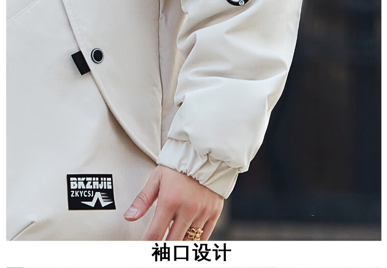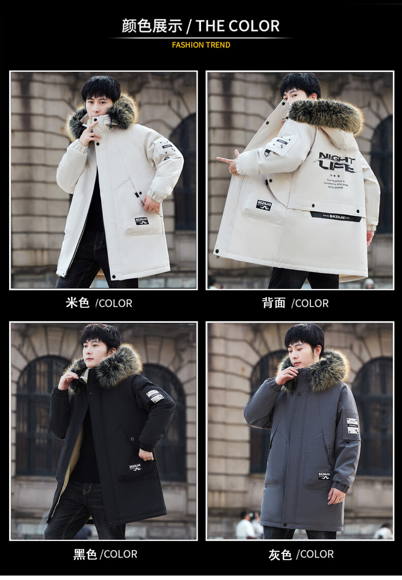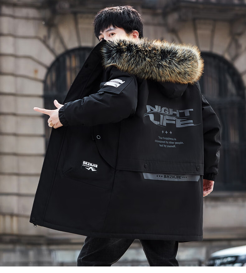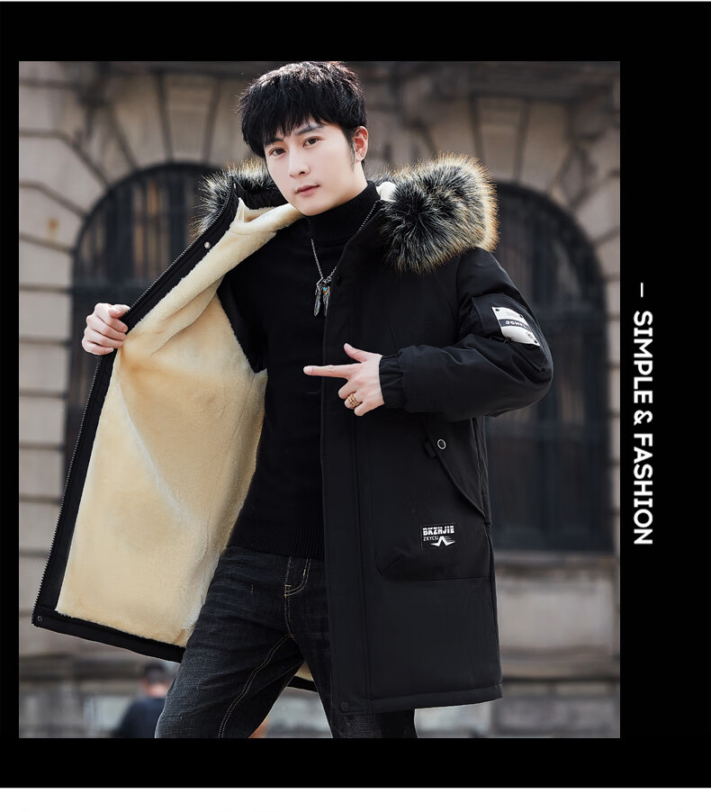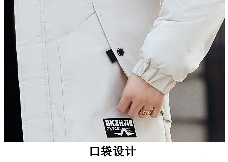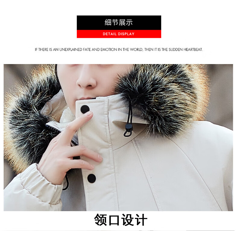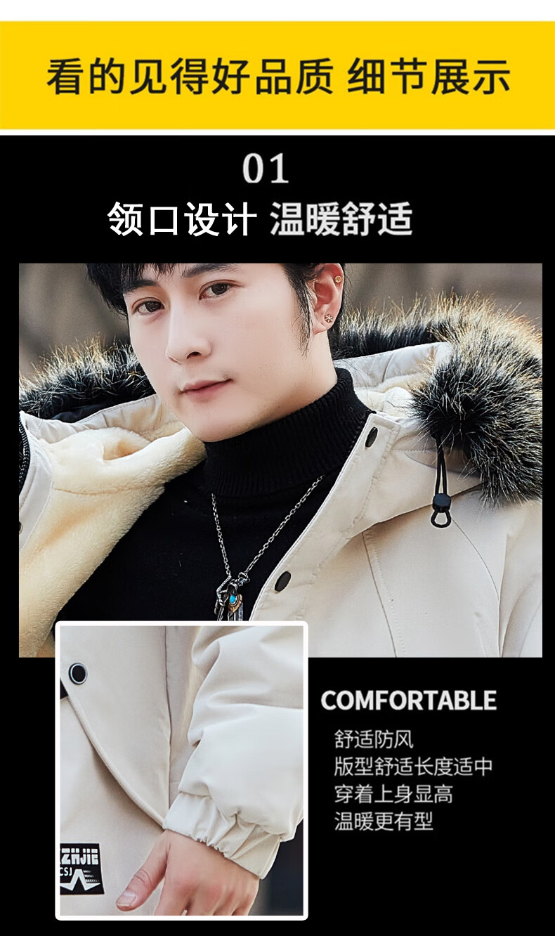 Luo Meng Cotton Clothes Men's Autumn and Winter Velvet Thickened Windbreaker Mid-Length Pagoda Casual Warm Jackets Winter Men's Clothes Off-White XL Recommended Weight (120-140Jin Jin is equal to 0.5 kg)