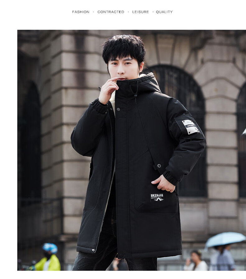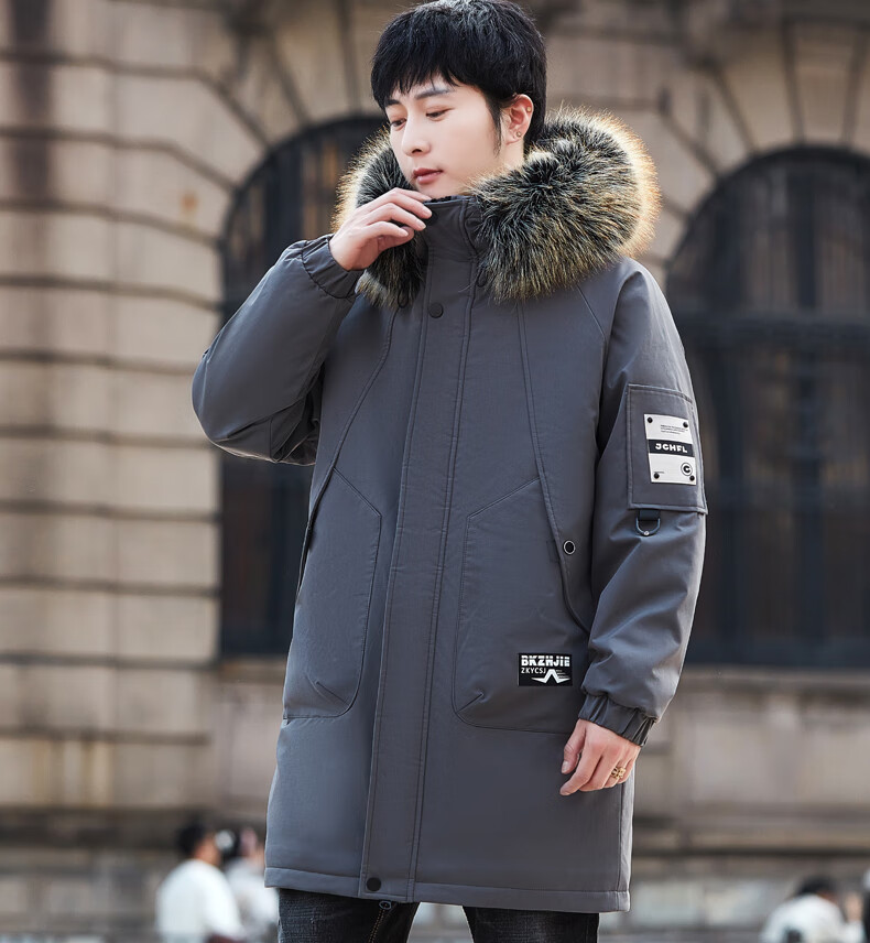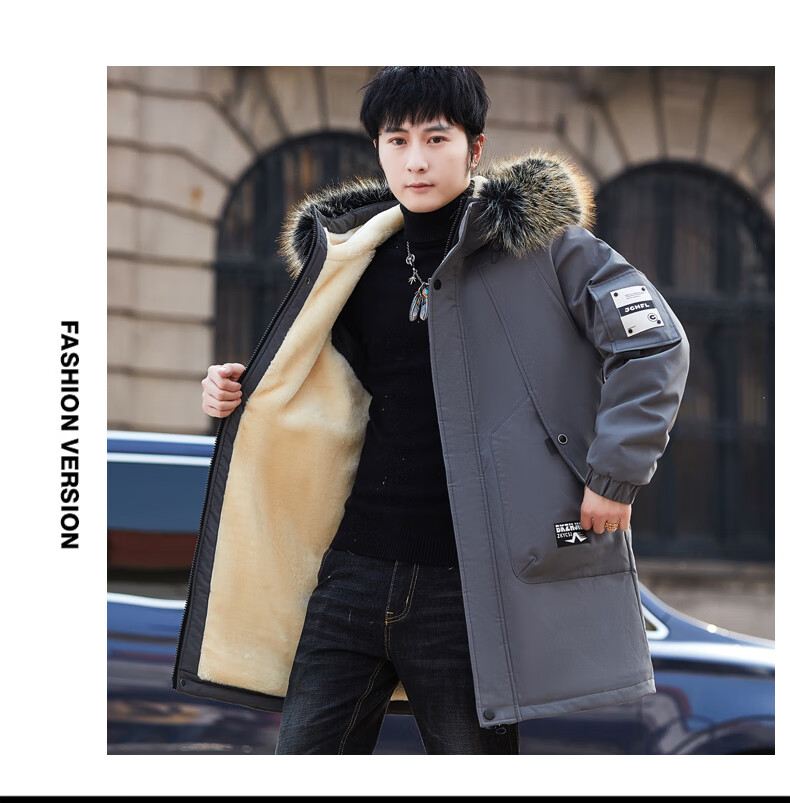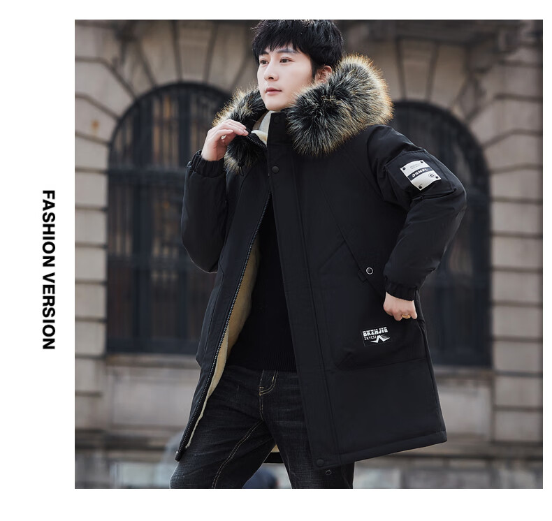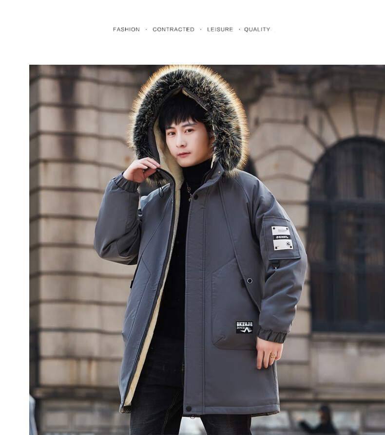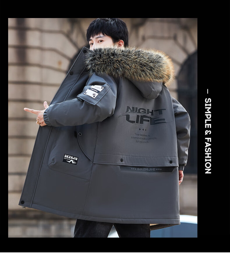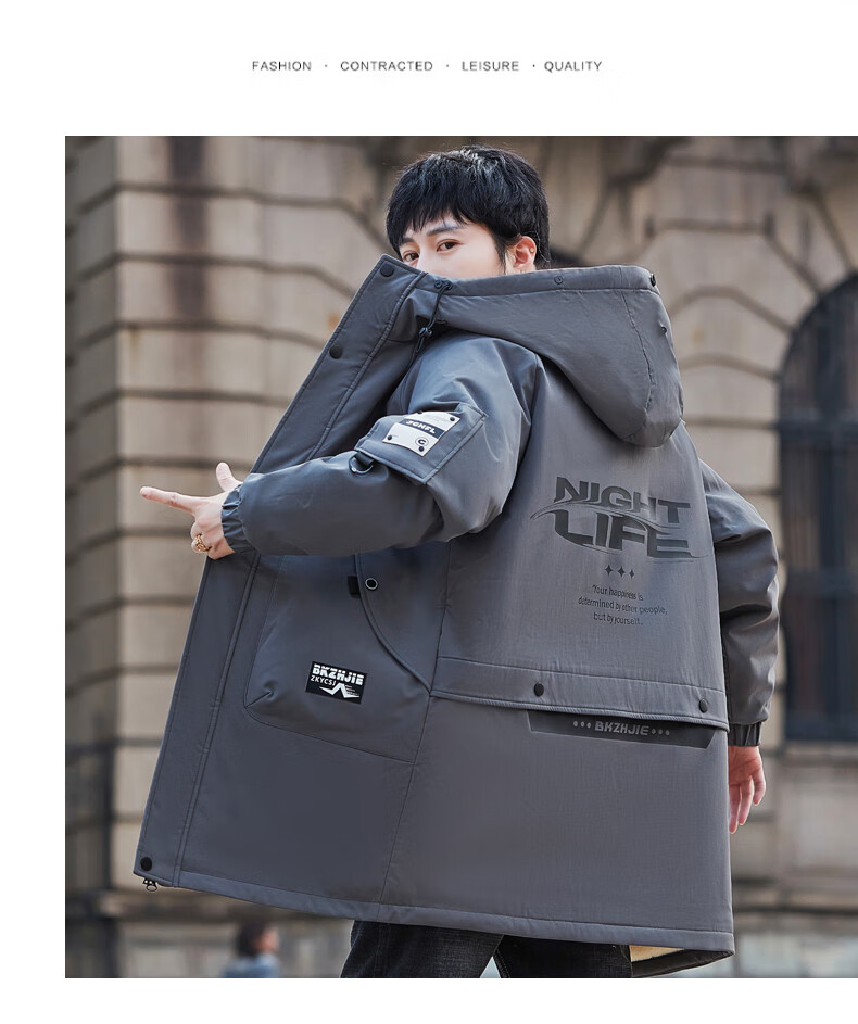 Luo Meng Cotton Clothes Men's Autumn and Winter Velvet Thickened Windbreaker Mid-Length Pagoda Casual Warm Jackets Winter Men's Clothes Off-White XL Recommended Weight (120-140Jin Jin is equal to 0.5 kg)