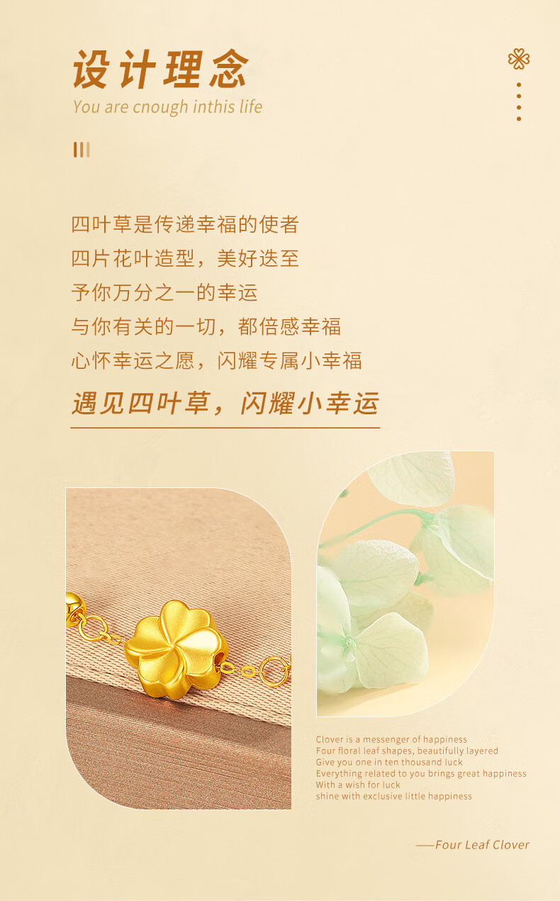 CHOW TAI SENG Gold Bracelet Lucky Four-leaf Clover Pure Gold Bracelet Women's Valentine's Day Gift for Girlfriend Wife Mom Birthday Gift Pure Gold Four-Leaf Clover Bracelet + Classic Gift Box