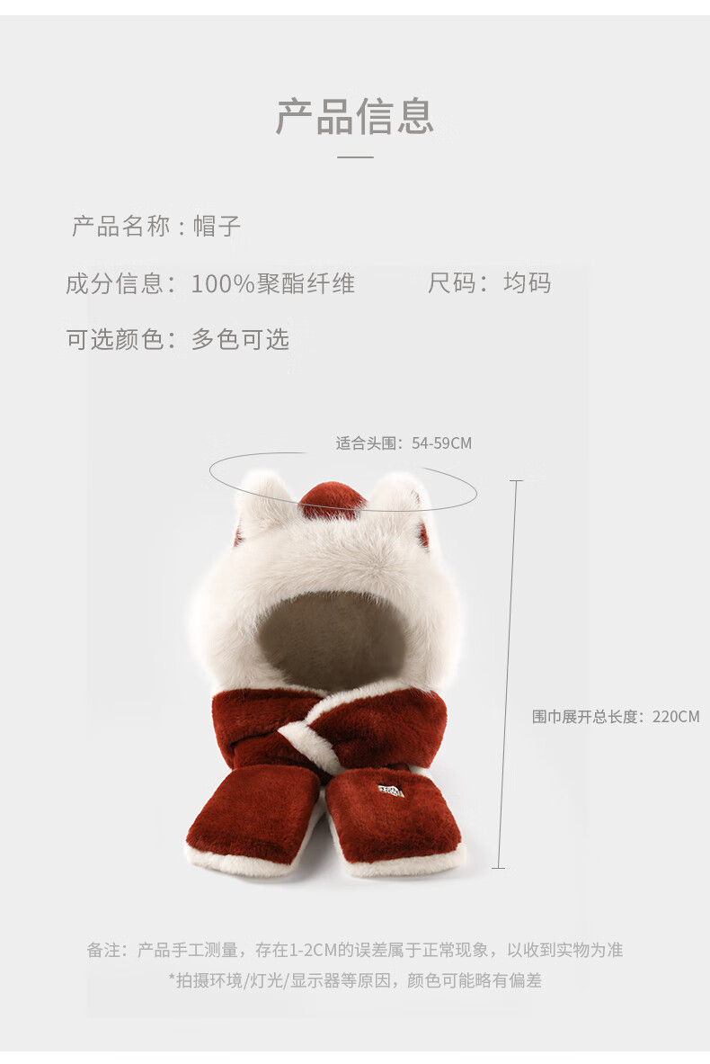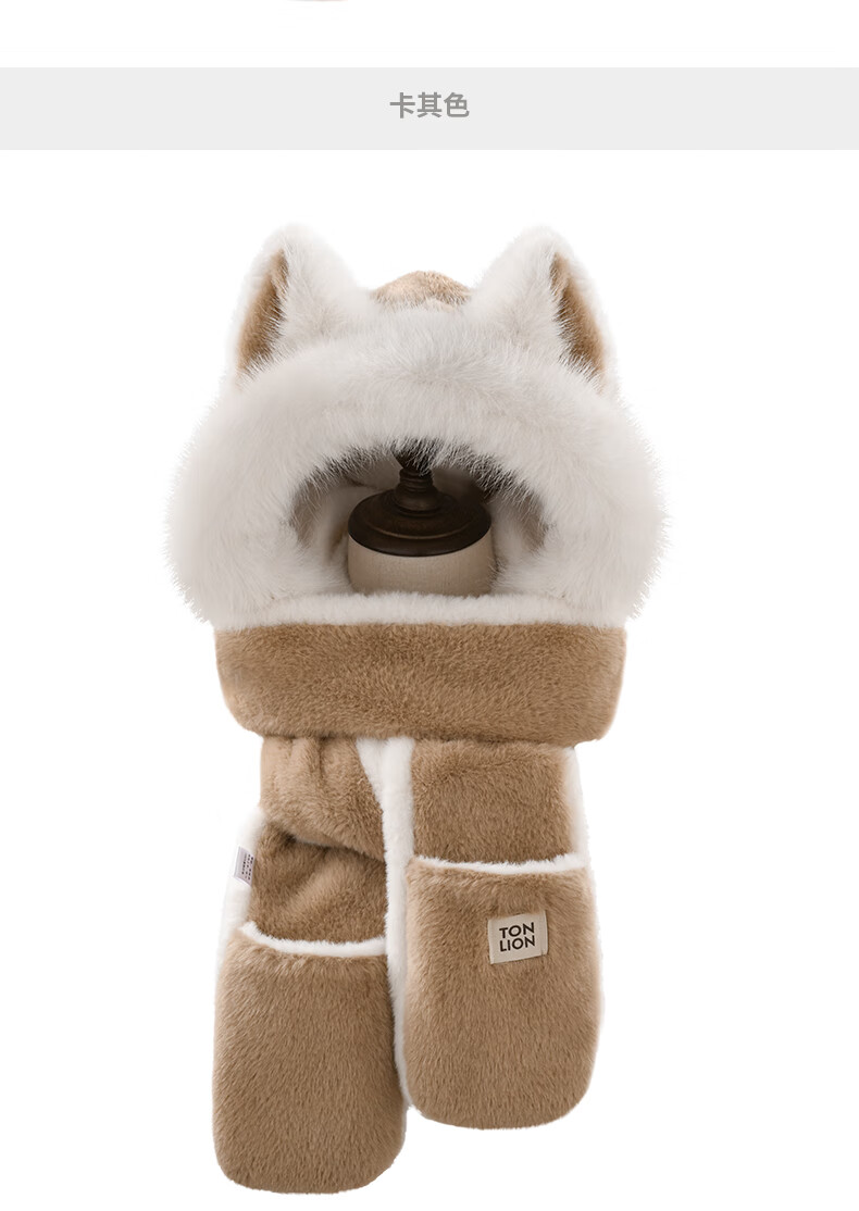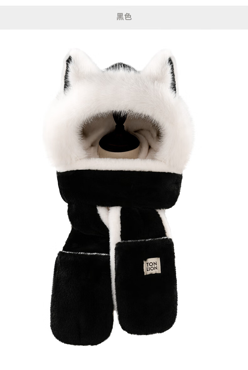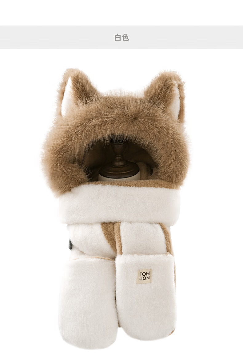 TonLion 2025 New Cute Fox New Year Red Plush Hat Scarf Gloves One-piece Women's Winter Lei Feng Hat Burgundy