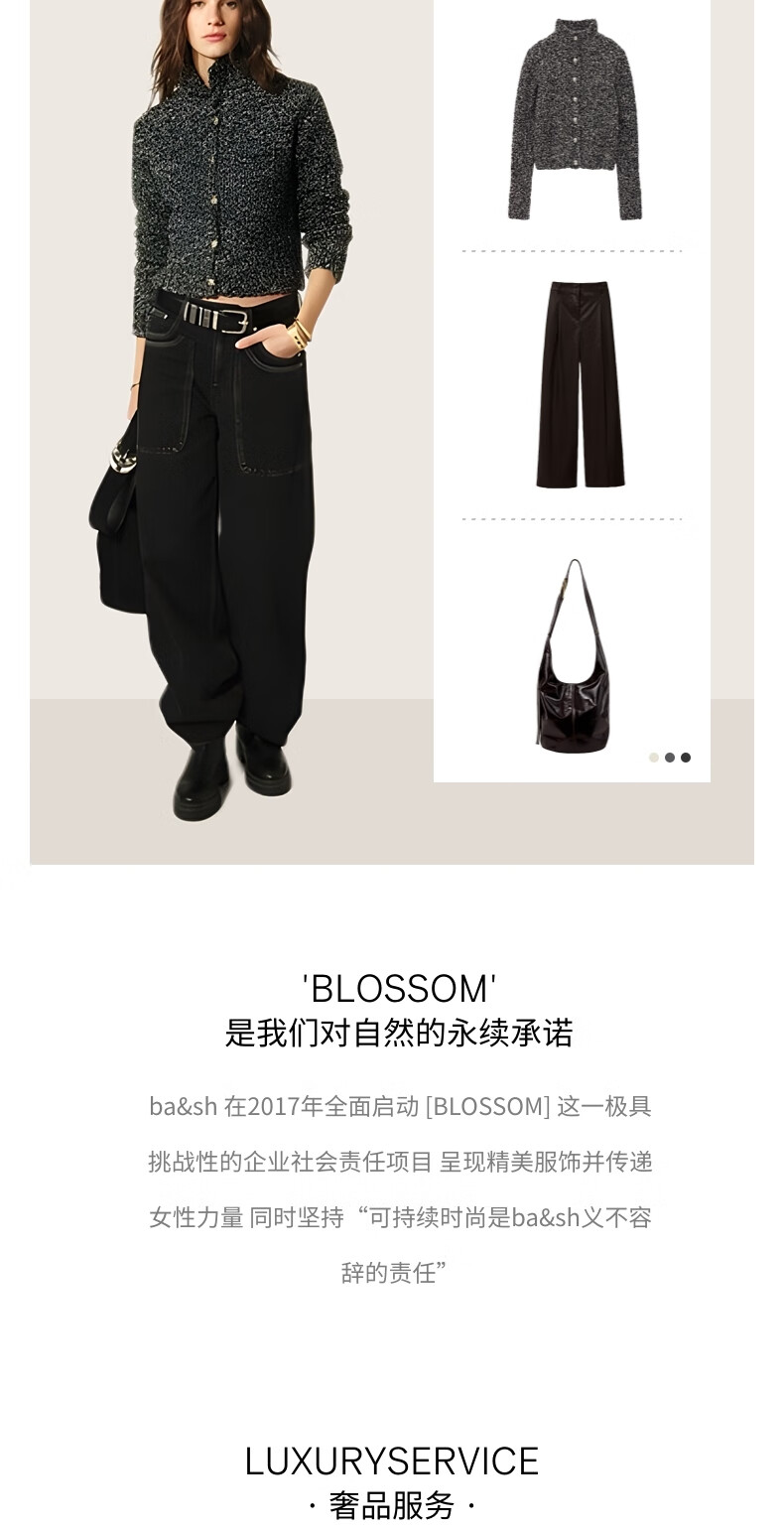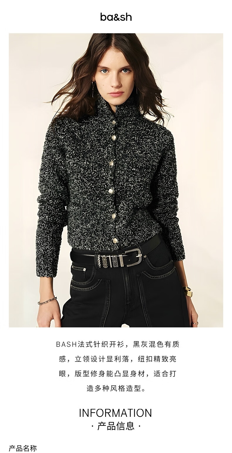 Ba&shbash2025 new autumn Xiaoxiang Qianjin old money wool blended sweater women's sweater 1H25CARL ANTHRACITE regular M 1