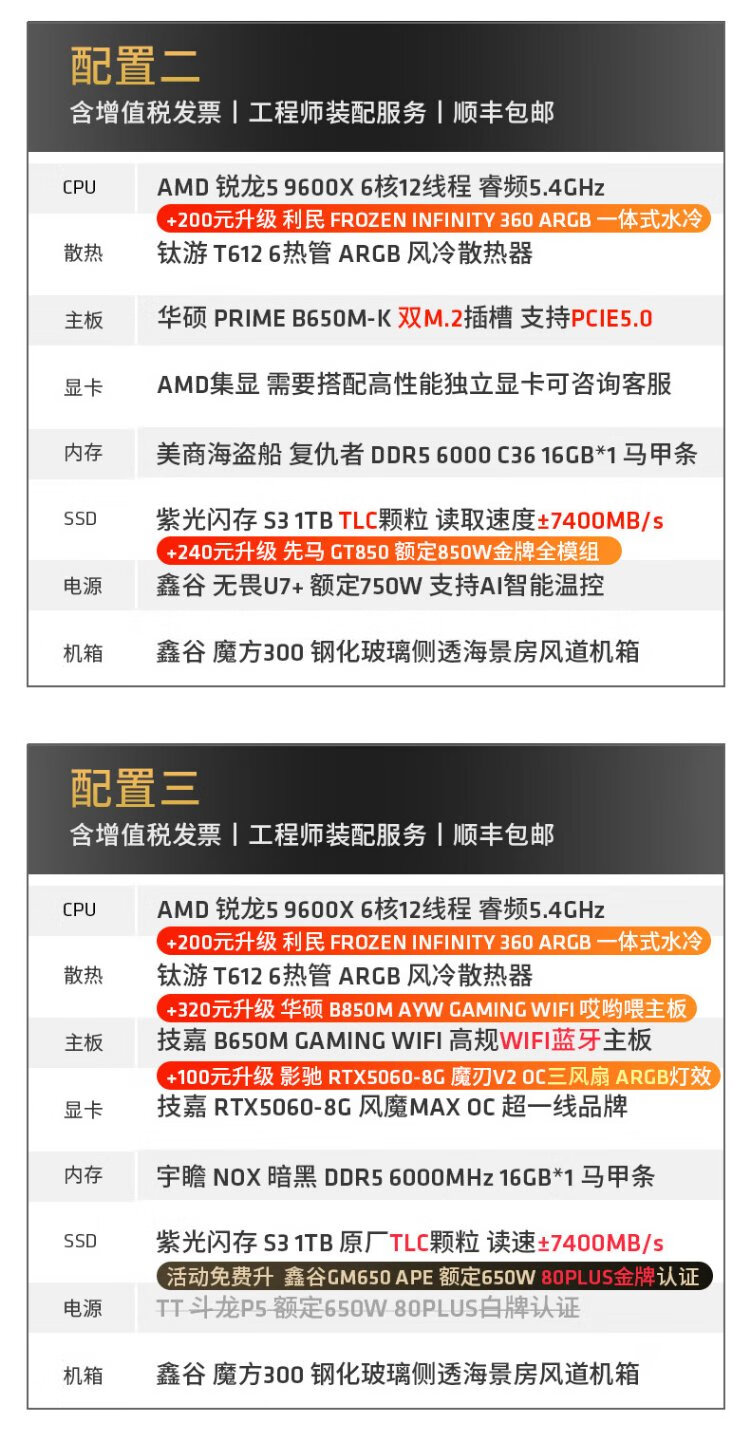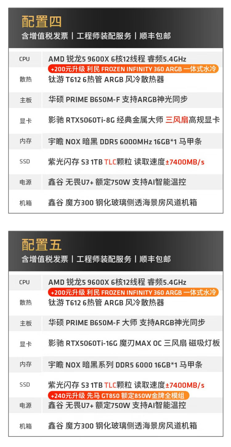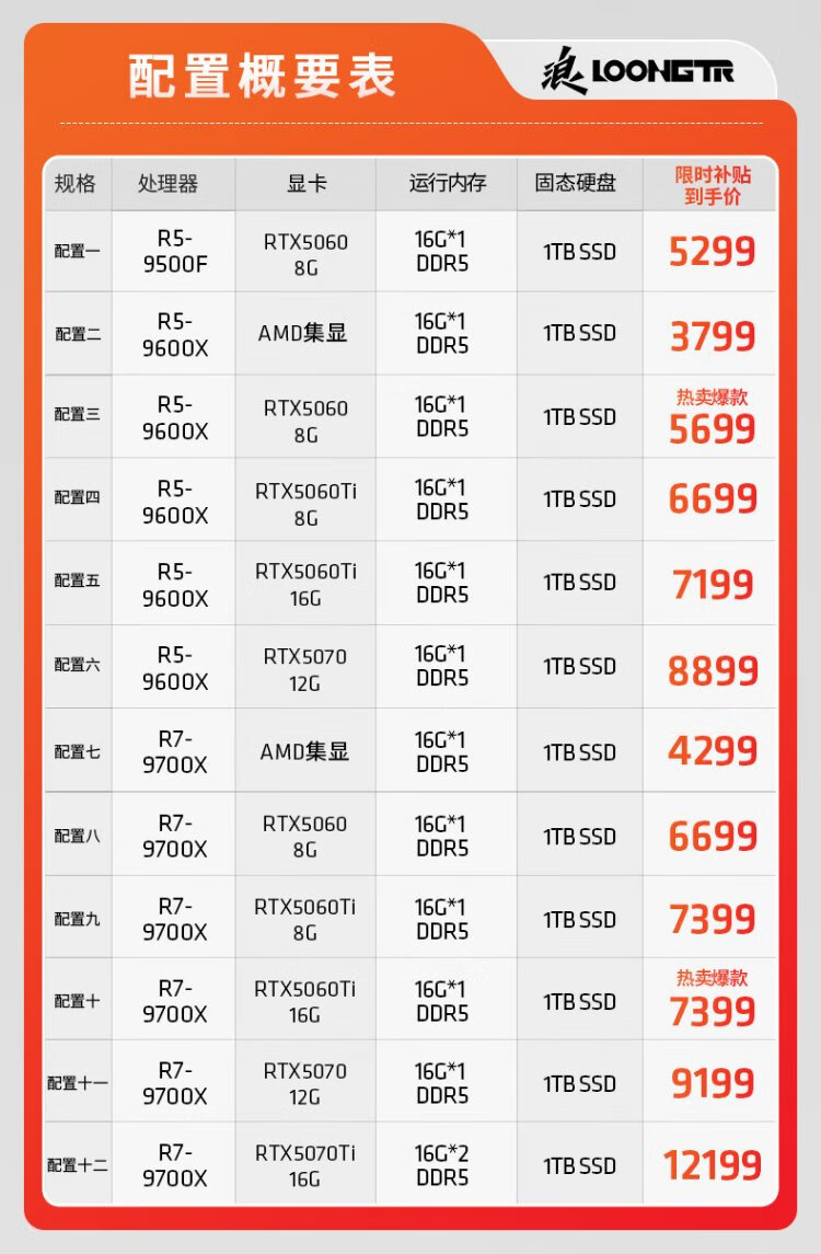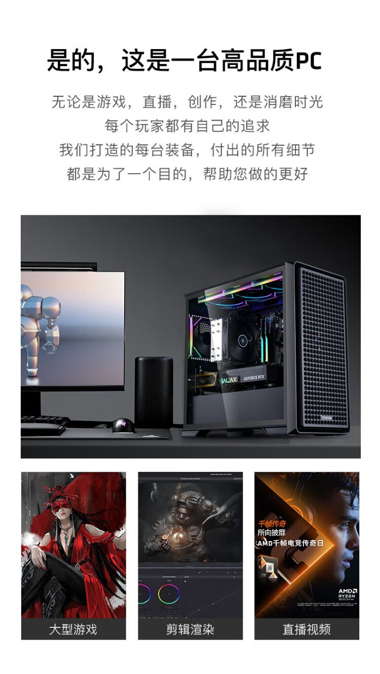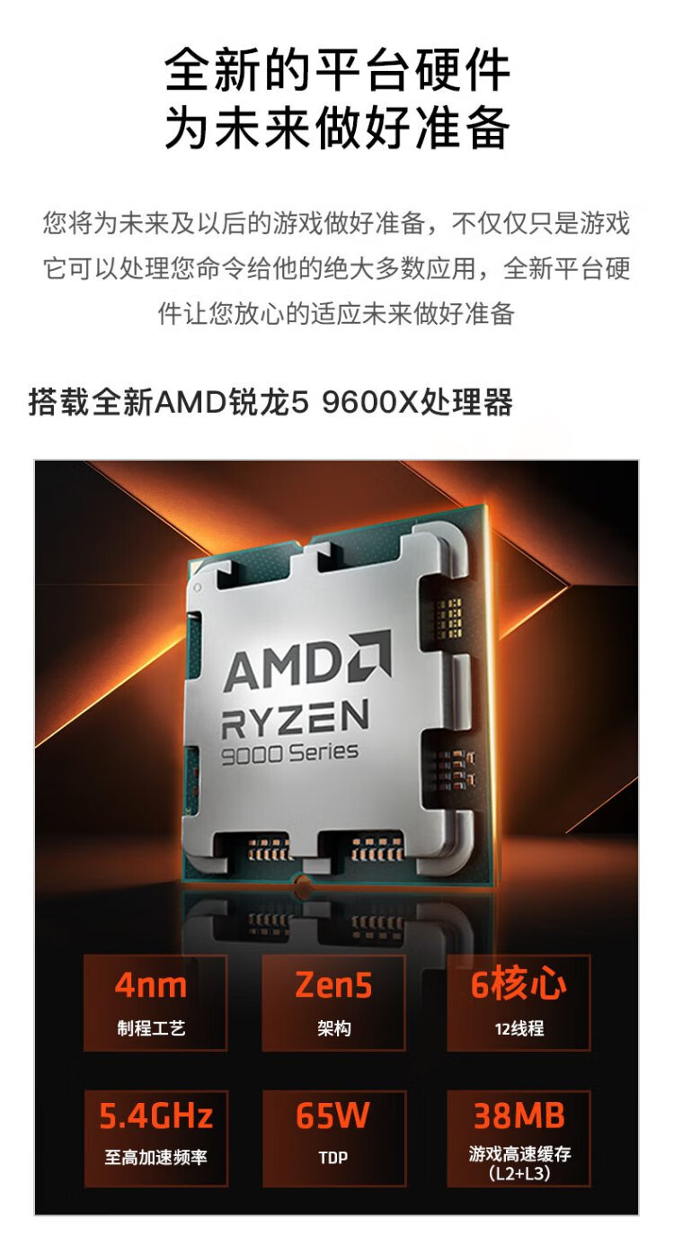 AMD/Lang 9600X/9700X assembled computer 5060/5070 graphics card DIY sea view room game console entertainment live broadcast desktop computer to play the Delta machine configuration ten R7-9700X+RTX5060Ti16G host kit