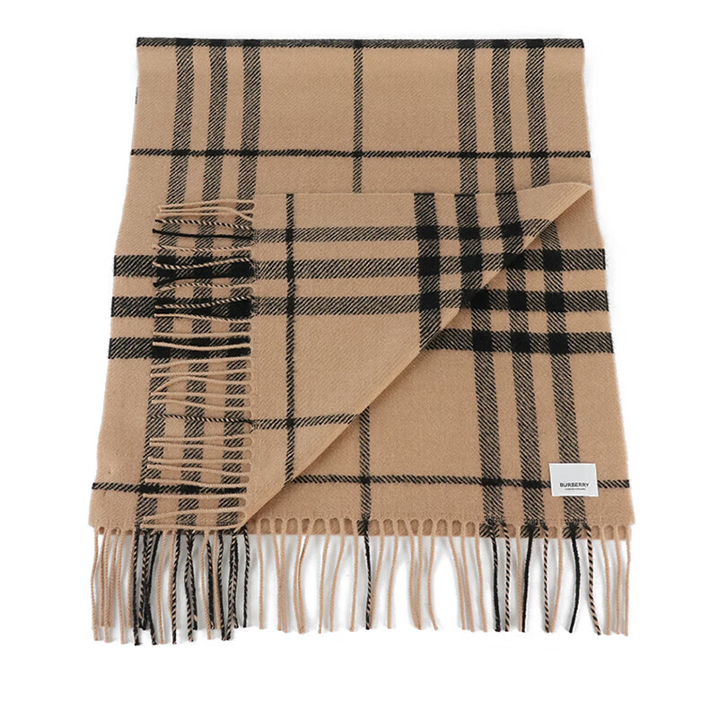 Burberry (BURBERRY) scarf Burberry scarf plaid printed tassels wool velvet scarf same style for men and women couple model camel 80942811 210*45CM