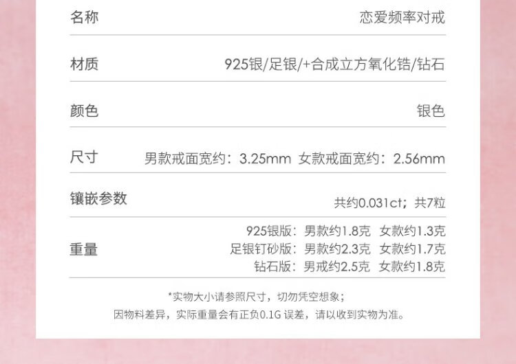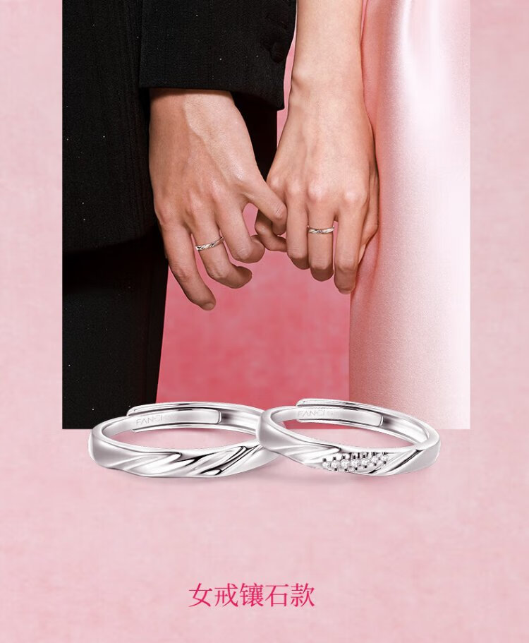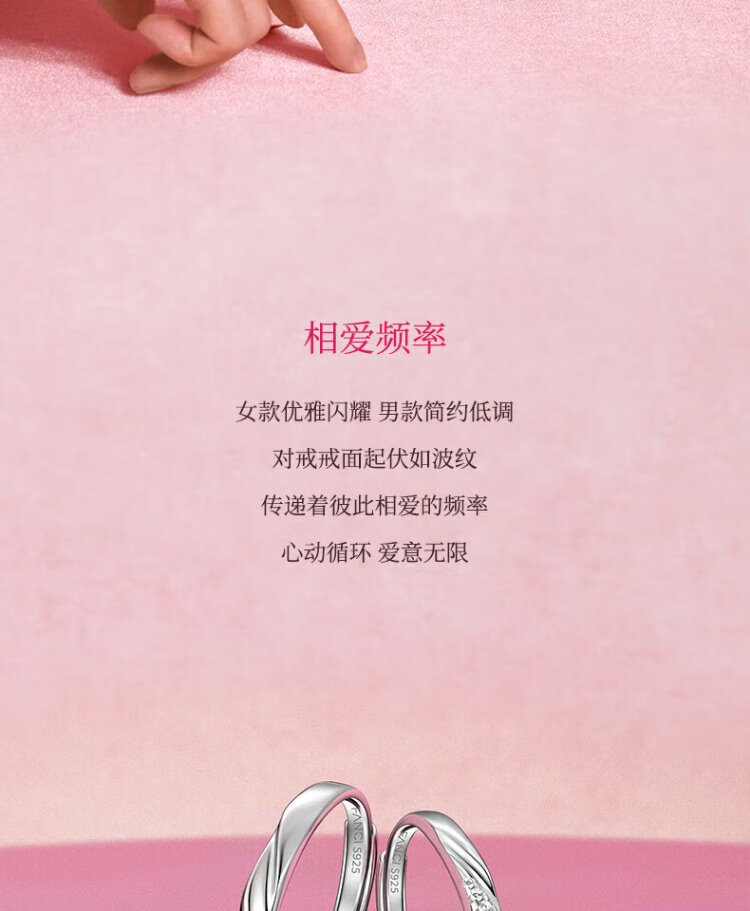 Fanci Fan Qi Love Frequency Series Couple Rings A Pair of Birthday Confession Gifts for Boyfriend and Girlfriend Pure Silver Love Frequency Rings