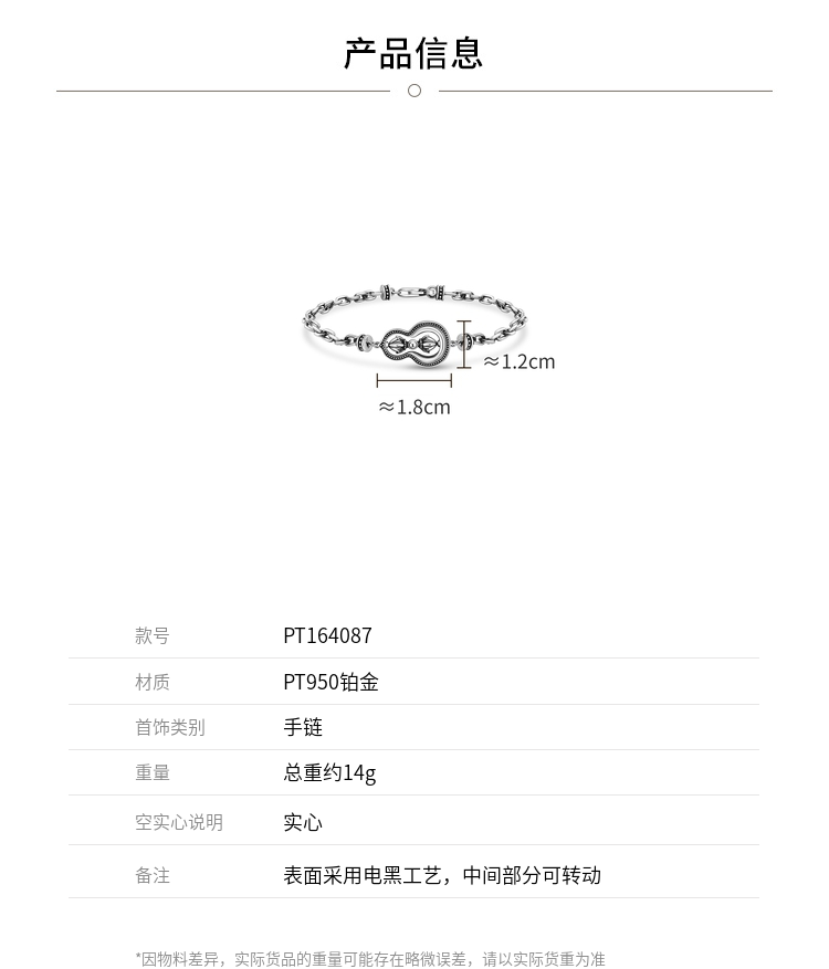 Chow Tai Fook G&W Series Gourd PT950 Platinum Bracelet for Gift PT164087 18.75cm