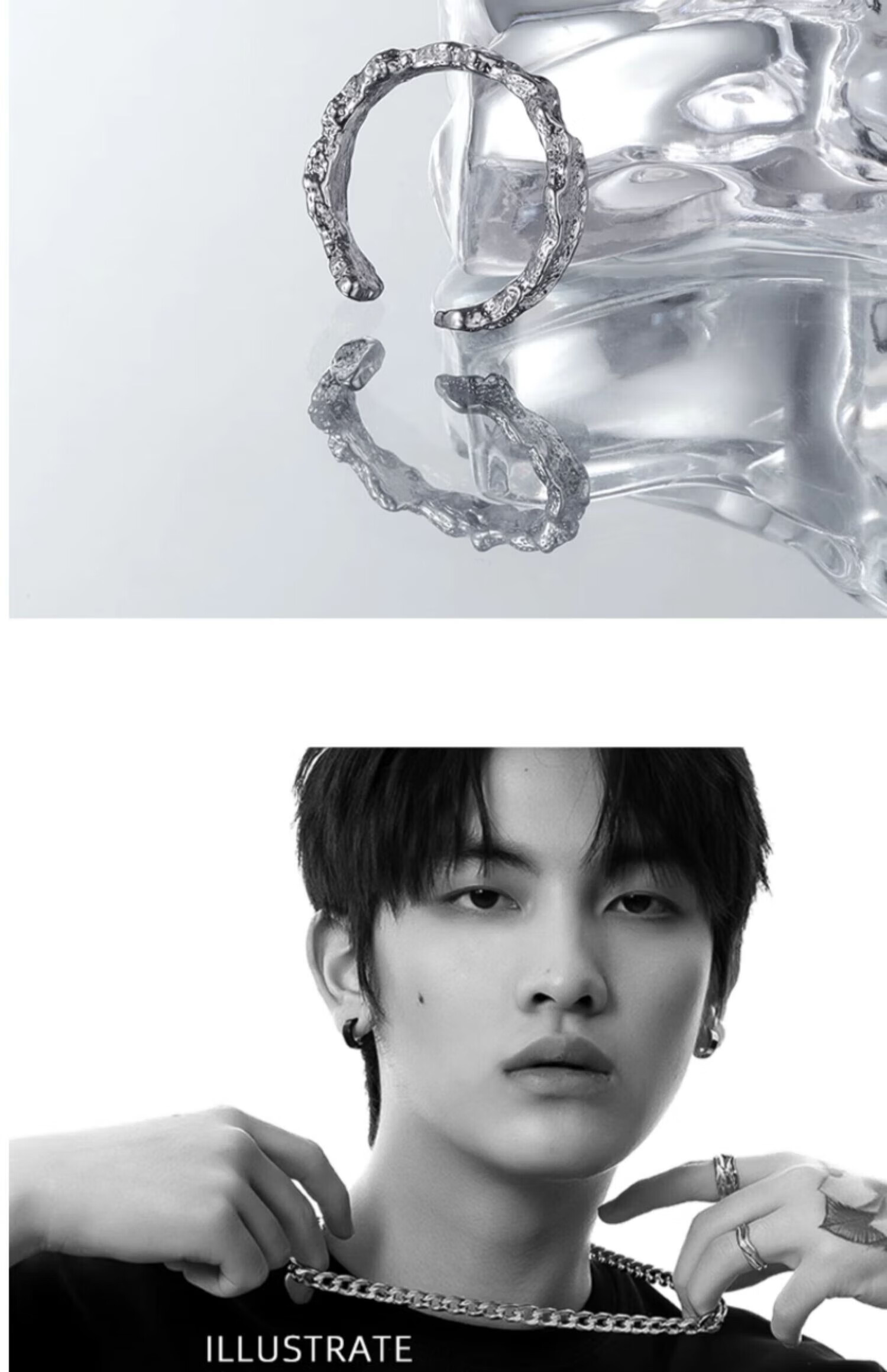 Core luxury meteorite texture open ring men's new index finger ring niche design trendy brand single ring trendy brand birthday gift for boyfriend meteorite open ring