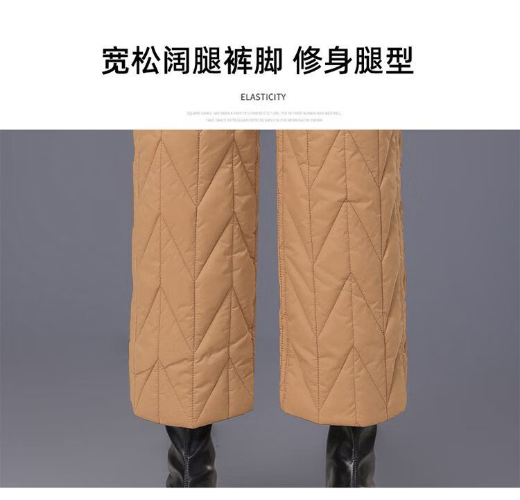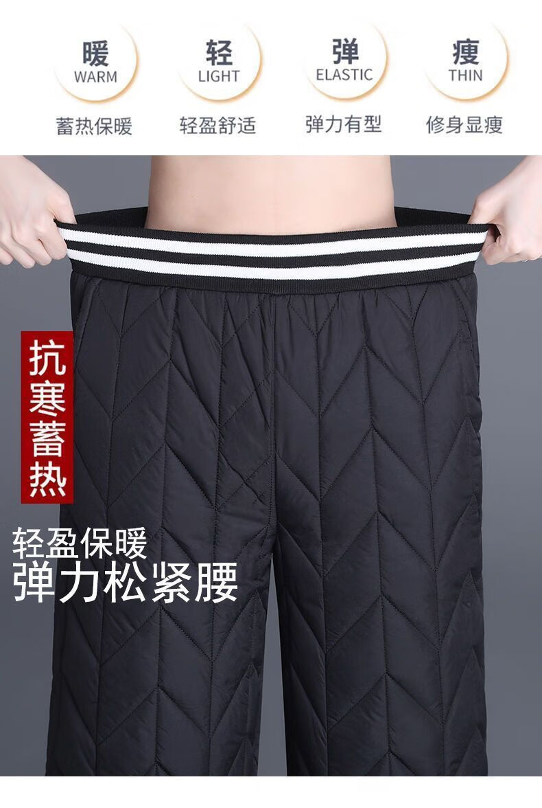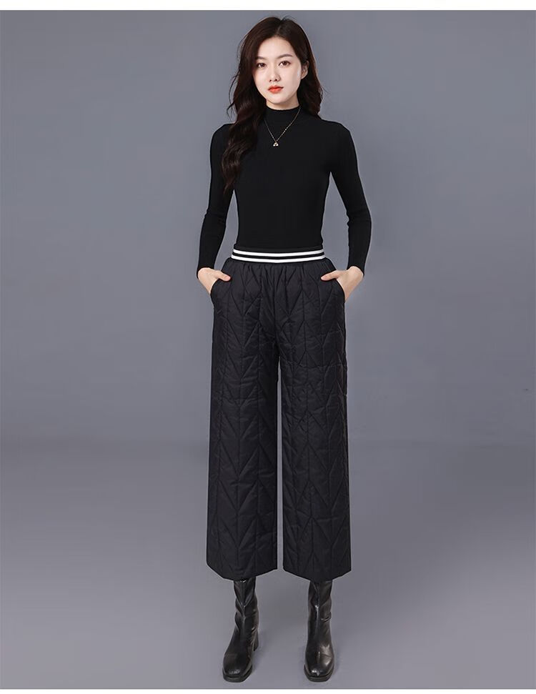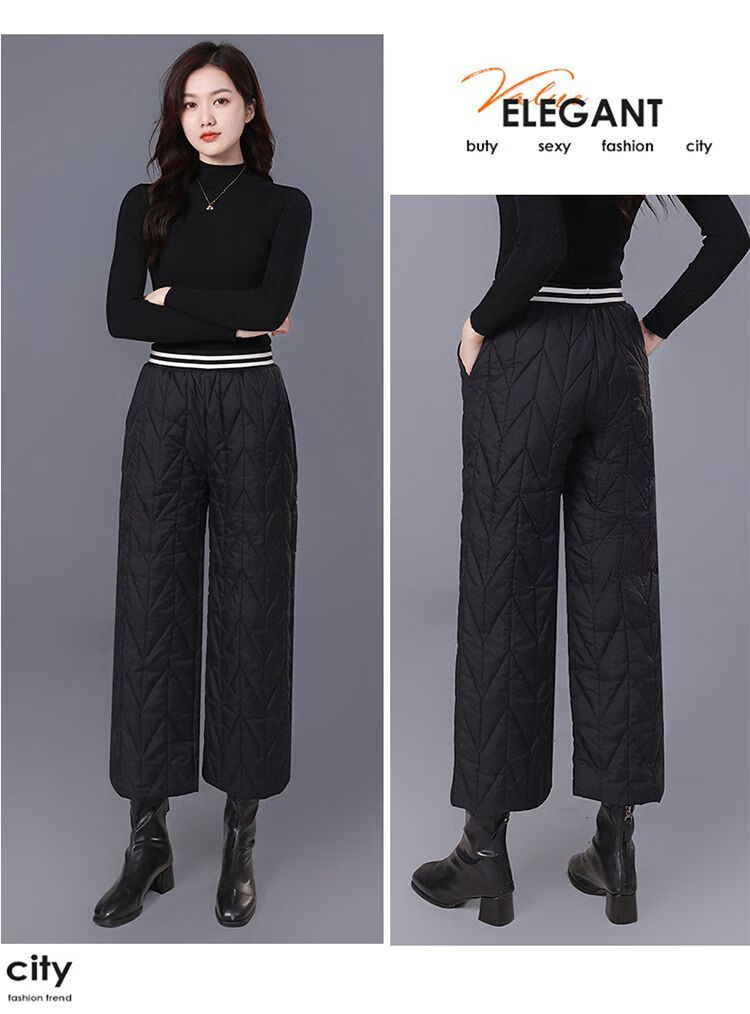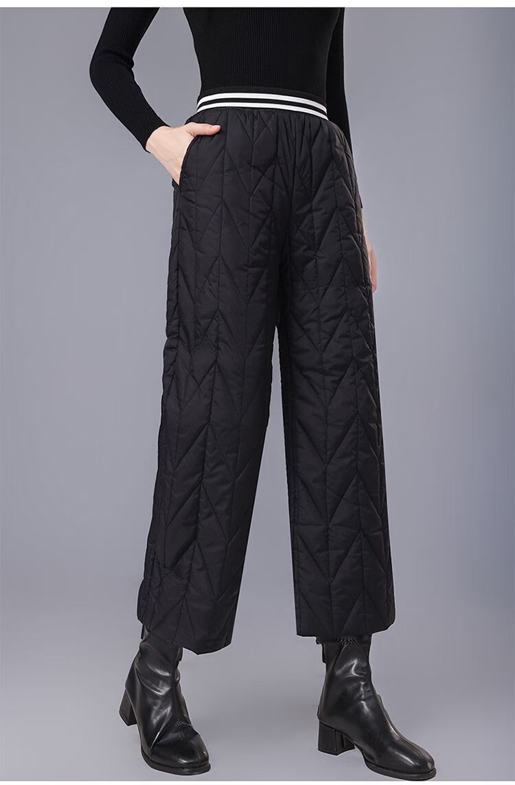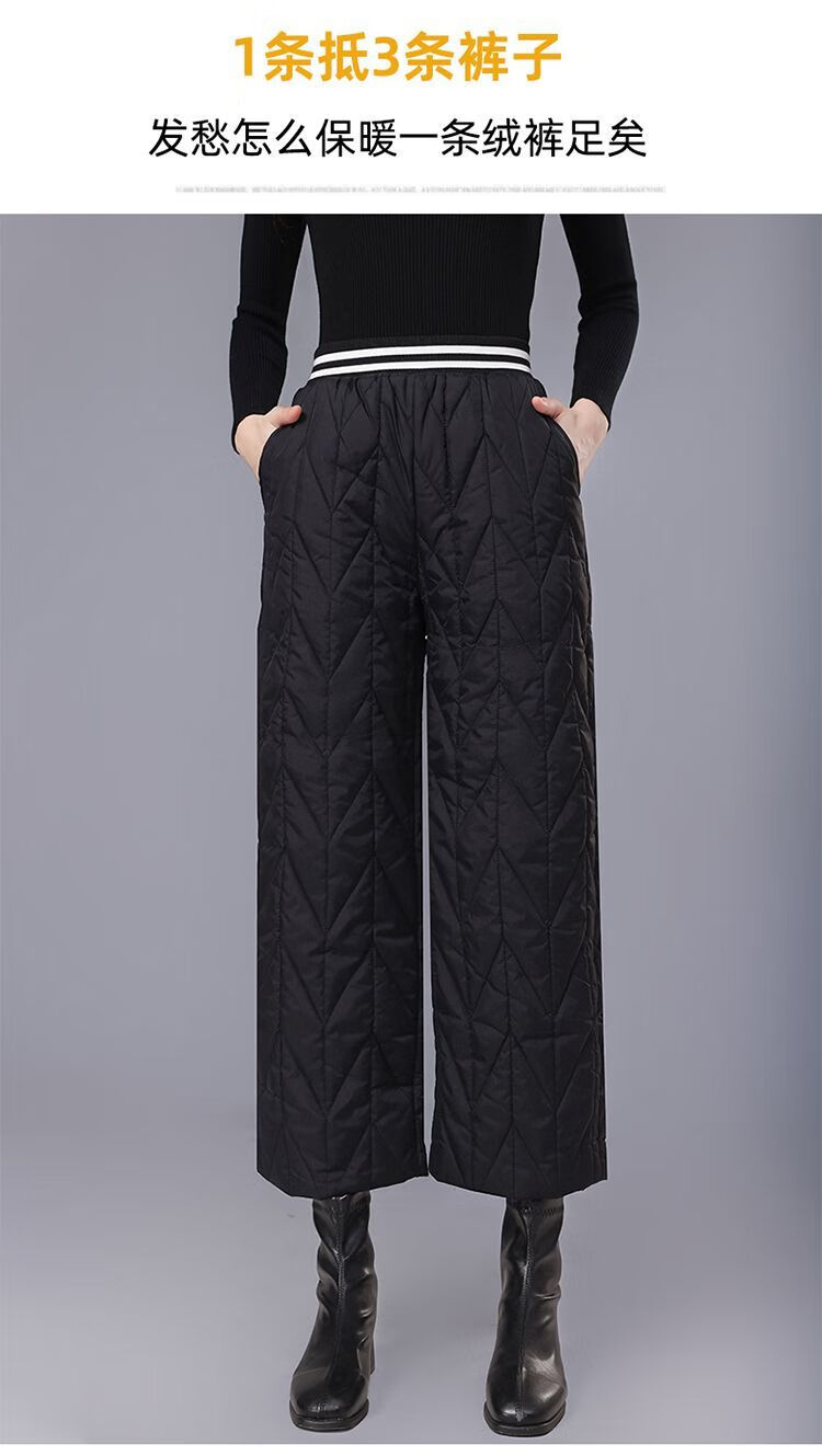 Down pants women's winter fashion wide leg pants large size thickened high waist loose warm slim outer wear nine-point pants ZHFS black XL ((recommended 110-120Jin Jin equals 0.5 kg)
