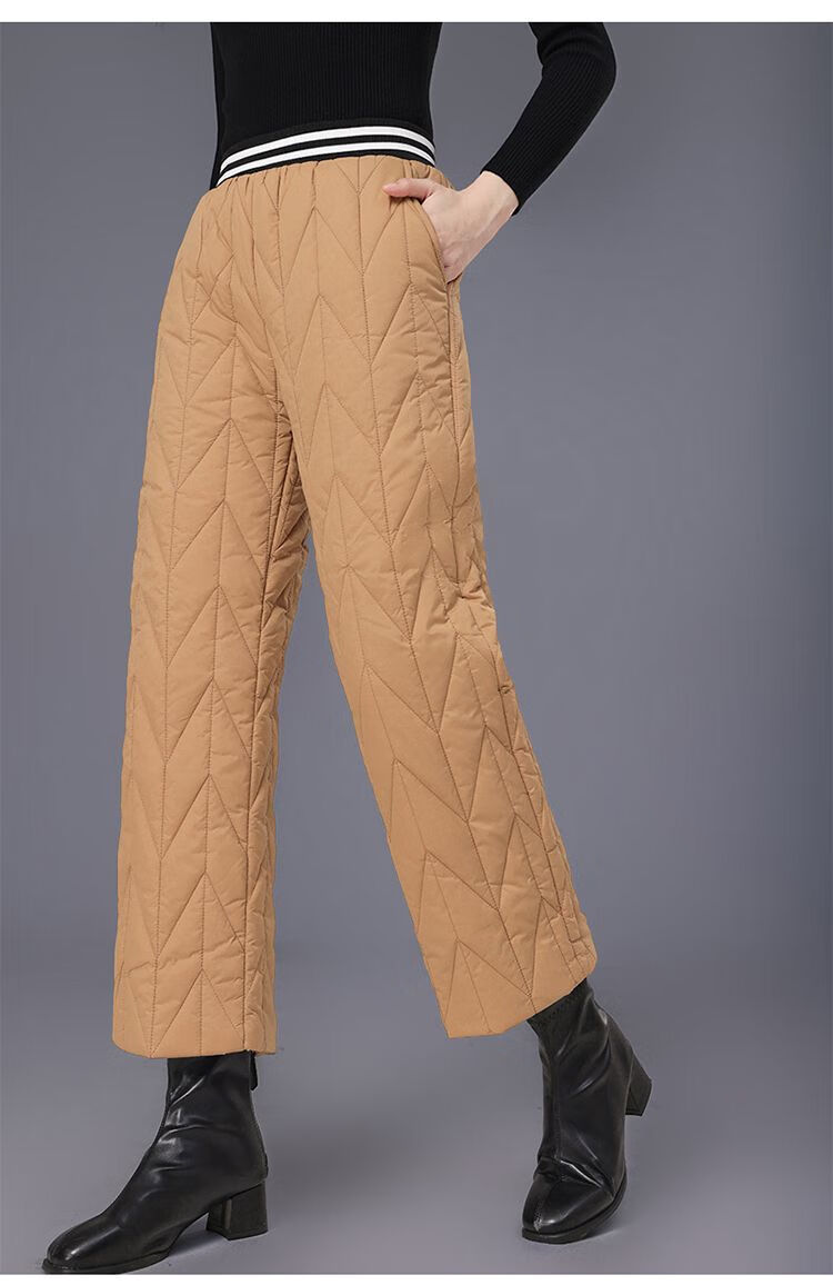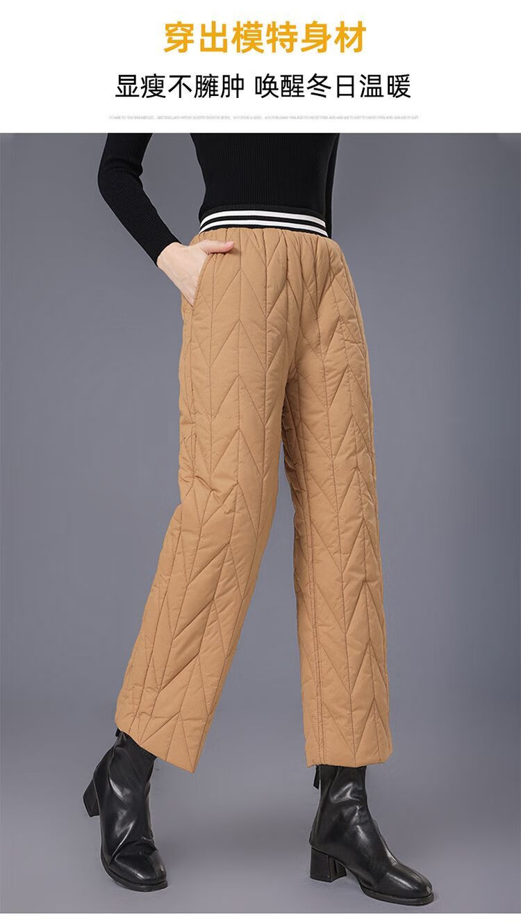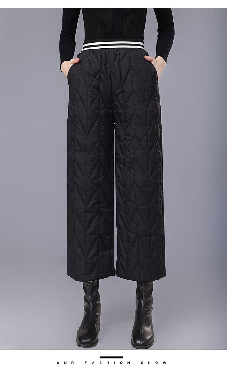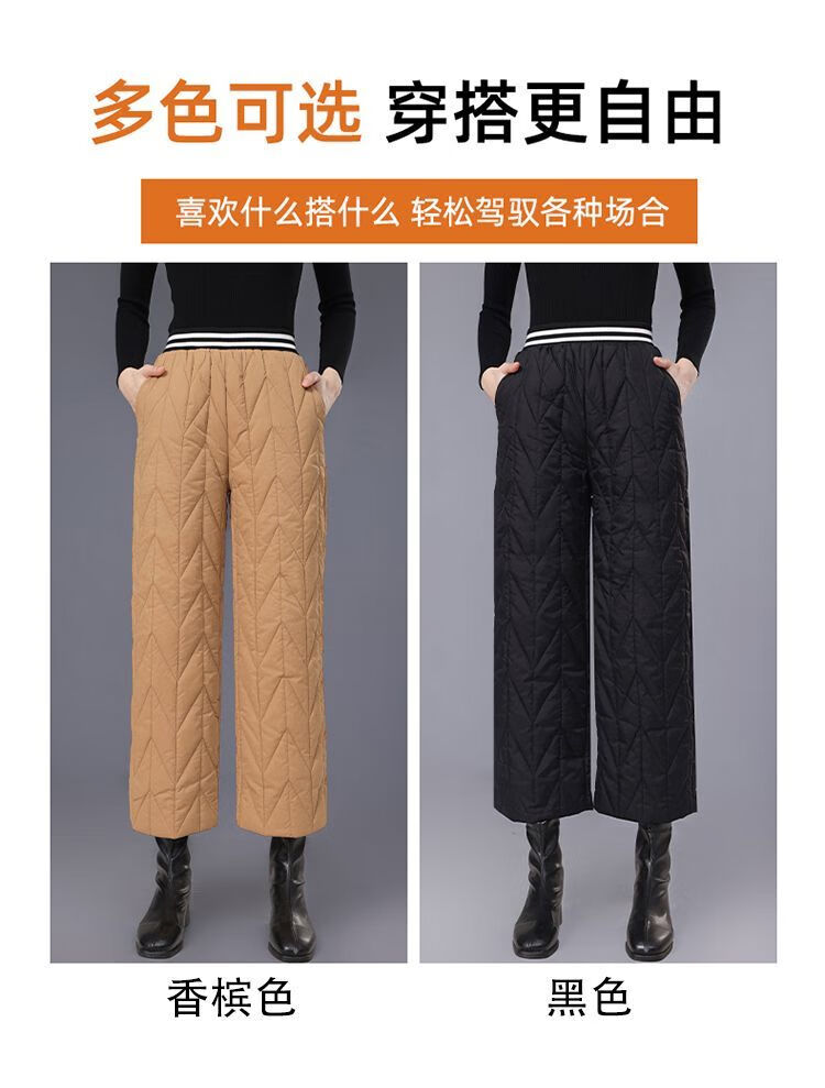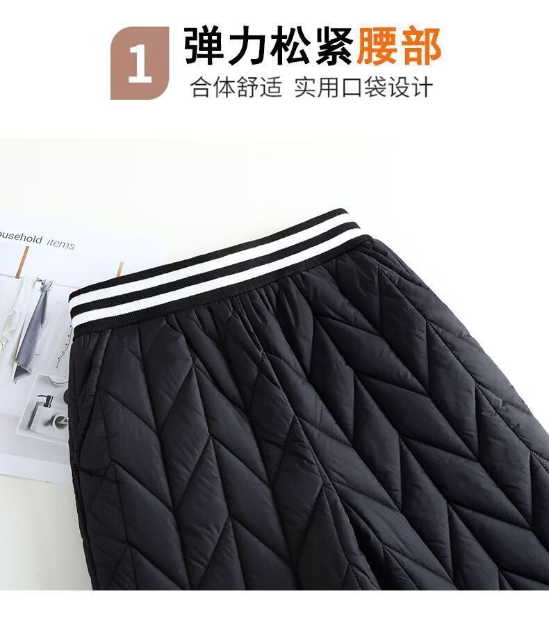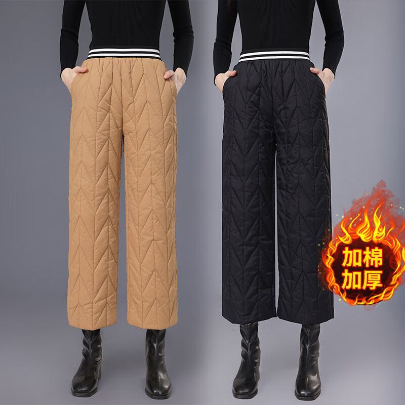 Down pants women's winter fashion wide leg pants large size thickened high waist loose warm slim outer wear nine-point pants ZHFS black XL ((recommended 110-120Jin Jin equals 0.5 kg)