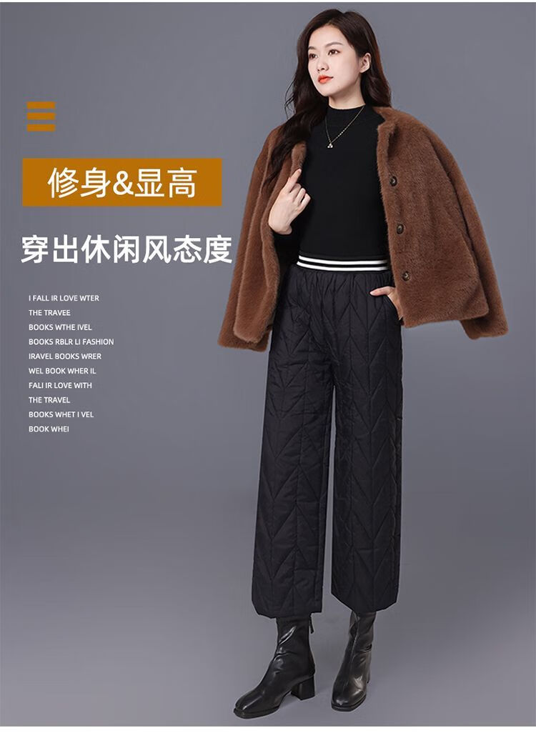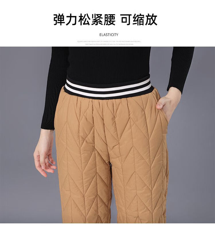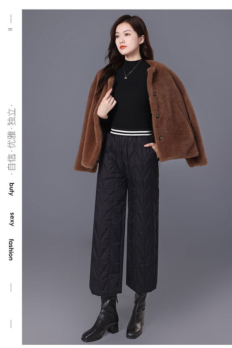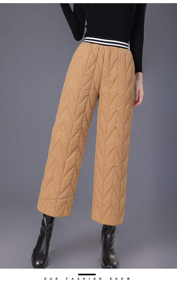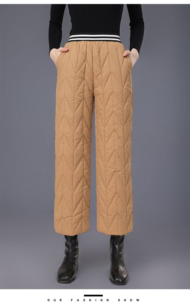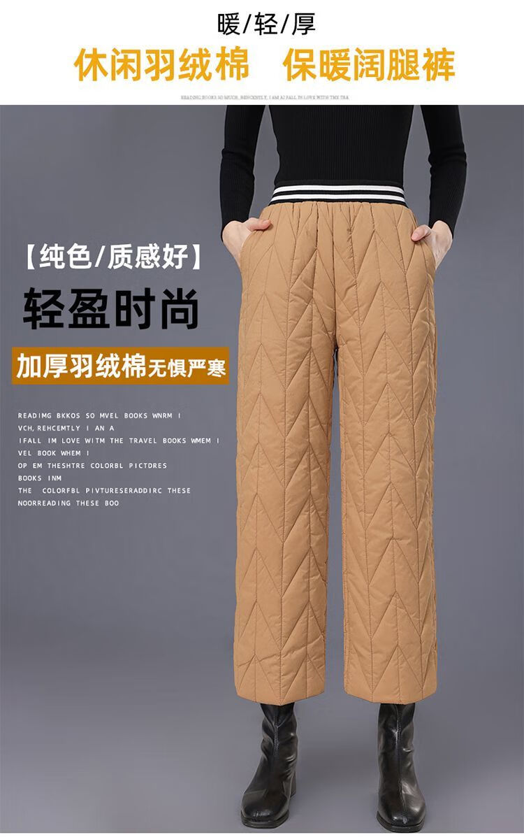 Down pants women's winter fashion wide leg pants large size thickened high waist loose warm slim outer wear nine-point pants ZHFS black XL ((recommended 110-120Jin Jin equals 0.5 kg)