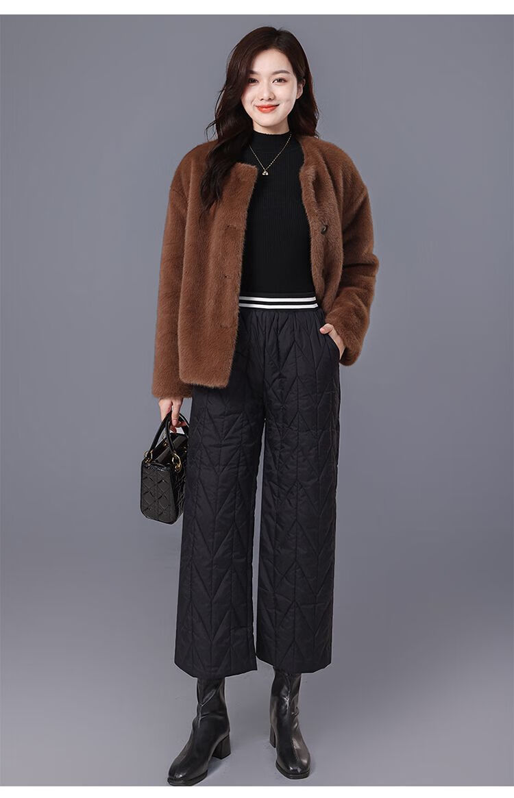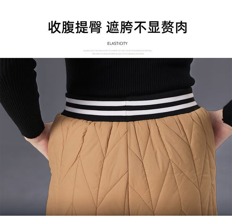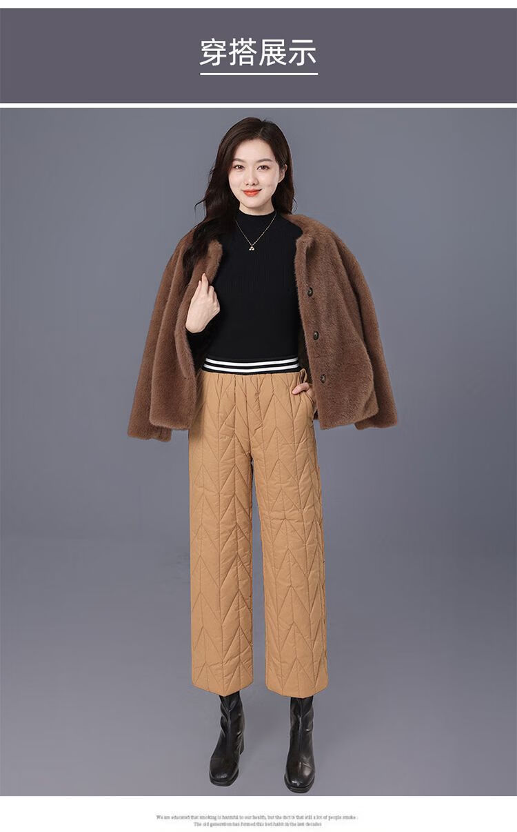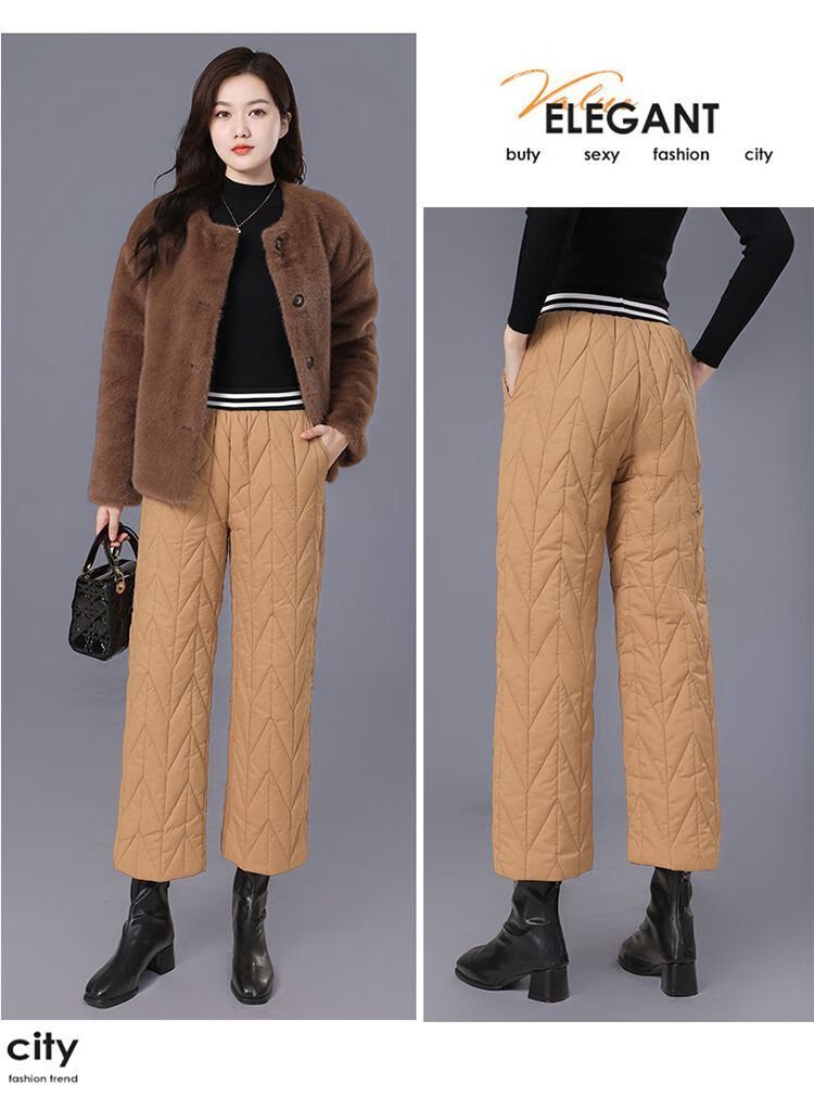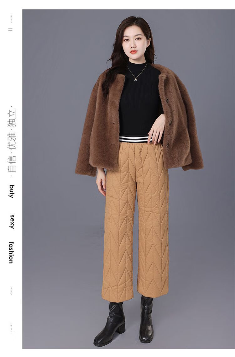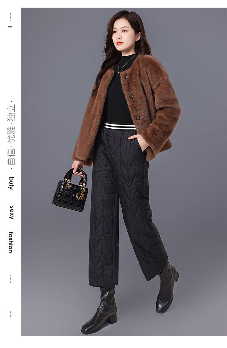 Down pants women's winter fashion wide leg pants large size thickened high waist loose warm slim outer wear nine-point pants ZHFS black XL ((recommended 110-120Jin Jin equals 0.5 kg)