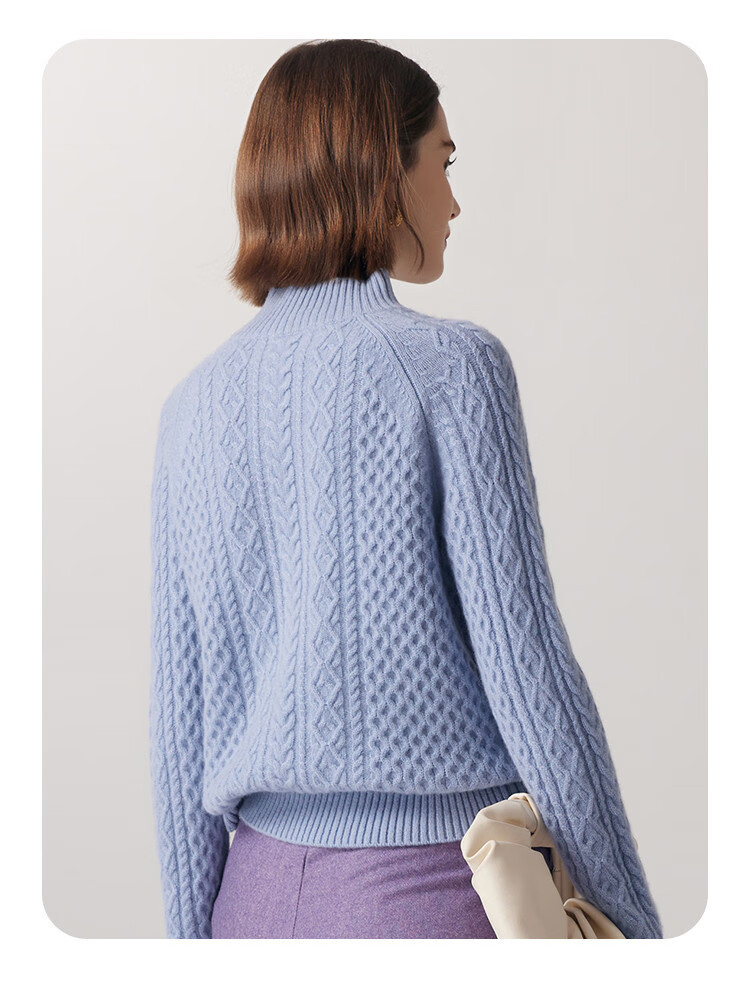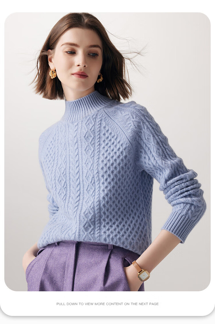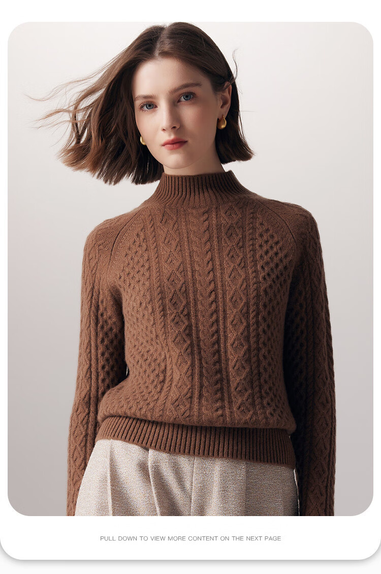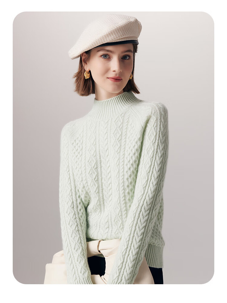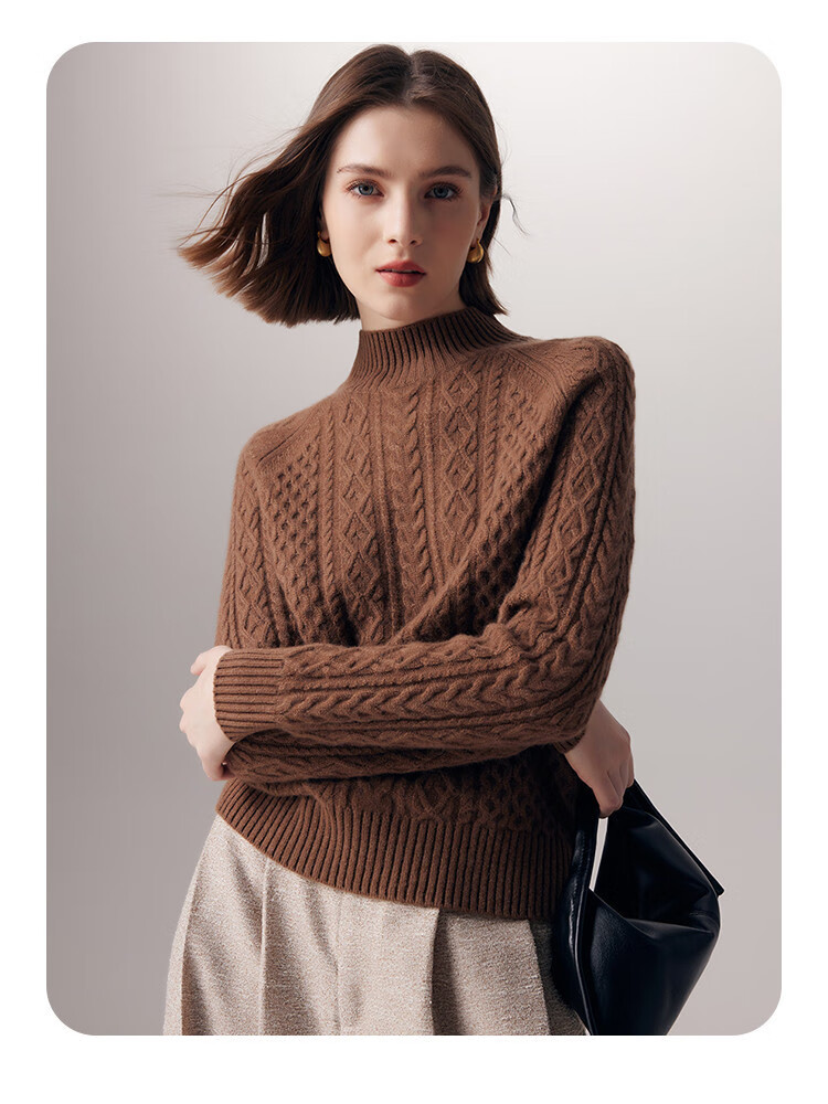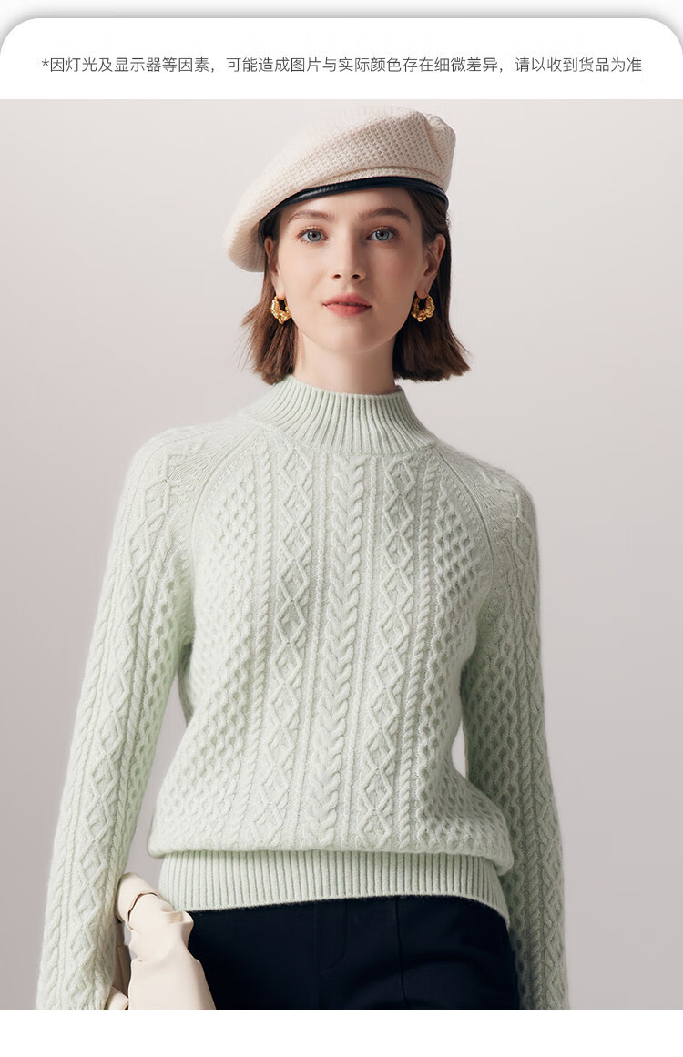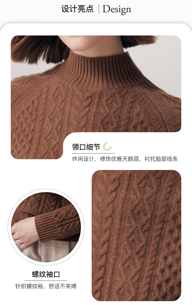 PALUOPO25 winter new solid color half turtleneck cable women's pure cashmere sweater pullover warm sweater ET20067R bright red clip flower M (100)