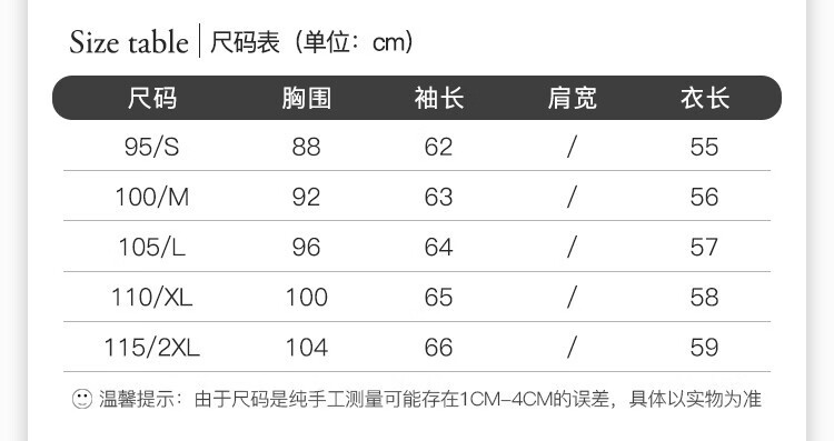 China (cm) 160-165/84-86 165-170 / 88-90 167-172 / 92-96 168-173 / 98-102 170-176 / 106-110