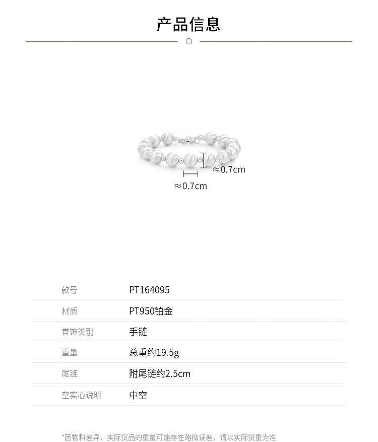 Chow Tai Fook G&W Series Ball Beads PT950 Platinum Bracelet PT164095 16.25cm