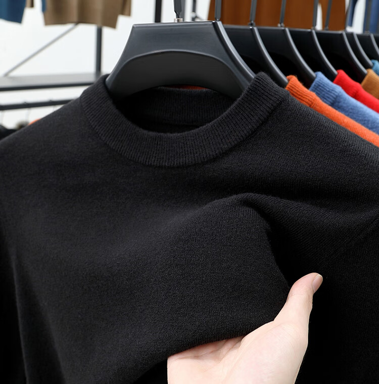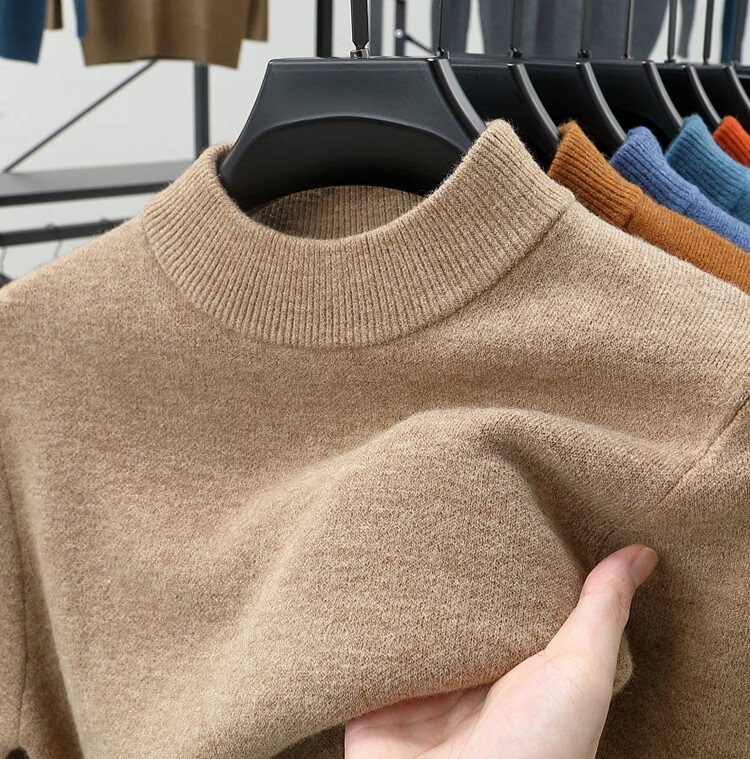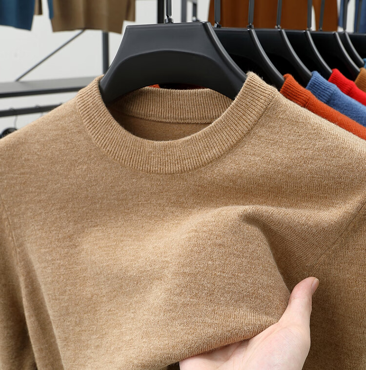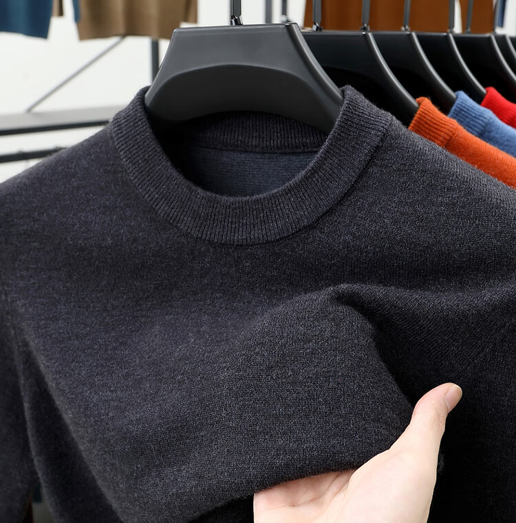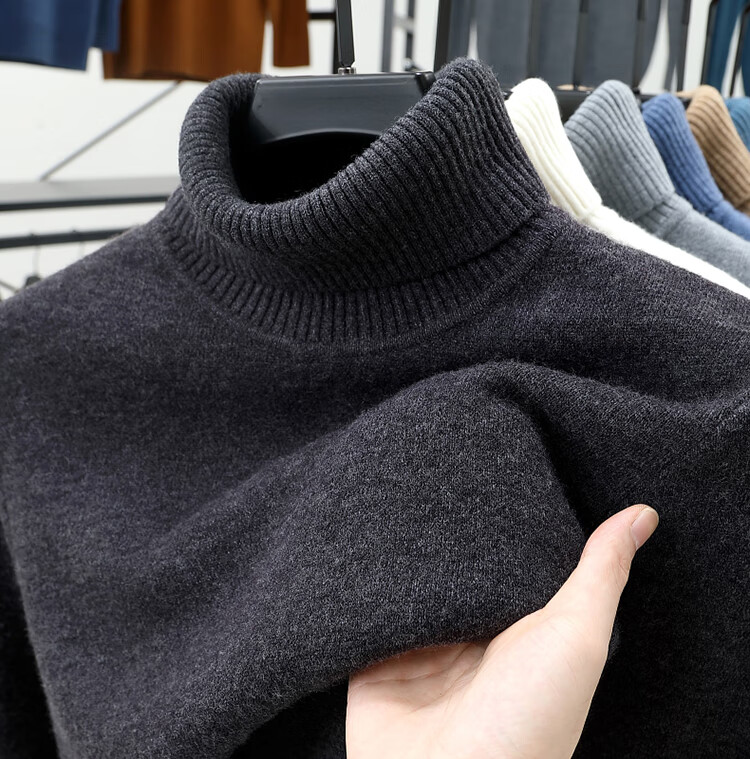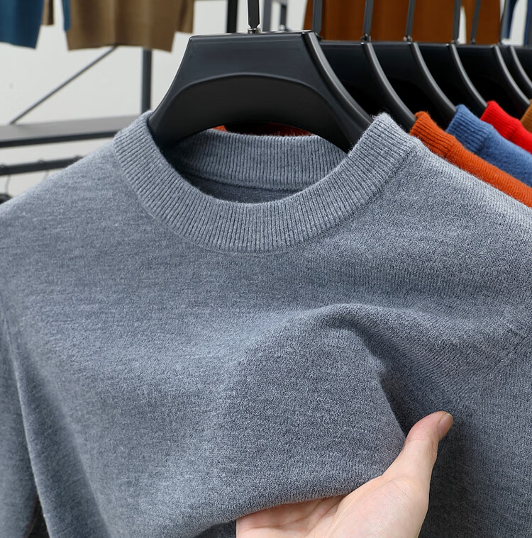 国际米澜高端100%羊毛衫男冬季新款加厚纯色针织保暖打底毛绒半高领毛衣 半高领 灰色(专柜精选) XL 175建议135-150斤