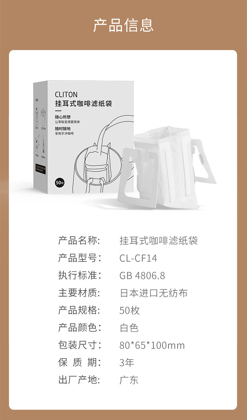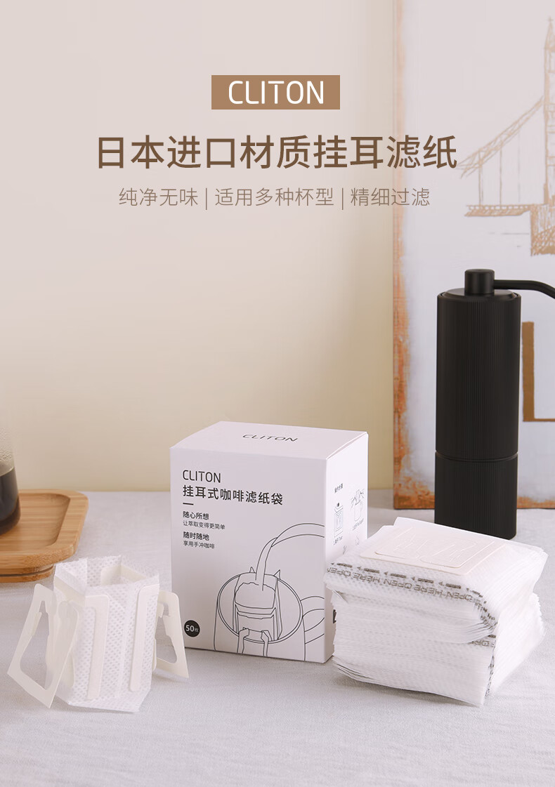 CLITON coffee filter paper hand-brewed hanging ear coffee filter paper household American coffee machine universal filter paper 100 sheets hanging ear filter paper white 100 sheets