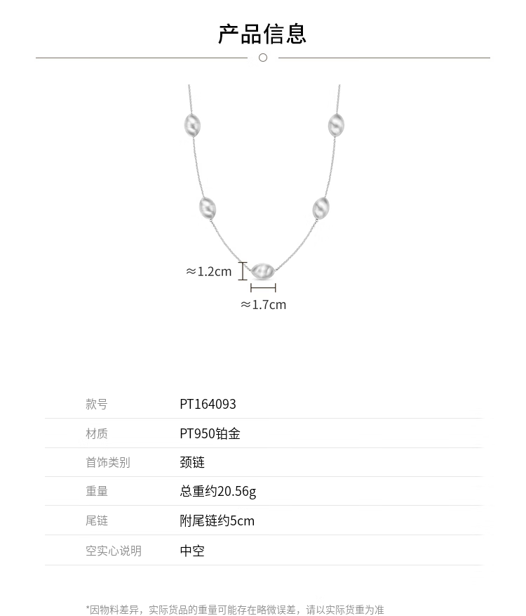 Chow Tai Fook G&W Series Ball Beads PT950 Platinum Necklace PT164093 50cm
