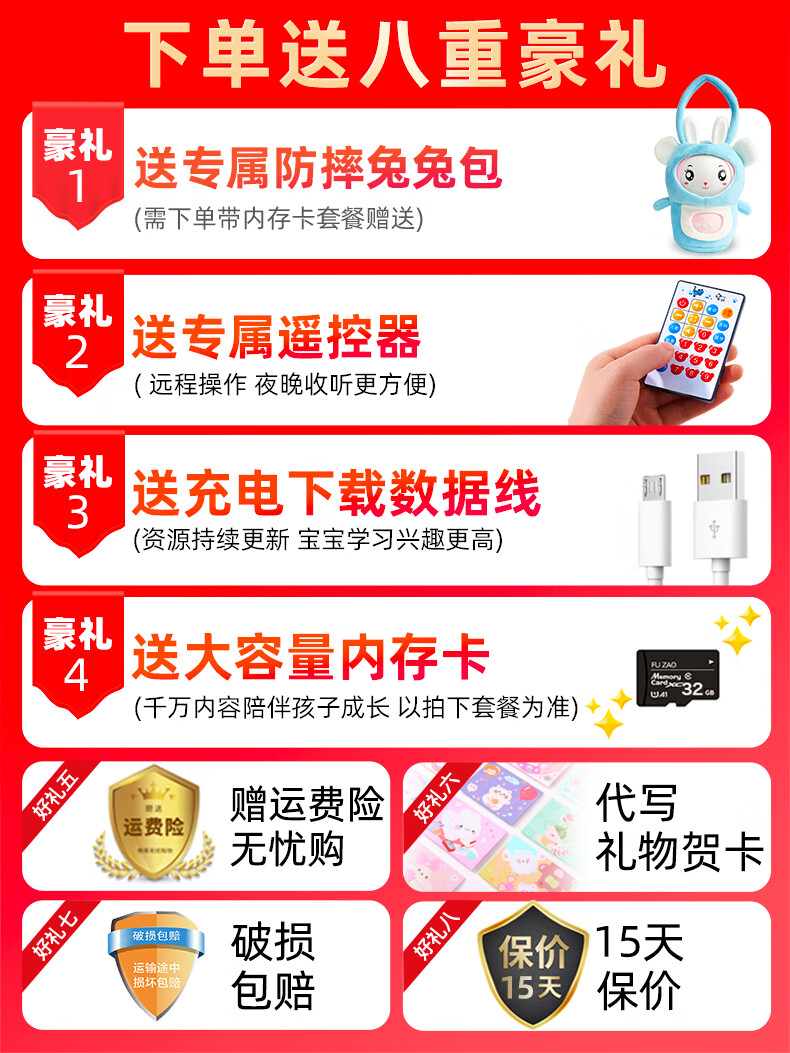 TKHE Rabbit Baby Early Education Machine Children's Song Player Music 3 to 6 Years Old Children's Story Machine Baby Radio 0 to 3 Years Old Persian Blue 16G5000 More Content