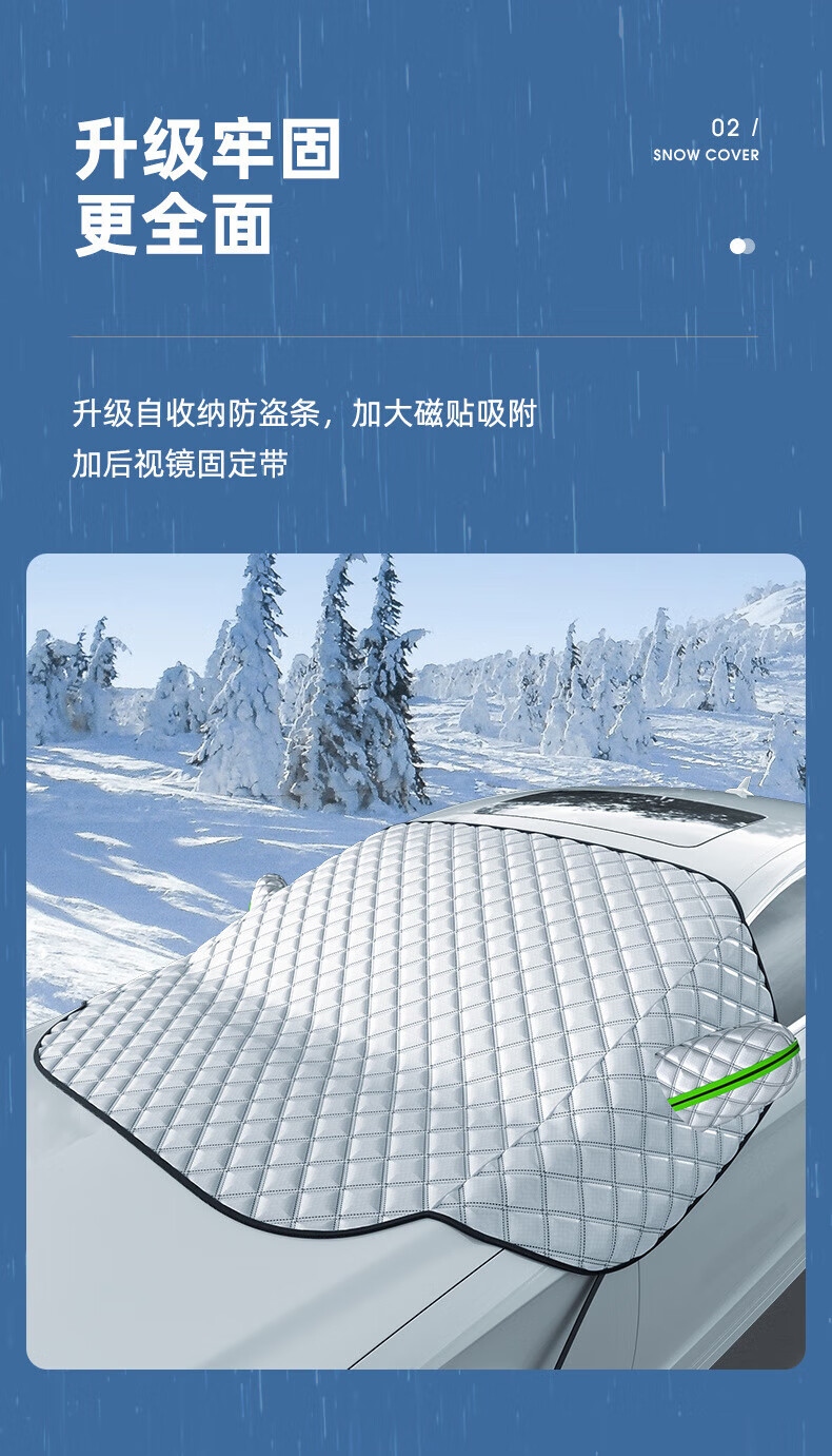Jidaocook car snow cover, front windshield car cover, half cover to cover snow, frost, anti-hail, winter protective cover, universal for all seasons, upgraded and thickened, sedan/SUV/hatchback/MPV, suitable for 99% of models on the market