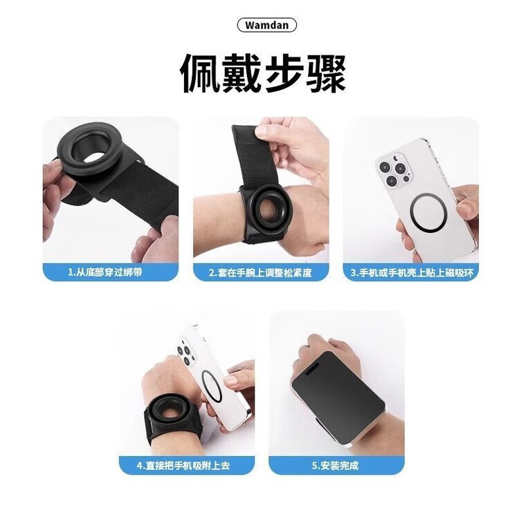 Mo Peng Wrist Phone Holder Magsafe Magnetic Arm Rotation Driving Live Broadcast Takeaway Cycling Anti-Loss Wristband Wrist-Arm Two-in-One (Sends Magnetic Sheet) Long and Short Strap Four Seasons