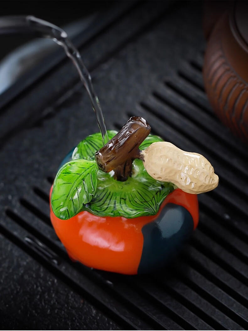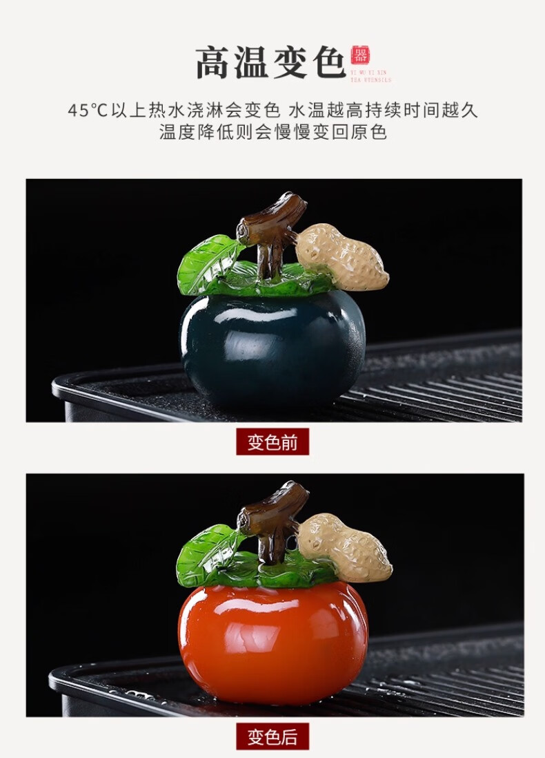 Good persimmon peanut color-changing tea pet can raise high-end tea table ornaments 2025 new tea play tea table decoration Kung Fu tea set Good persimmon peanut-turning red