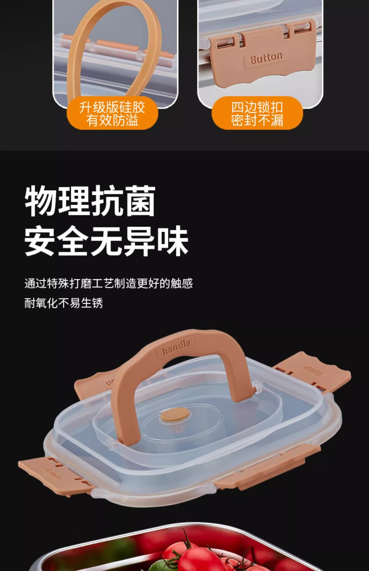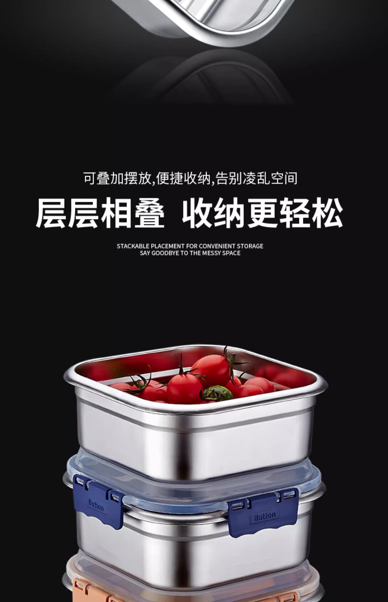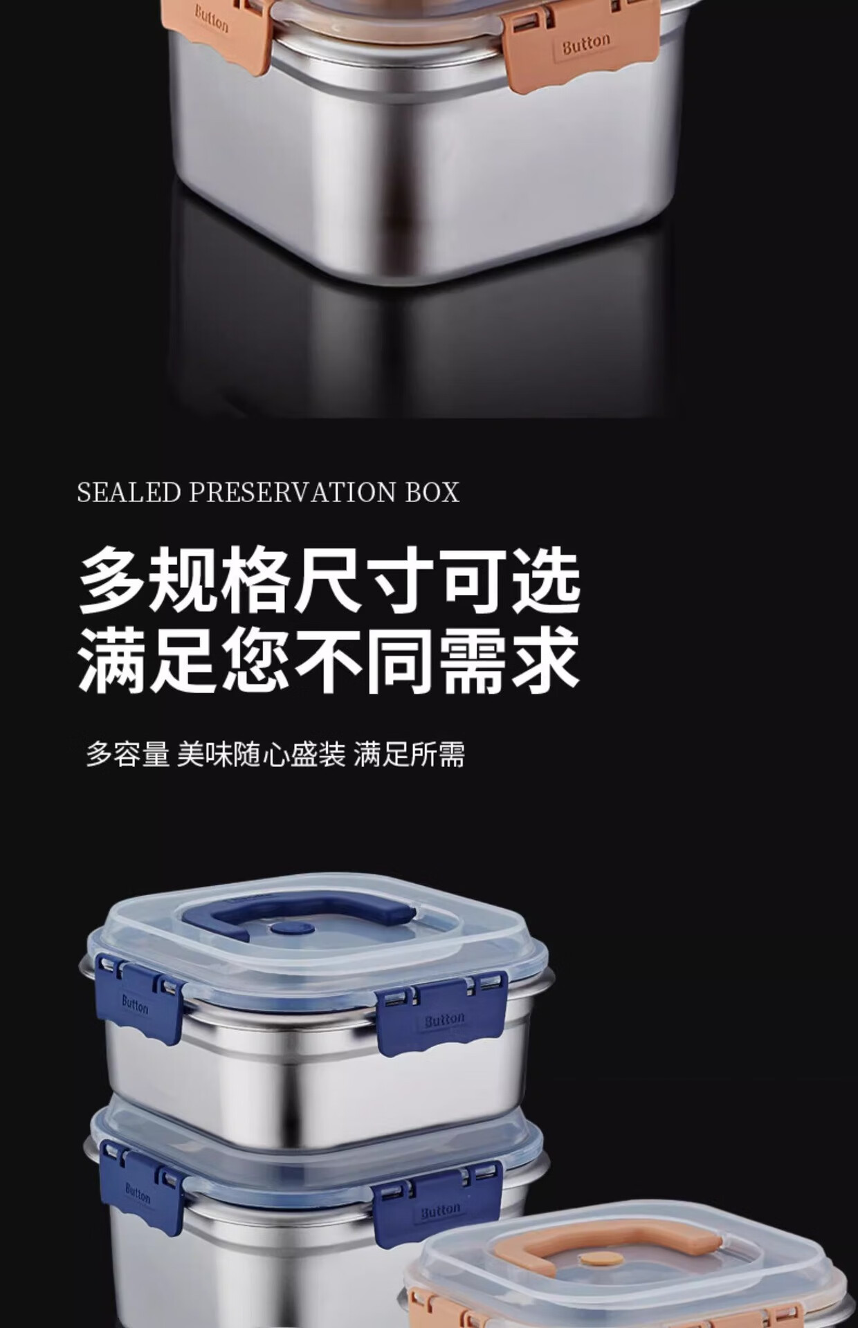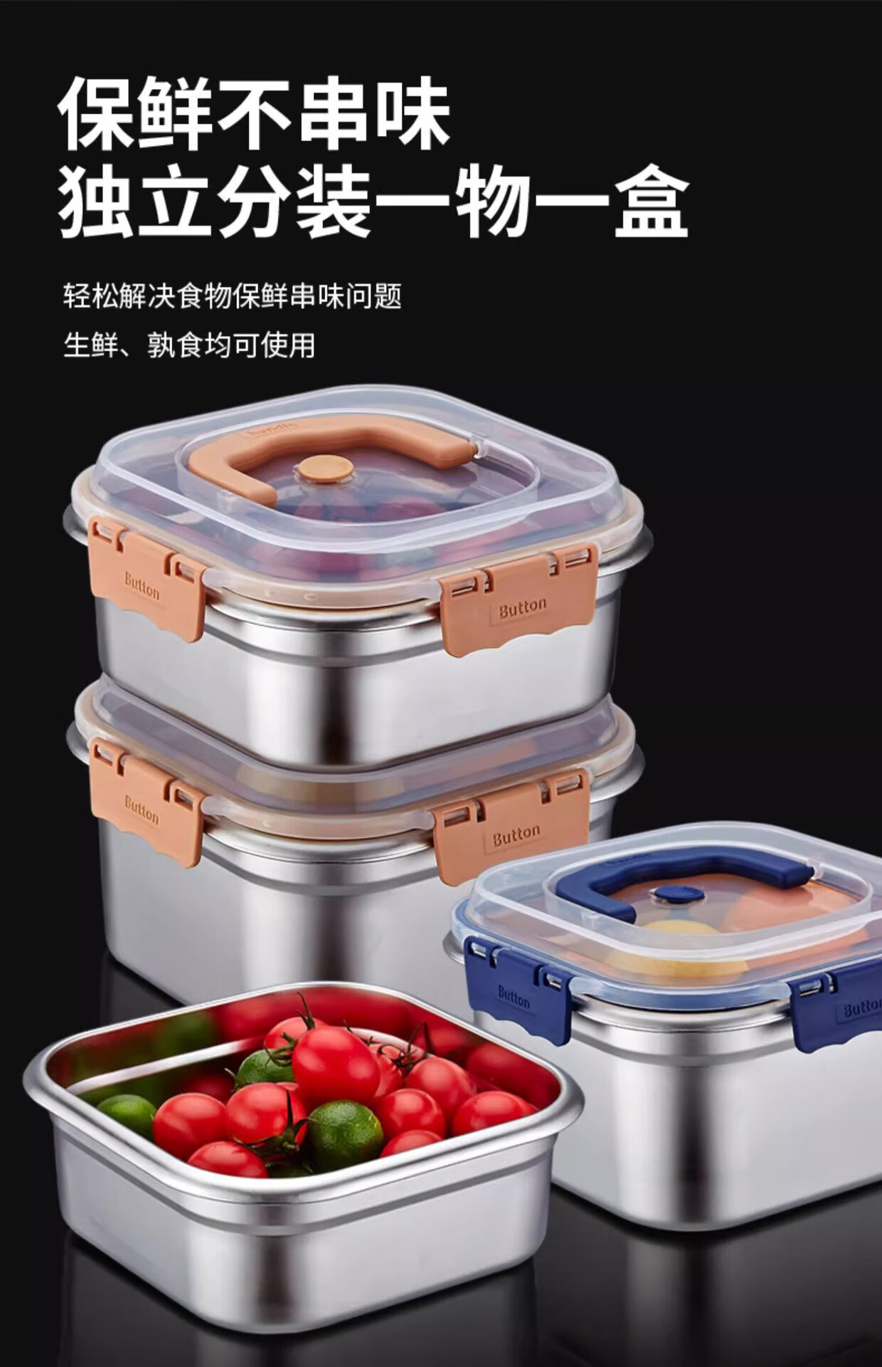 Stainless steel food preservation box, sealed refrigerator storage box, office worker lunch box, fruit lunch box, picnic box with lid, huge thickness 2500ml, 4 pieces, free portable sealing lid, thickened 316 stainless steel