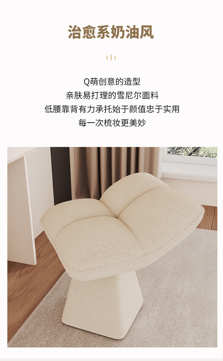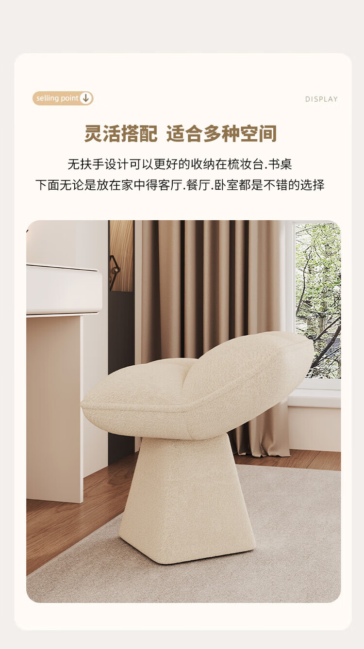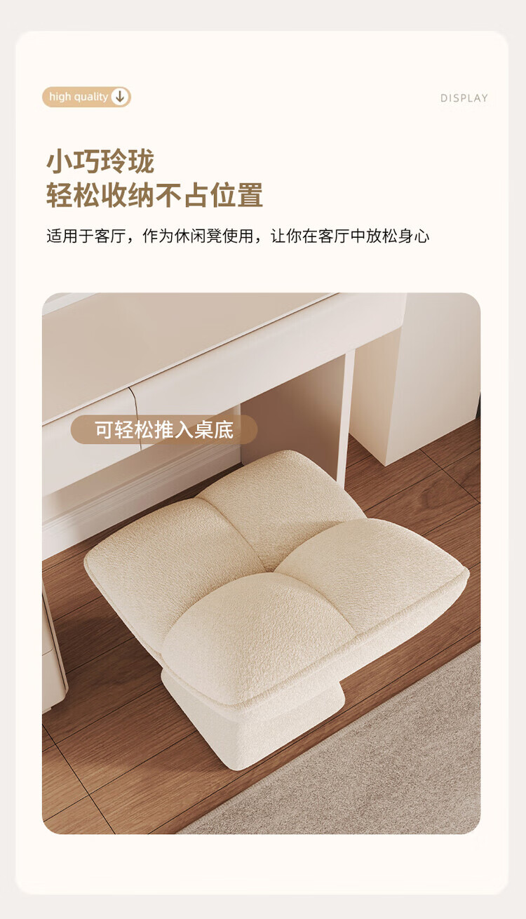Yunbin dressing table stool bedroom designer creative dressing table makeup stool living room small stool shoe changing stool rotating low stool milk coffee color cannot rotate chenille fabric