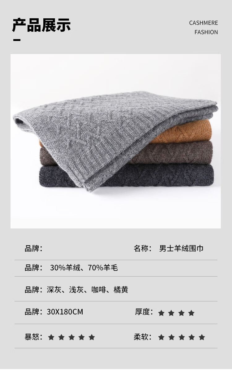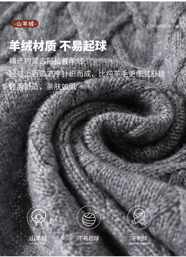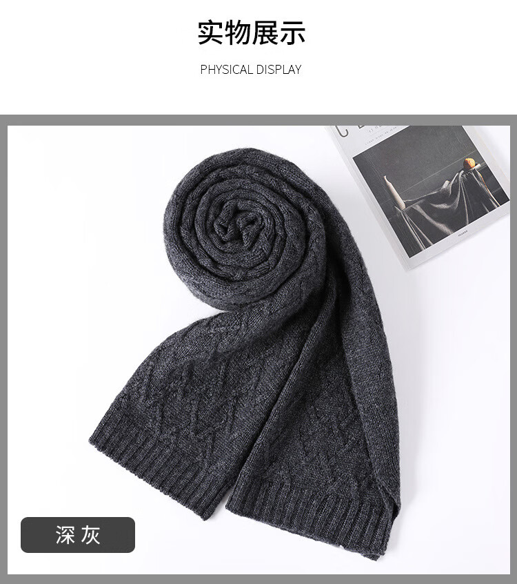 Hengyuanxiang jacquard solid color cashmere scarf winter new style for men and women thickened Korean fashion warm wool scarf neck scarf dark gray 175cm or more
