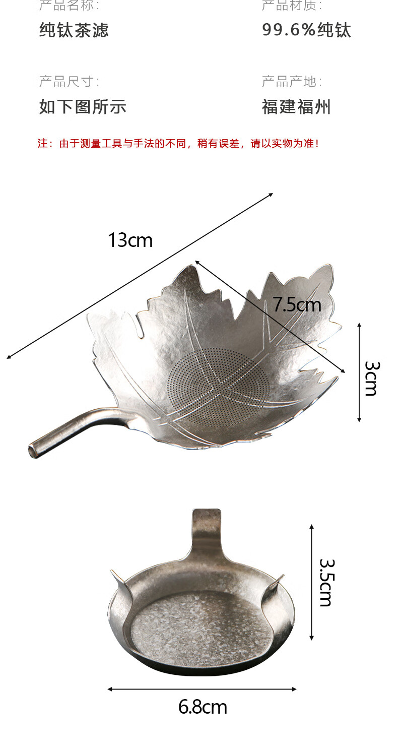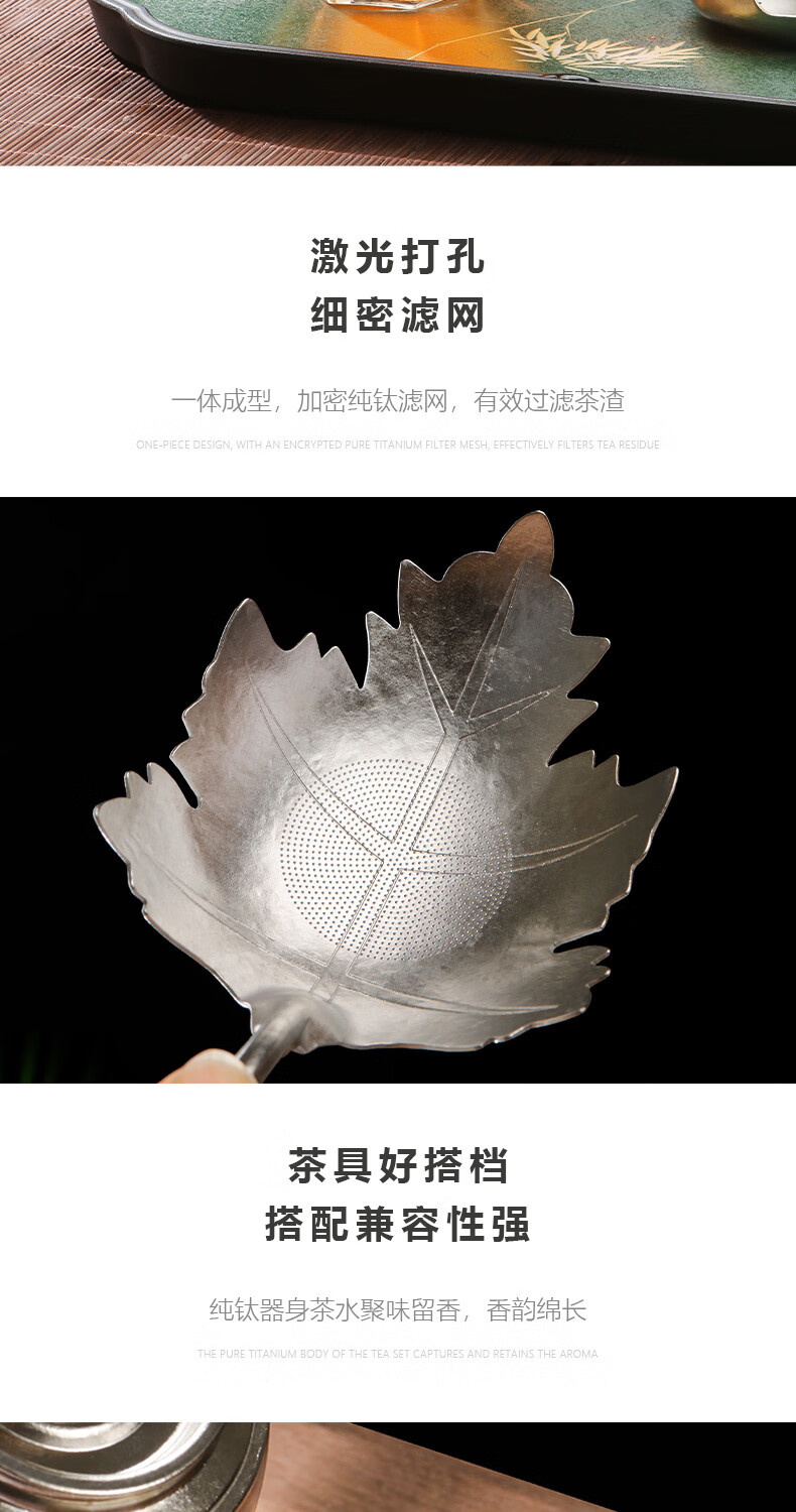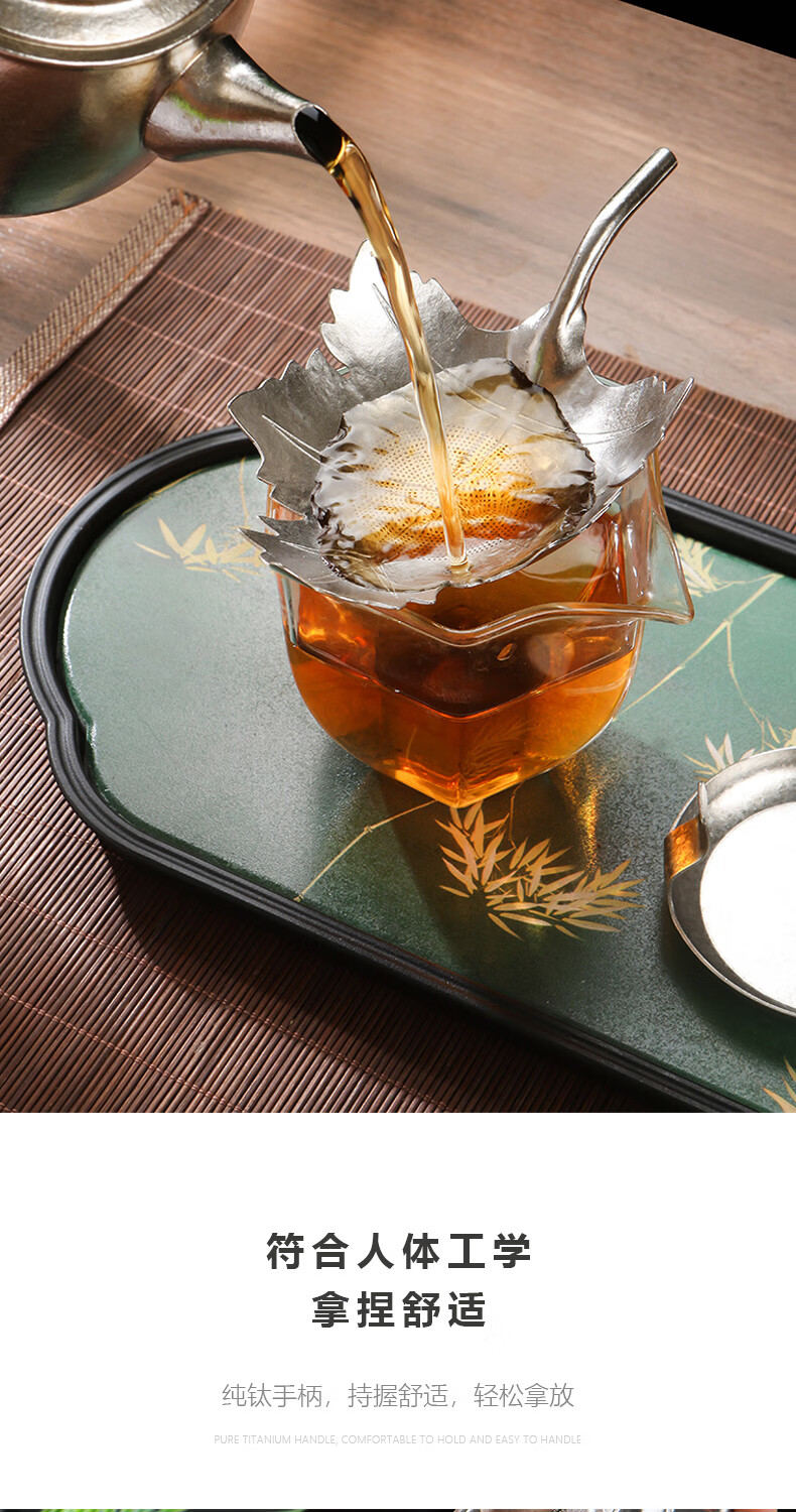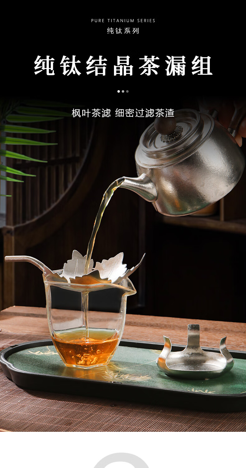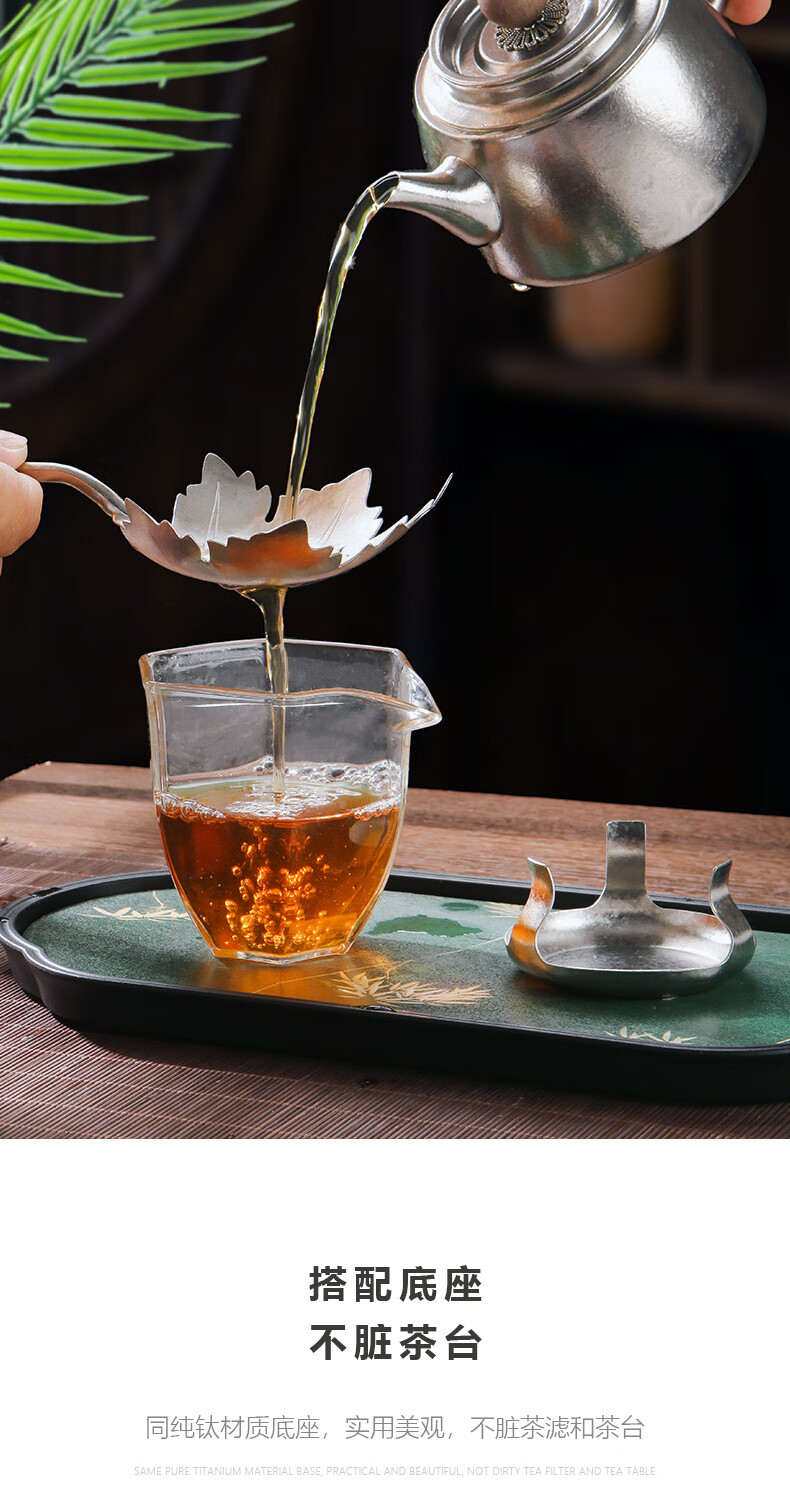 Let’s get some pure titanium tea leak tea filter handmade creative leaf tea set filter tea leak tea filter kung fu tea ceremony spare parts upgraded crystal model-1033 holes pure titanium maple leaf tea drain + triangular pure titanium base