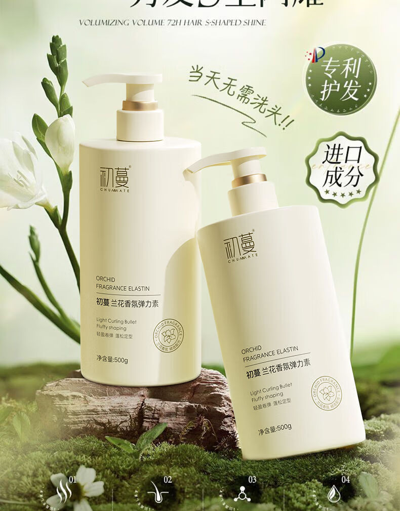 CHUMMATE special elastin for curly hair, moisturizing, soft styling, repairing frizz, perming and dyeing, fluffy, long-lasting fragrance, essential oil for men and women, great value, fragrance elastin 500ml*2 500ml, suitable for all types of curly hair/curl protection and moisturizing patent
