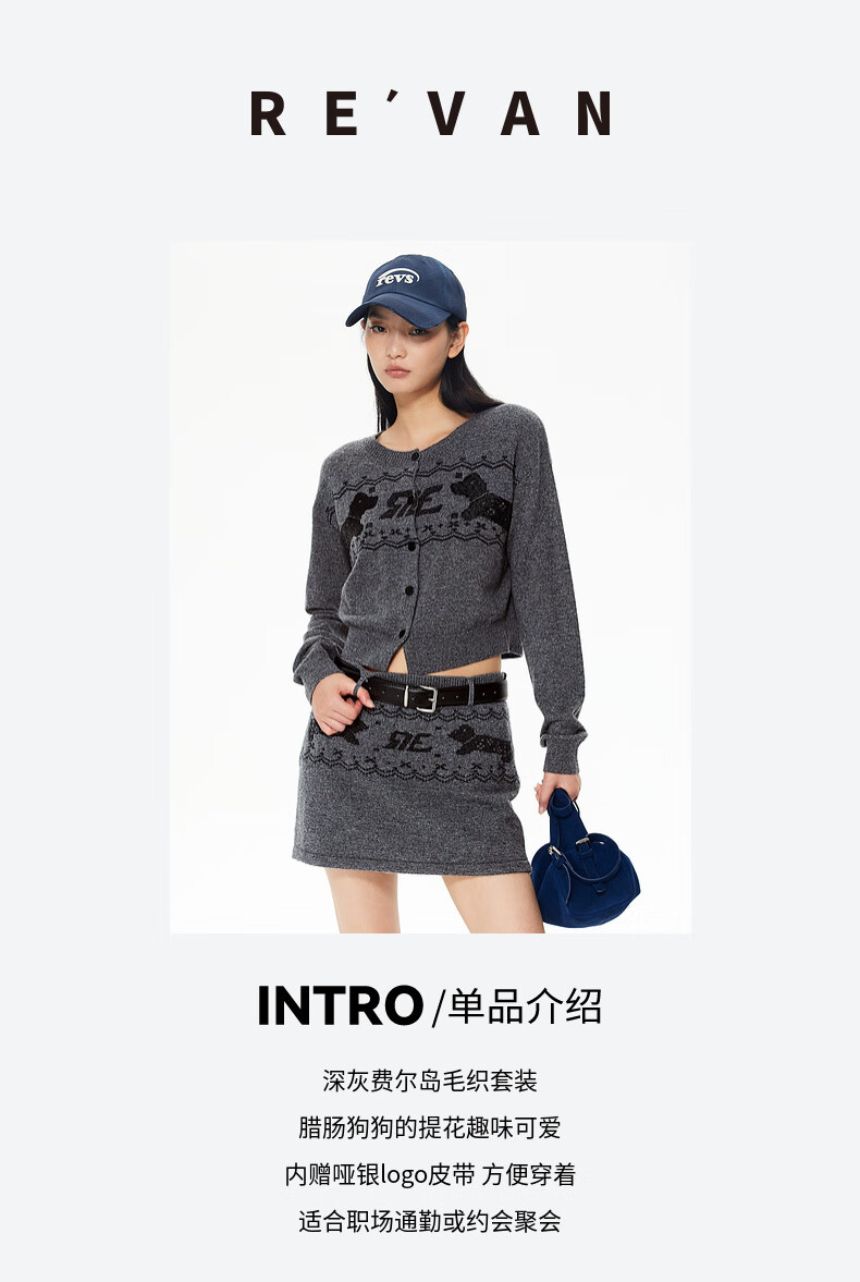RE VAN Rui Fan new designer style dark gray Fair Isle woolen suit RL92401156 dark gray (flower) L /40