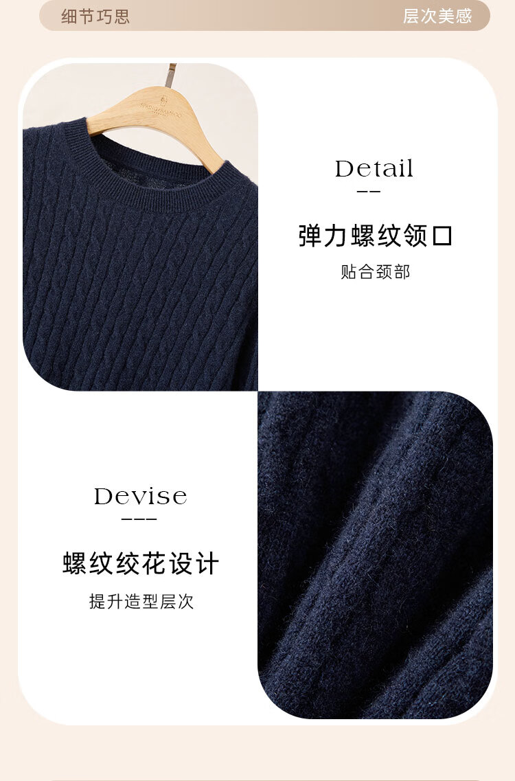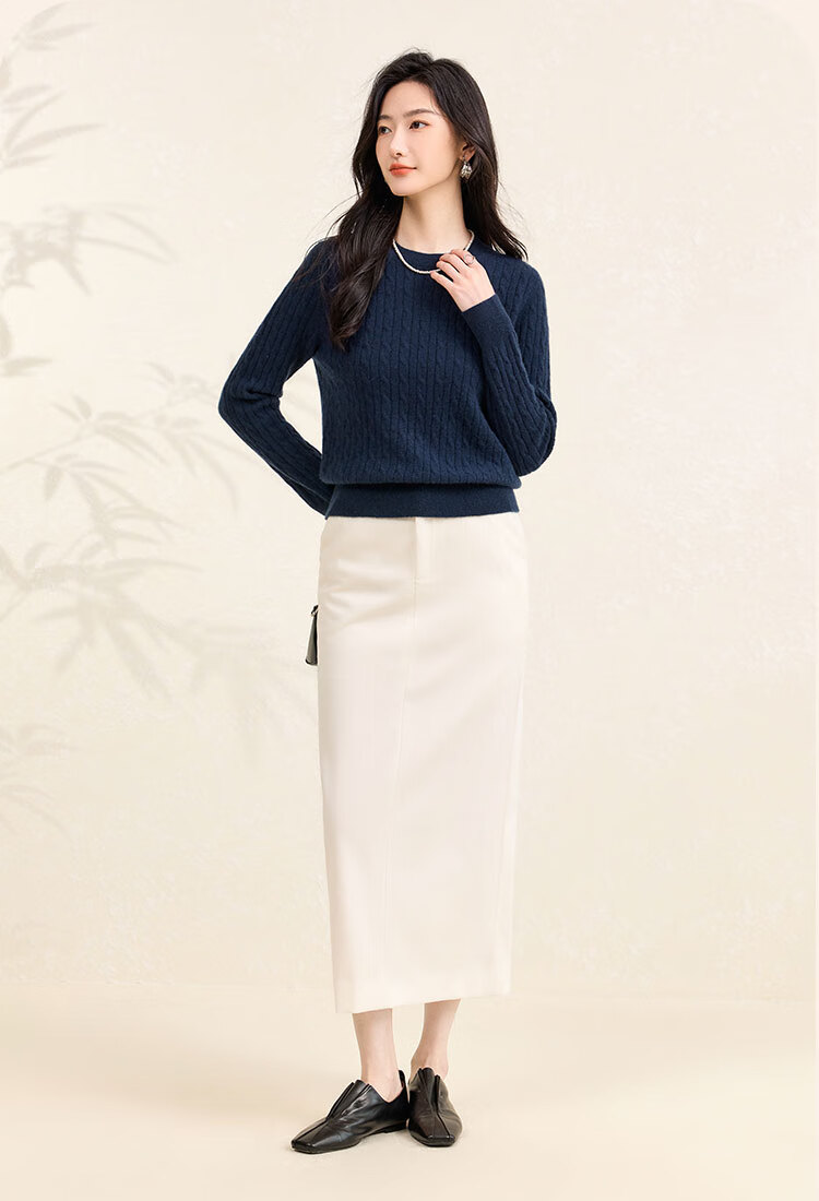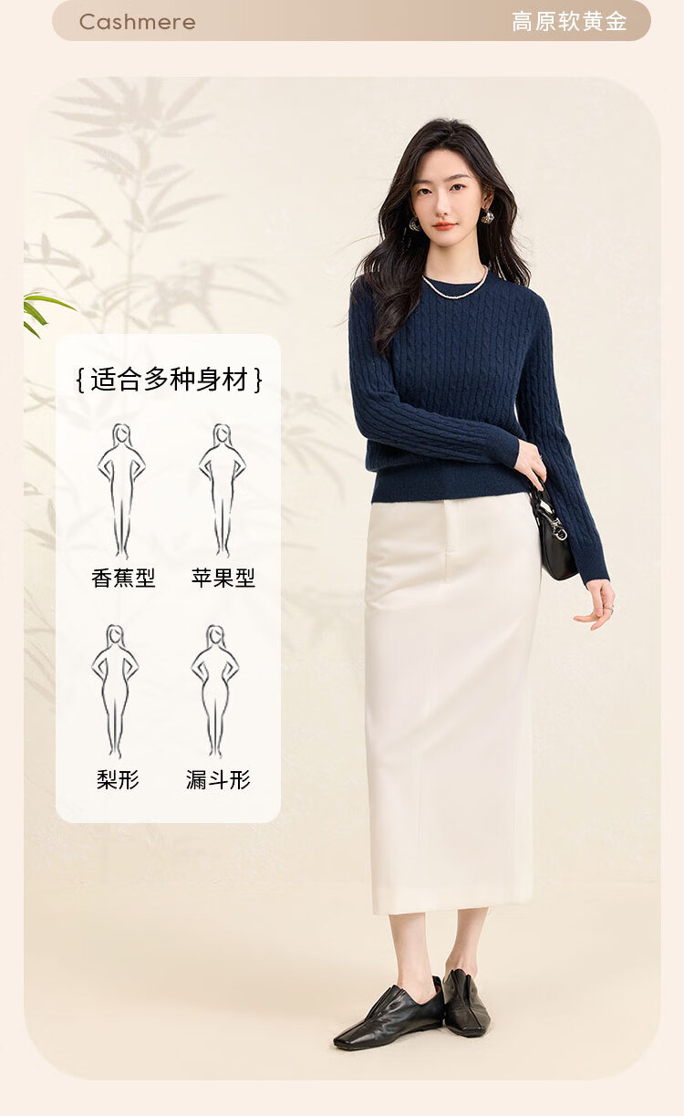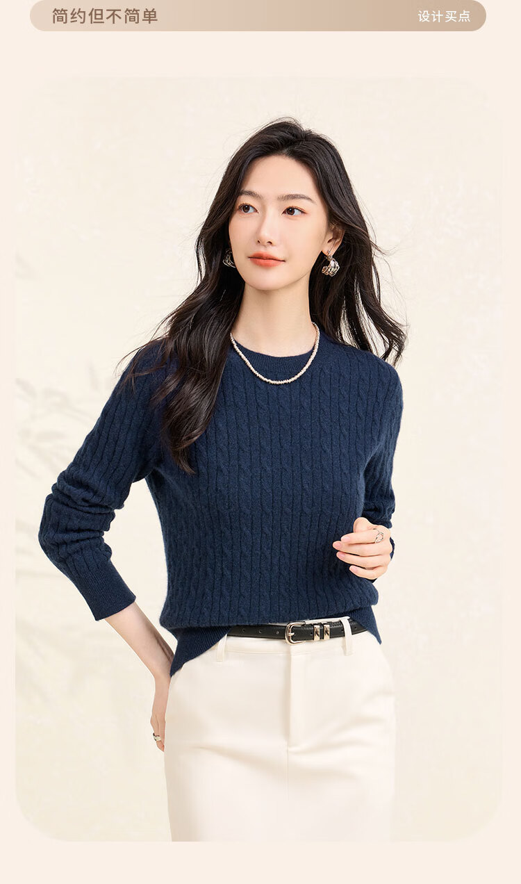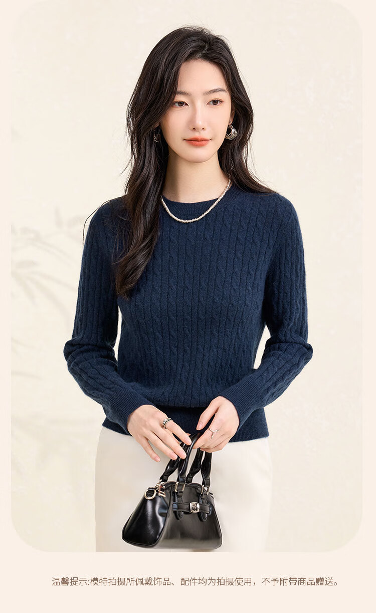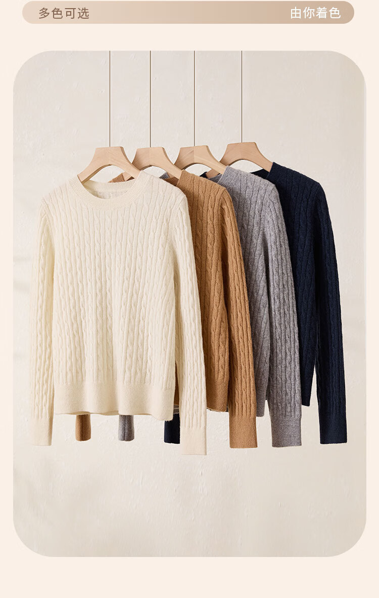 Chunzhu Cashmere 2025 Autumn and Winter Round Neck Cable Warm Age-Reducing Comfortable Sweater Women's High-End Cashmere Sweater Hutt White M (90-110Jin Jin is equal to 0.5kg)