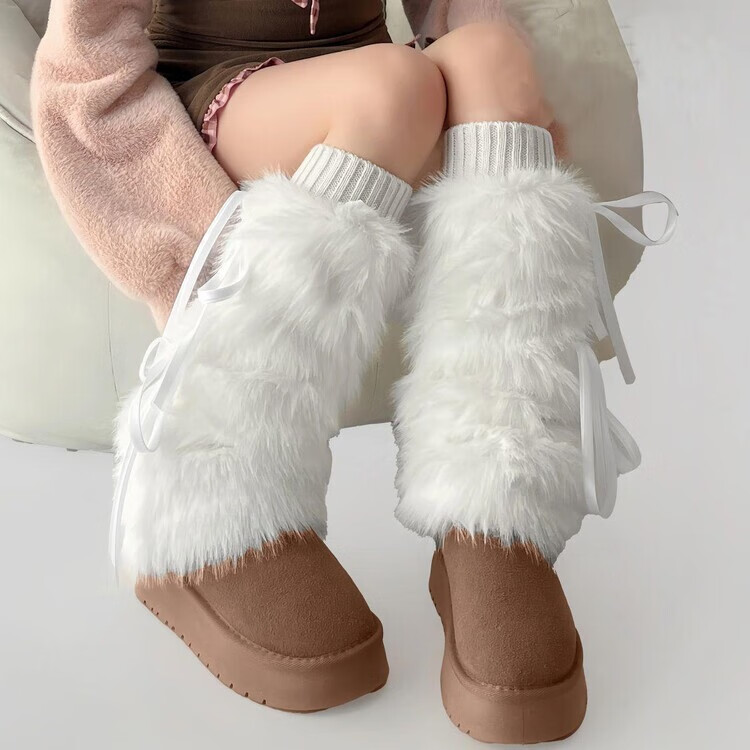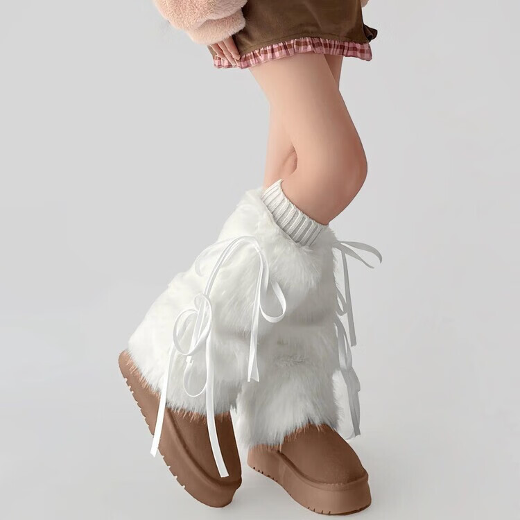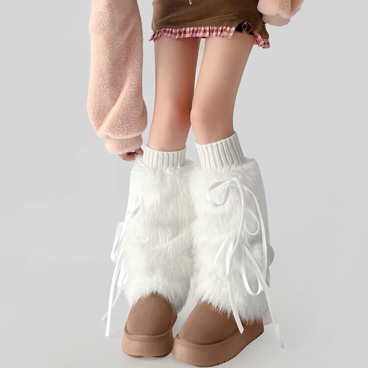 JIOESC Sock Covers Piles of Socks Women's Autumn and Winter Versatile Y2k Hot Girls Bow Strap Plush Warm Mid-calf Socks Leg Guards Plush White-Bow Knot Strap Sock Covers Sweet Spicy Versatile 1 Pair One Size