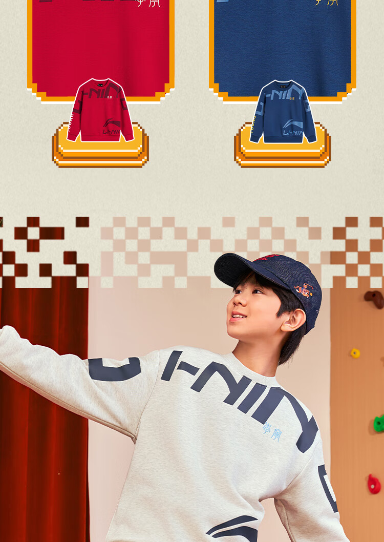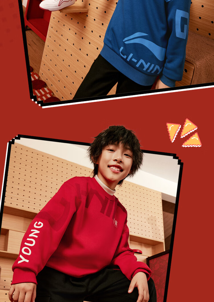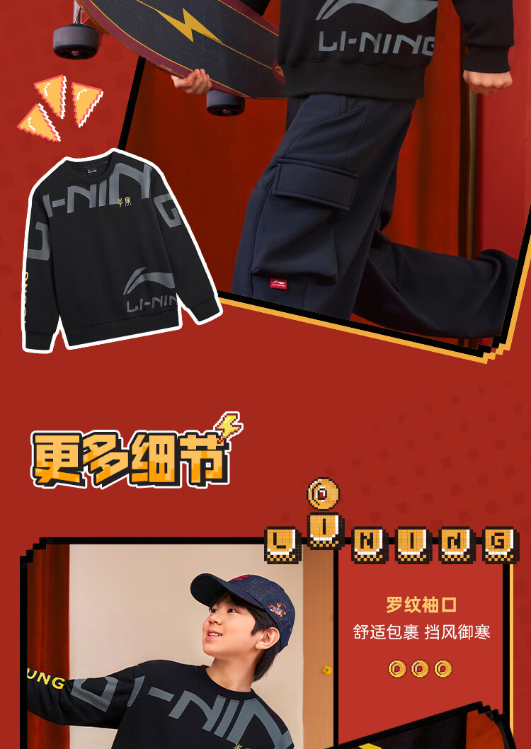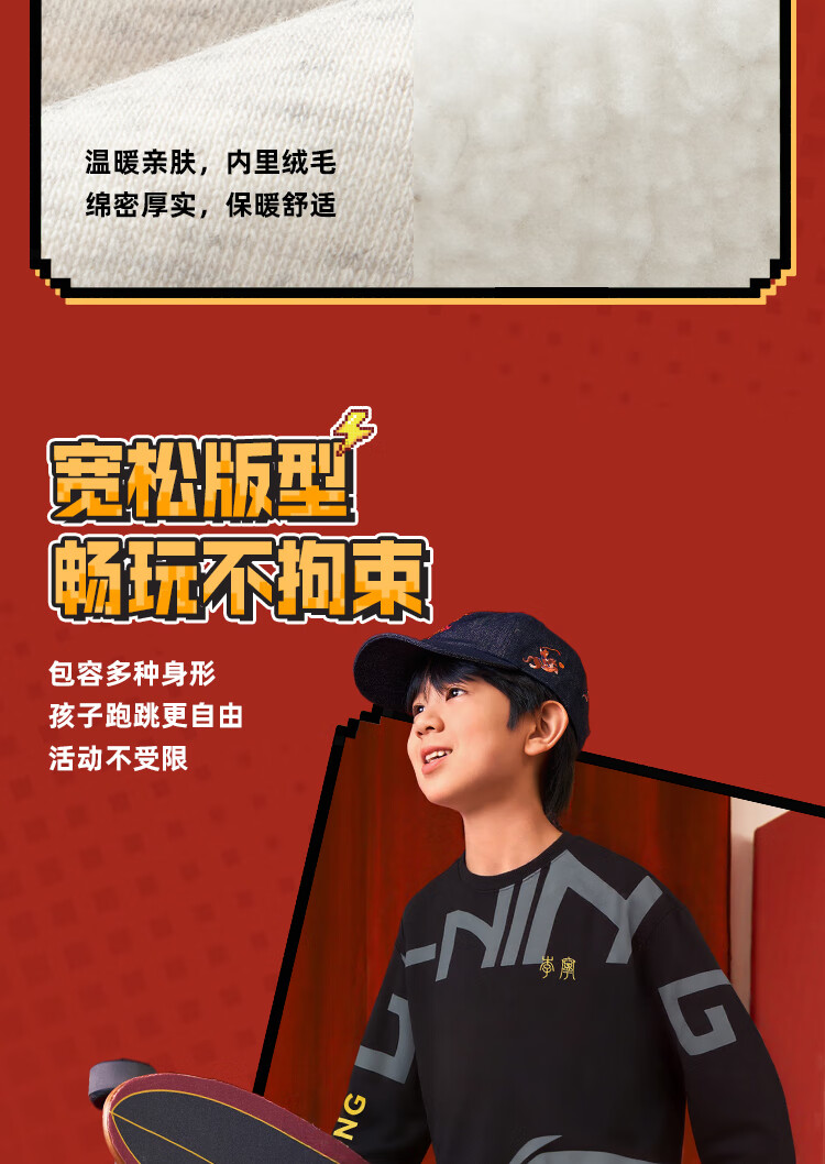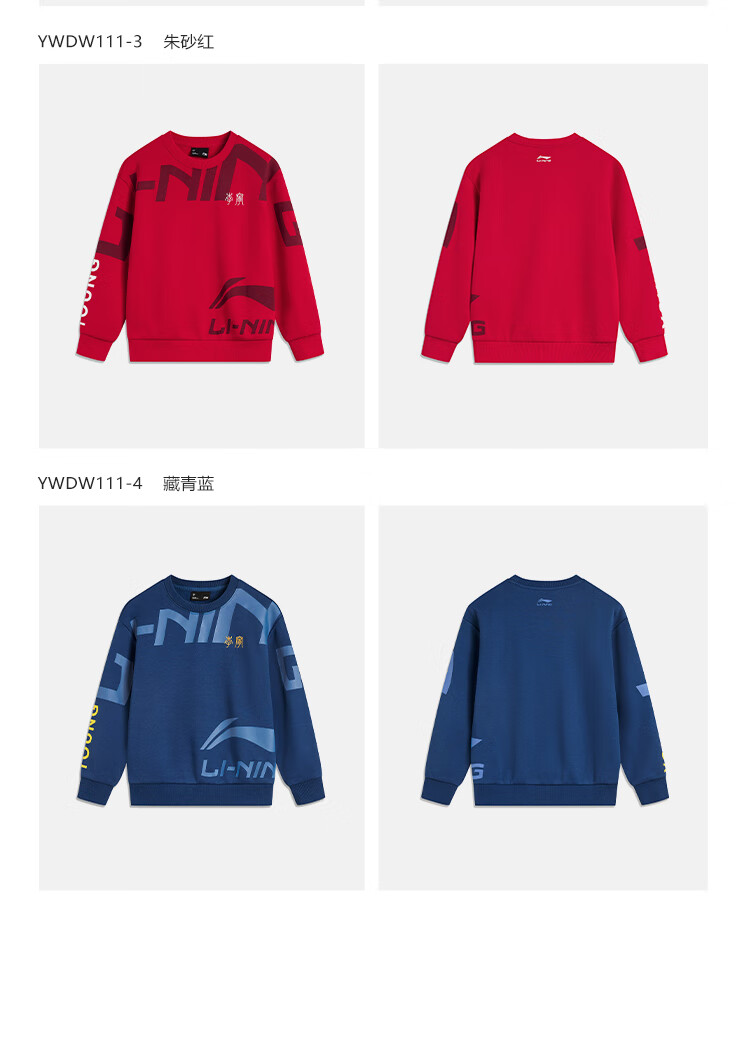 Li Ning children's clothing children's sweatshirts for men and women, small and big children, new year's casual loose sports fashion pullover sweatshirt YWDW111 cinnabar red-3 140