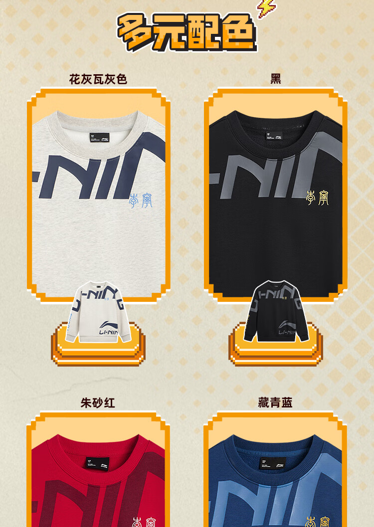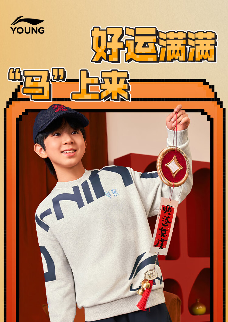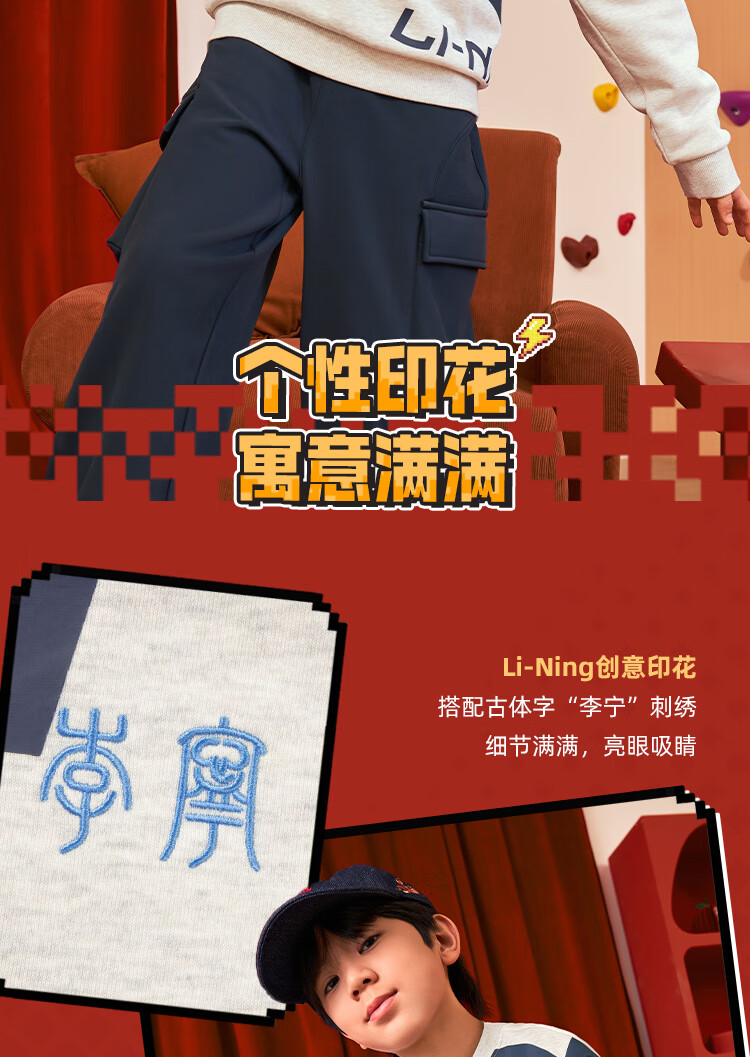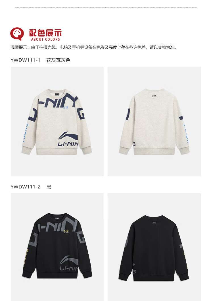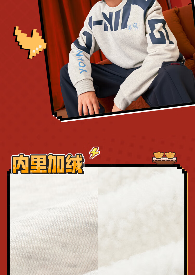 Li Ning children's clothing children's sweatshirts for men and women, small and big children, new year's casual loose sports fashion pullover sweatshirt YWDW111 cinnabar red-3 140
