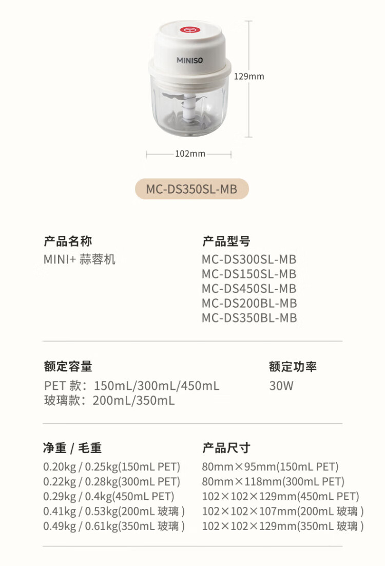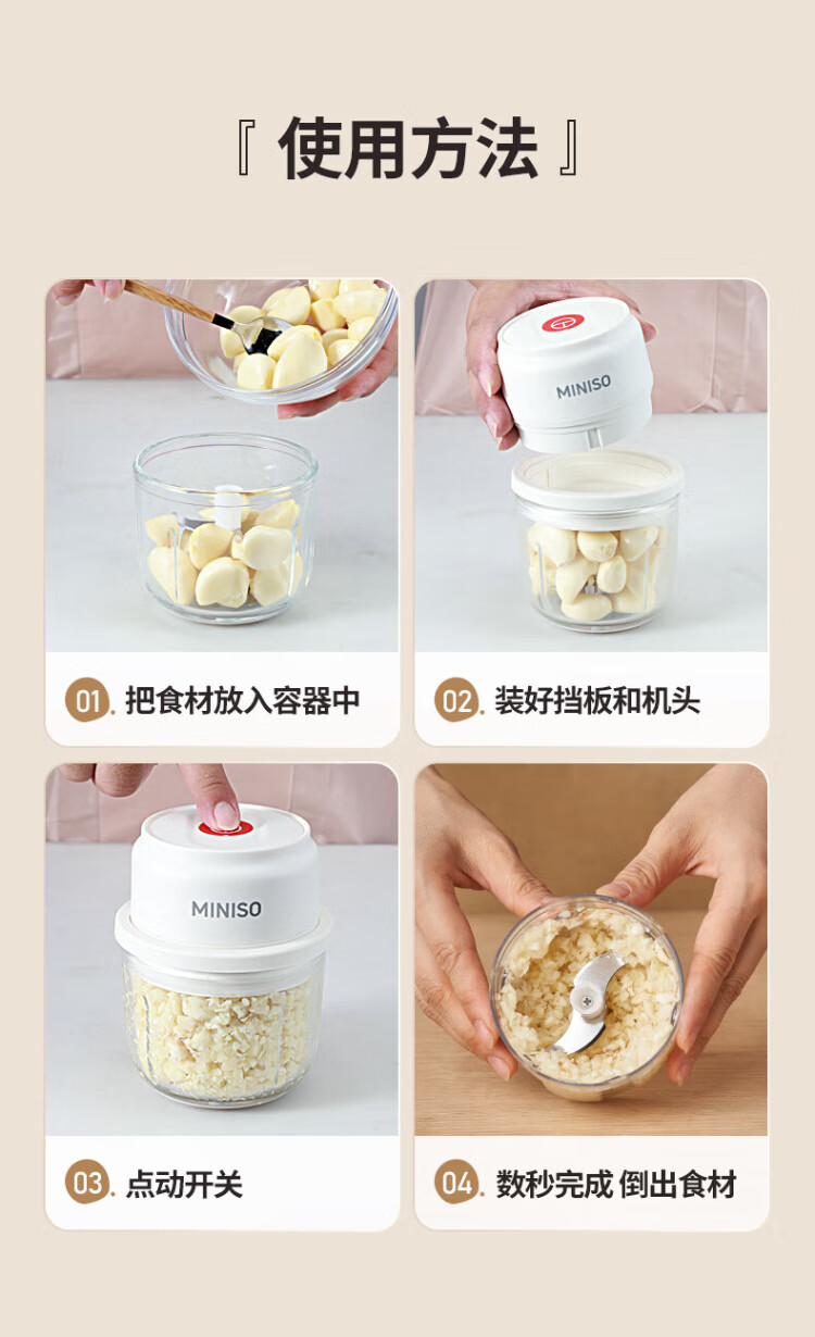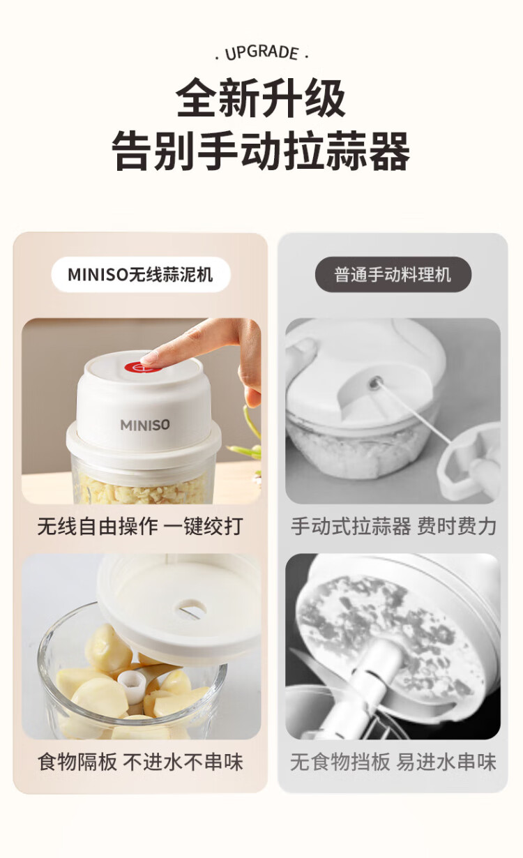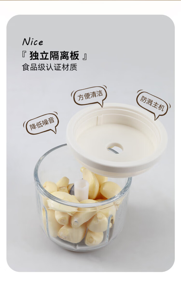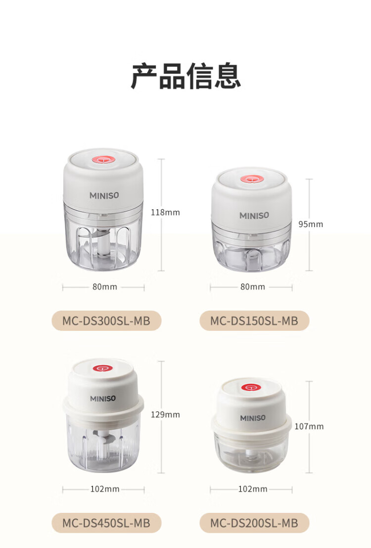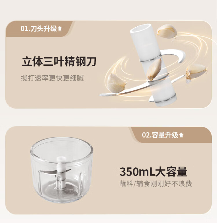 名创优品蒜泥机绞肉机小型捣蒜器电动打蒜器料理机辅食机 【300ml常规料理碗丨四叶420不锈钢刀丨强劲电机】