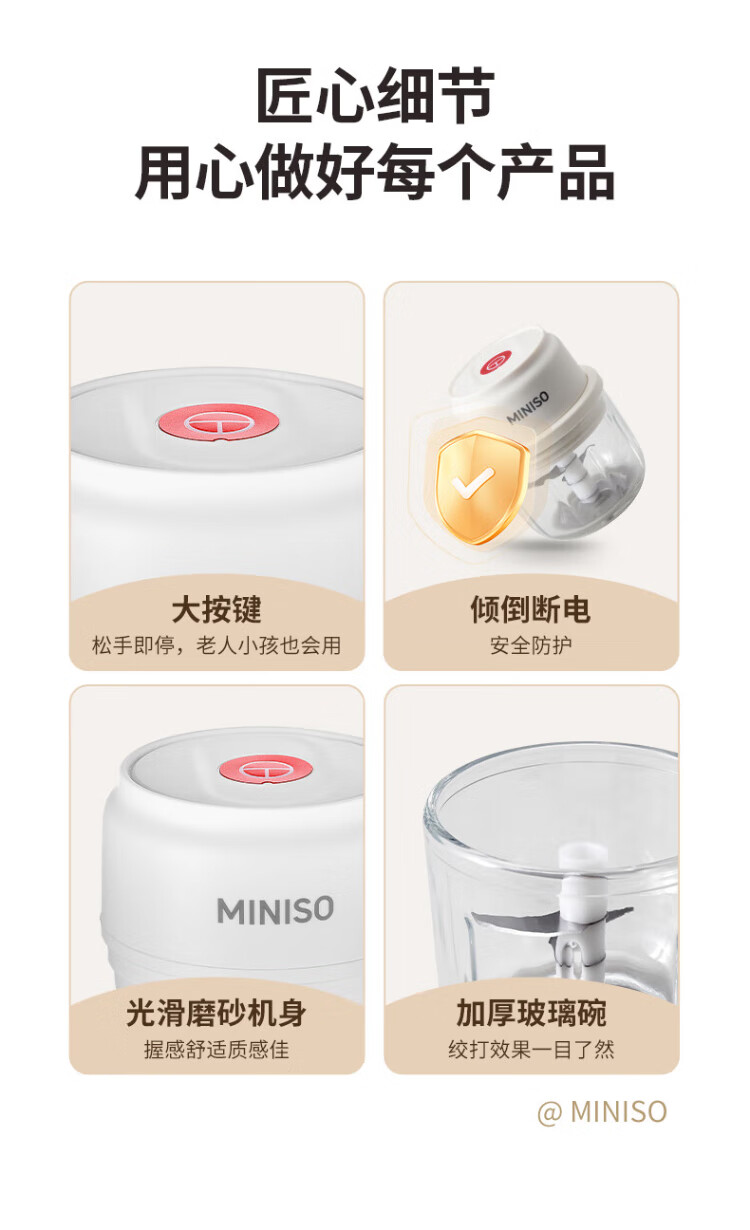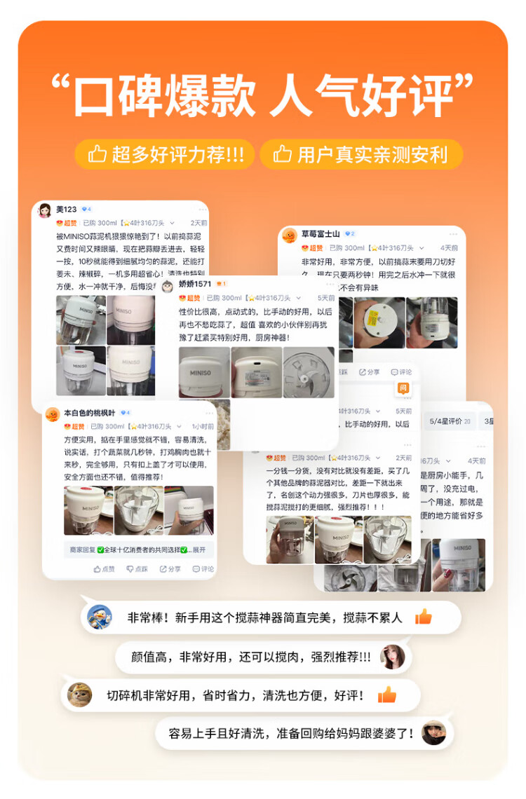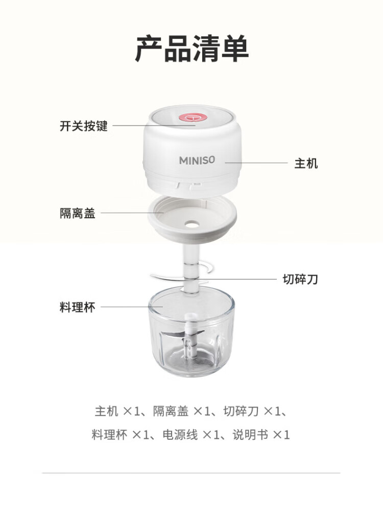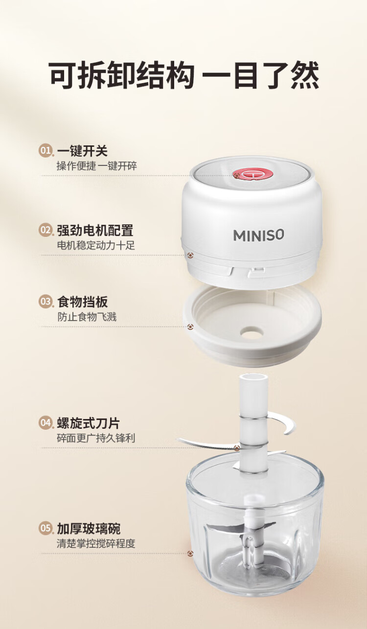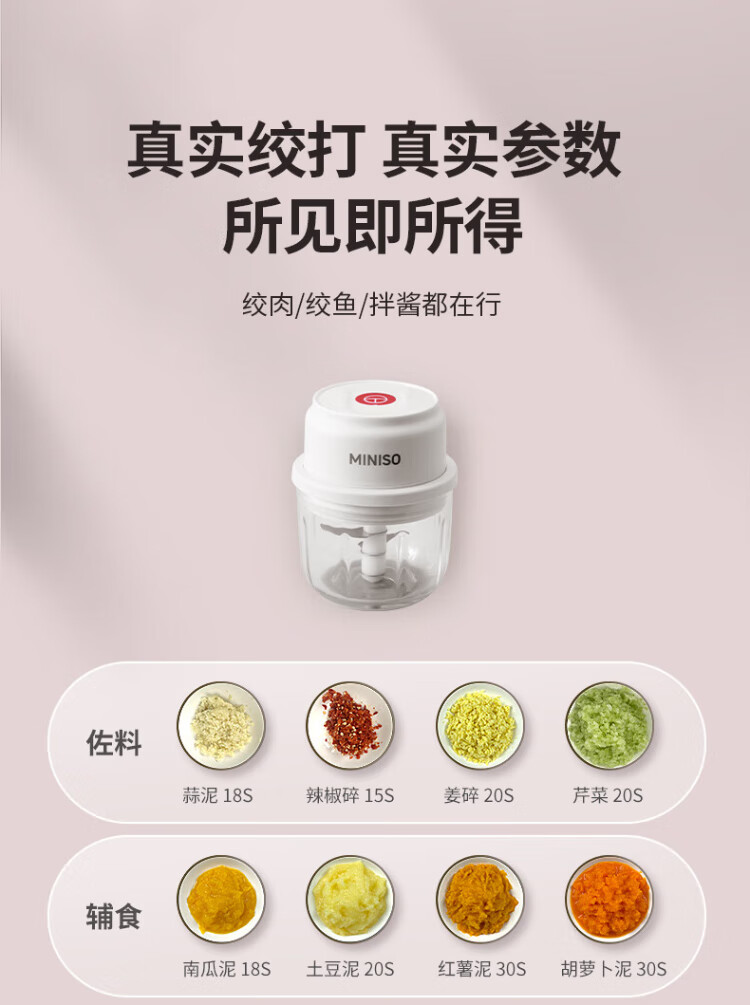 名创优品蒜泥机绞肉机小型捣蒜器电动打蒜器料理机辅食机 【300ml常规料理碗丨四叶420不锈钢刀丨强劲电机】