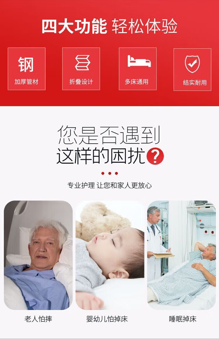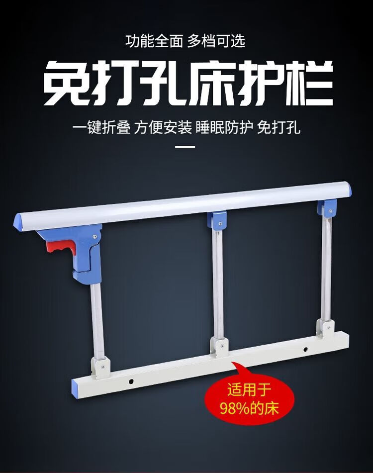 General Electric (GE) medical bed guardrail household folding punch-free anti-fall fence for the elderly and children bed guardrail get up aluminum alloy three-speed punch type