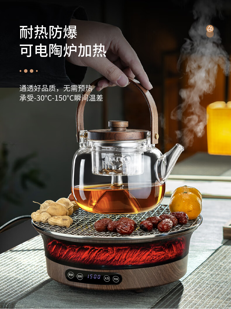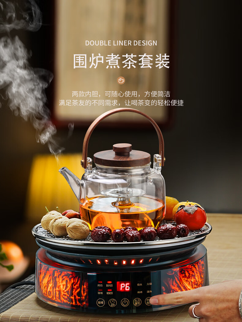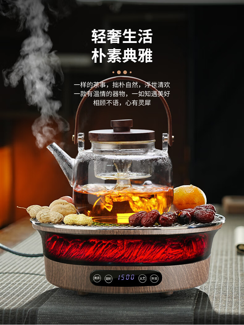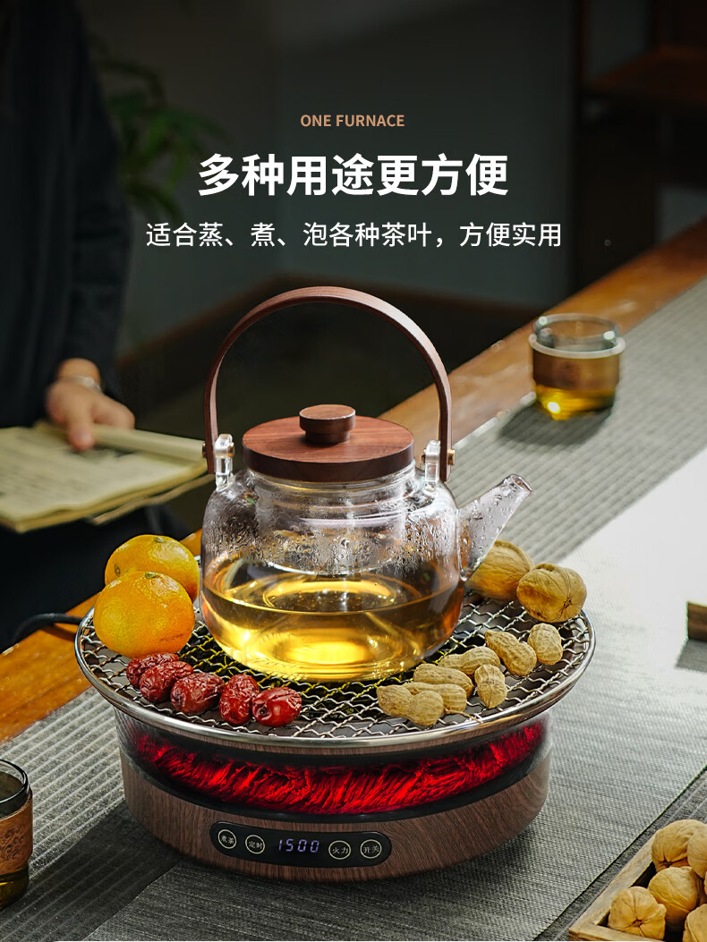 Gaoming (gaoming) 2025 new style tea-making equipment around the stove, household indoor full set of electric ceramic stove, roasting stove, tea set set, steaming teapot, plain style teapot + campfire stove