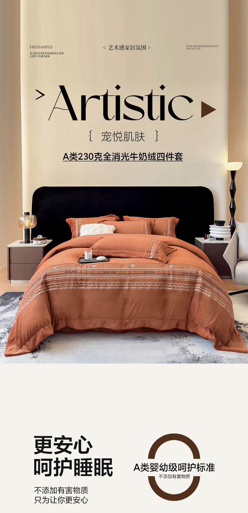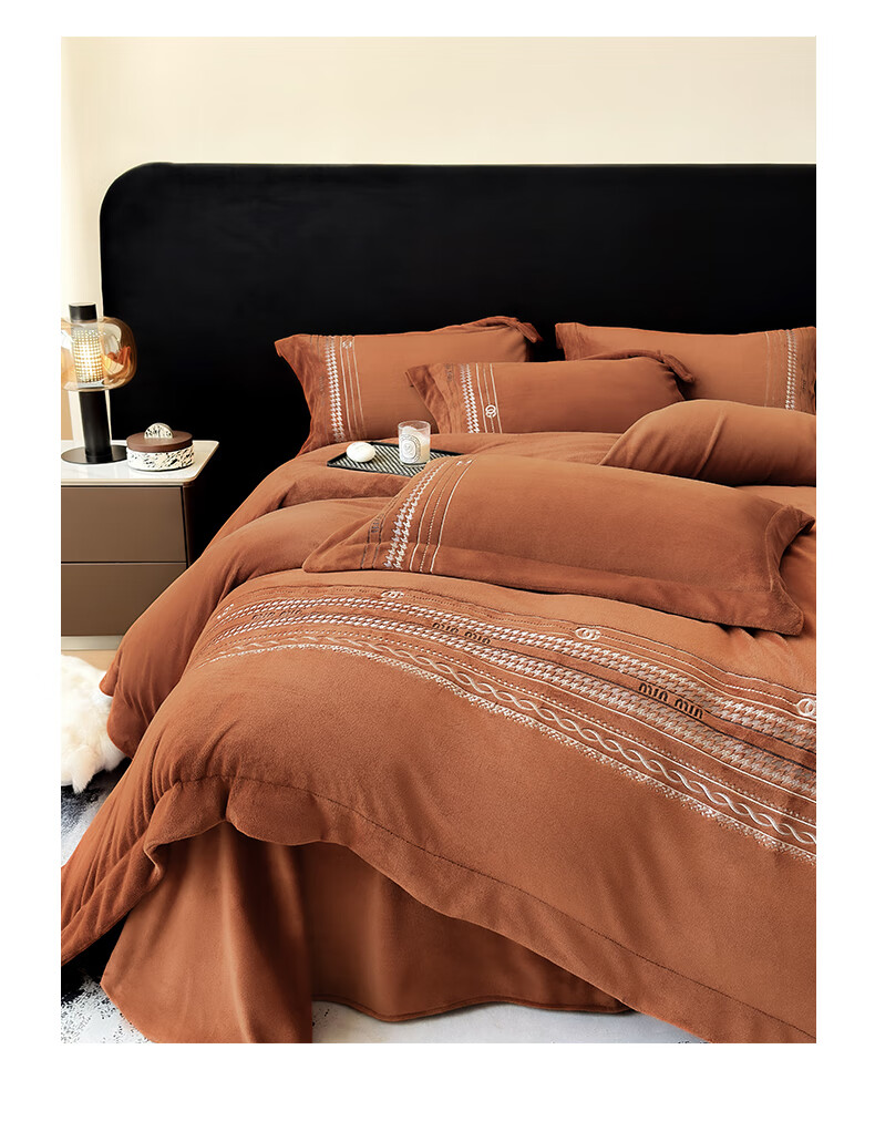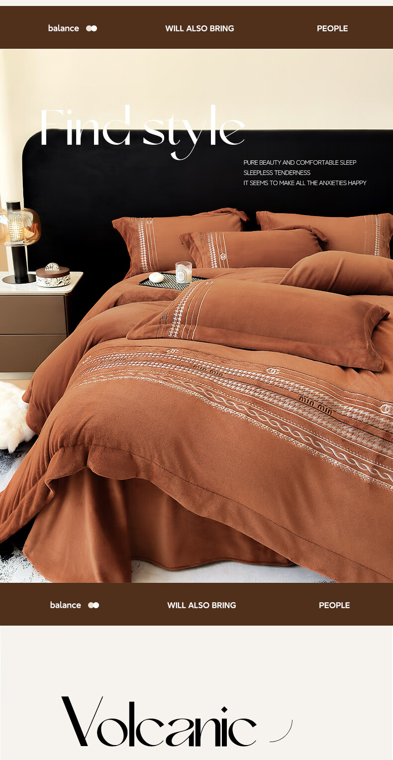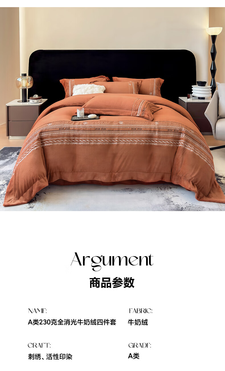 Mercury Series Thickened Anti-static Class A Baby Grade High Weight Milk Velvet Warm Four-piece Set Light Luxury Premium Sheet Sheet Bedding Velvet Hera-Emma Orange 1.5m Sheet Style (Duvet Cover 200*230cm)