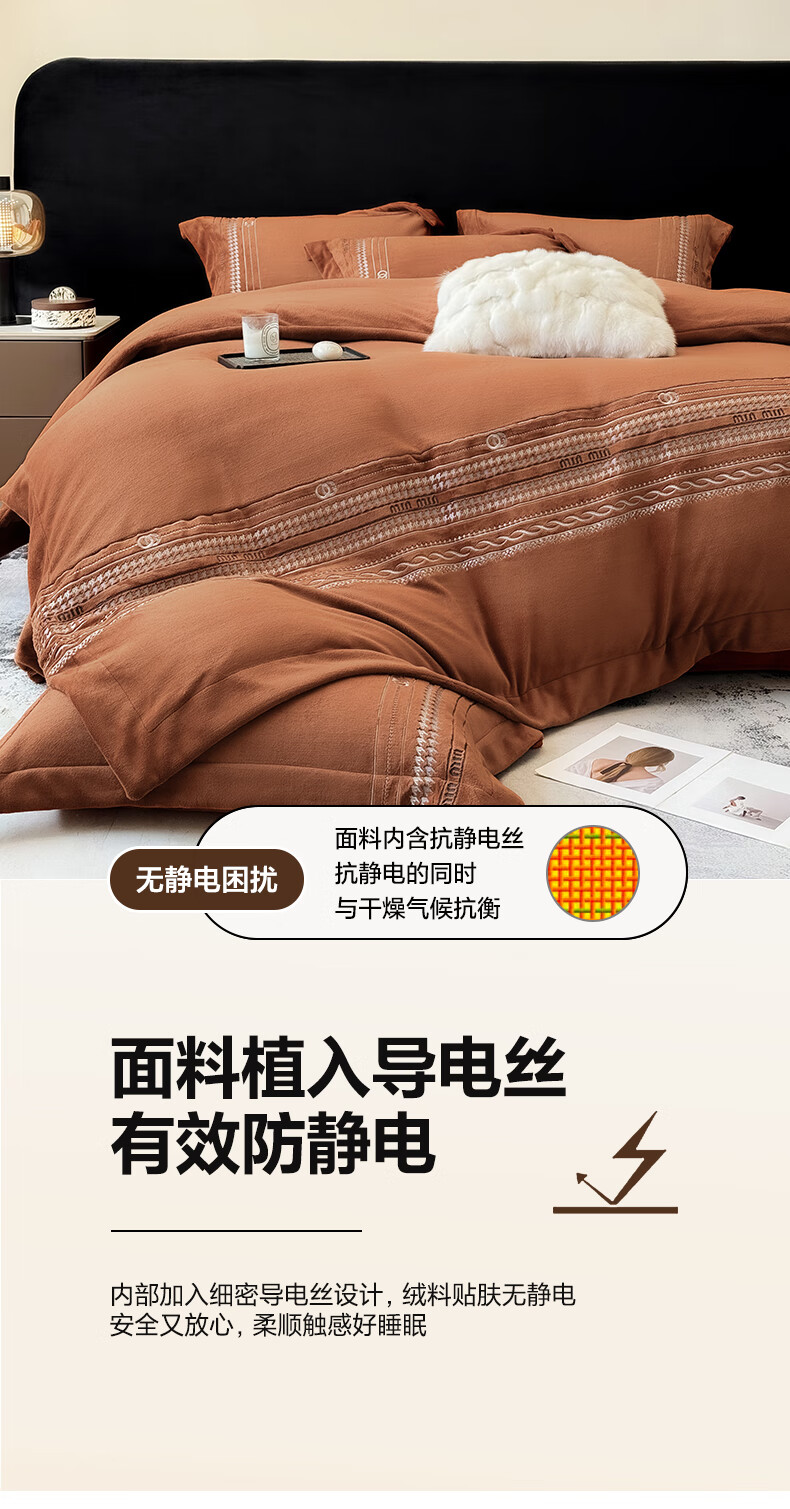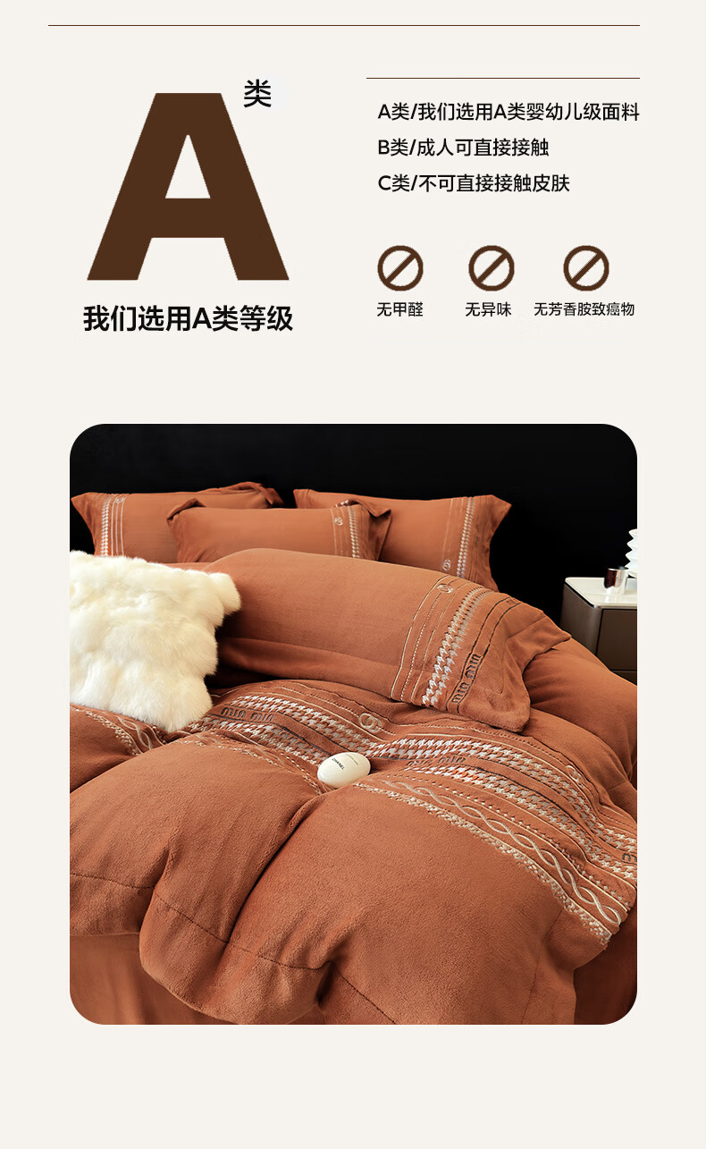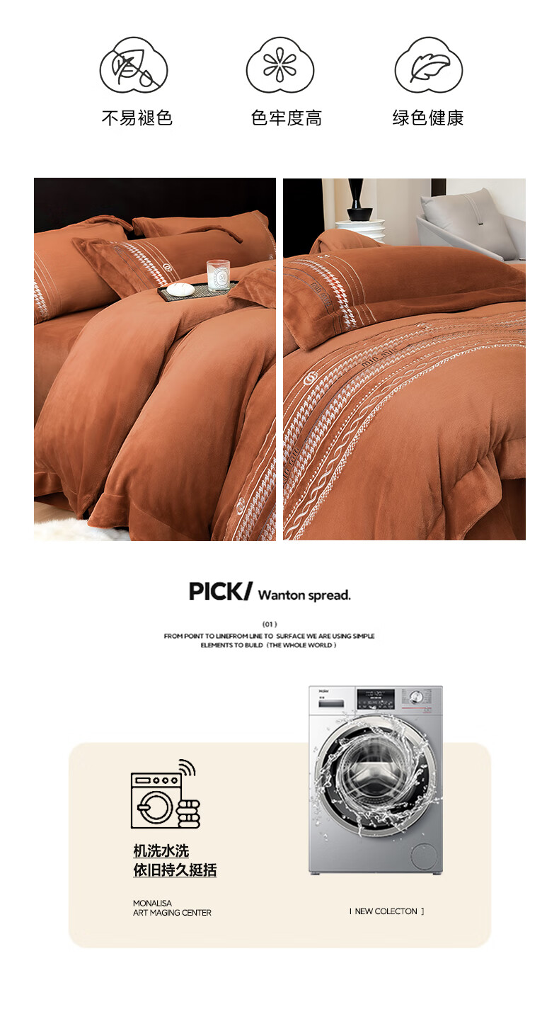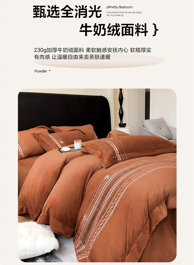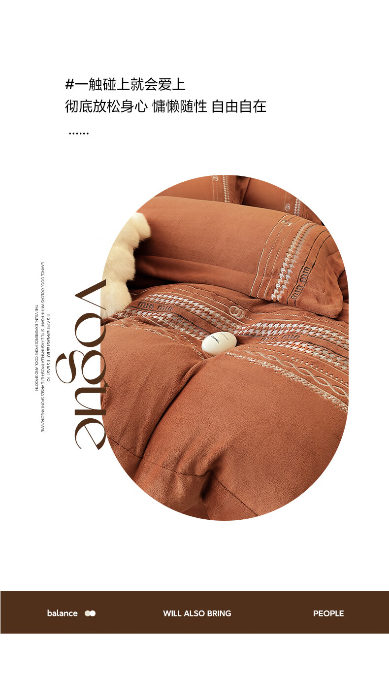 Mercury Series Thickened Anti-static Class A Baby Grade High Weight Milk Velvet Warm Four-piece Set Light Luxury Premium Sheet Sheet Bedding Velvet Hera-Emma Orange 1.5m Sheet Style (Duvet Cover 200*230cm)