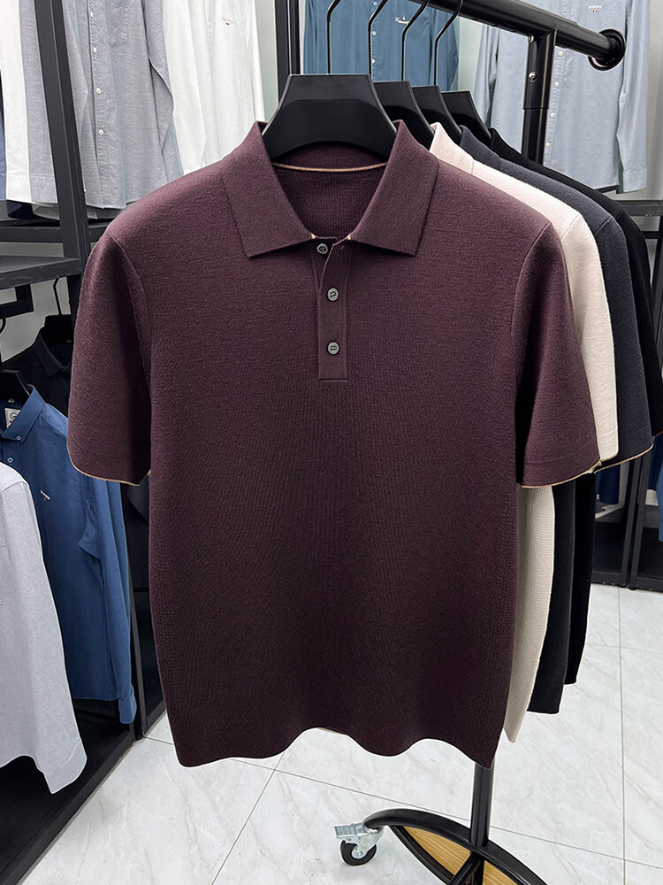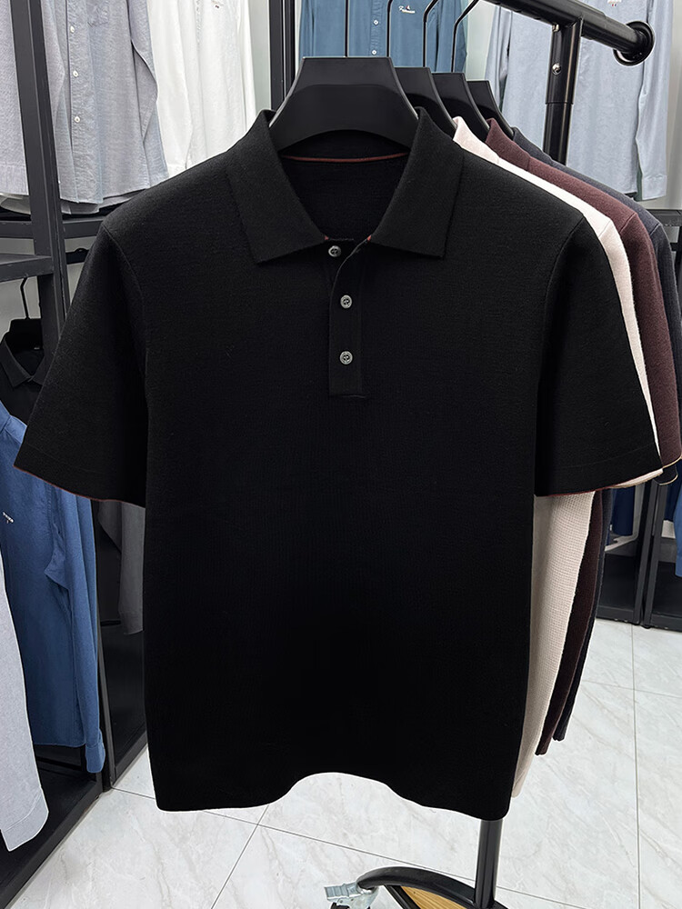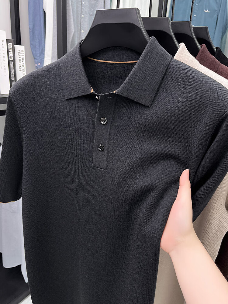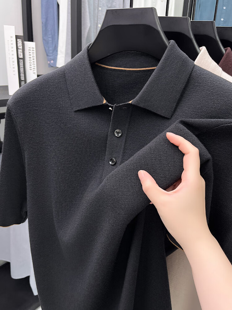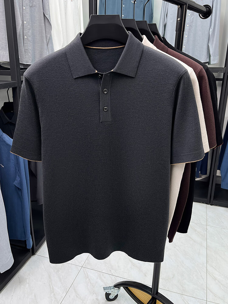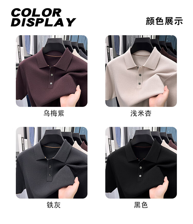 GOLDLION G+ Goldlion Light Luxury Kammgarn, maschinenwaschbar, kurzärmelig, Herren-Wollpullover, Winter-Reverspullover, mittleres Alter, einfarbig, halbe Ärmel, eisengrau, reine Wolle, Q-17605 M 170, empfohlen 120–140 Jin Jin entspricht 0,5 kg