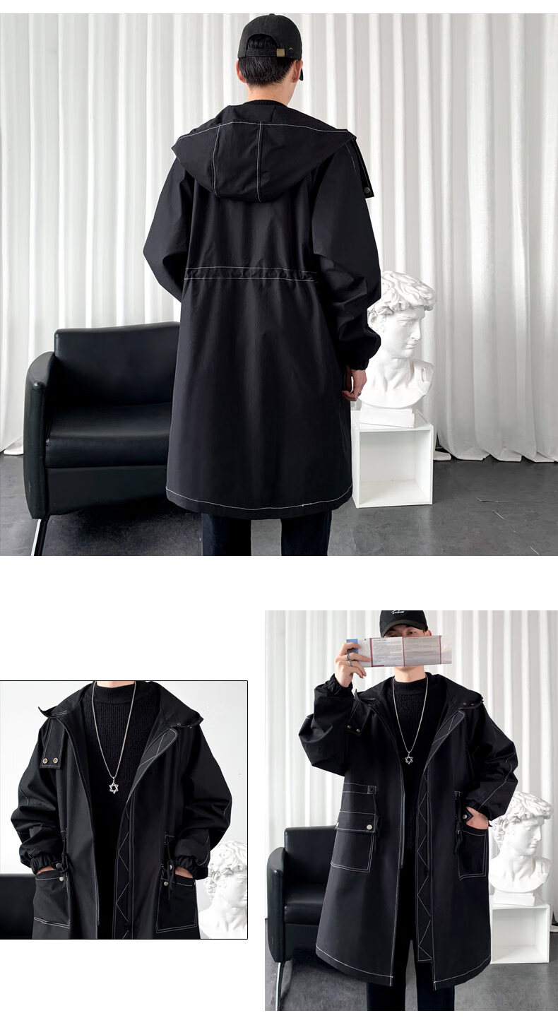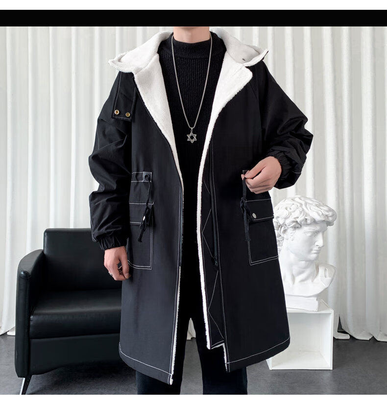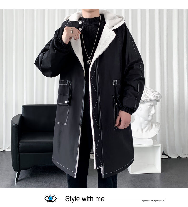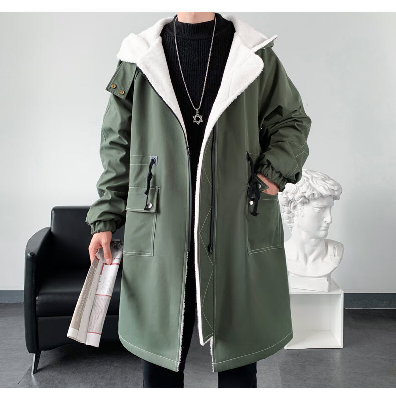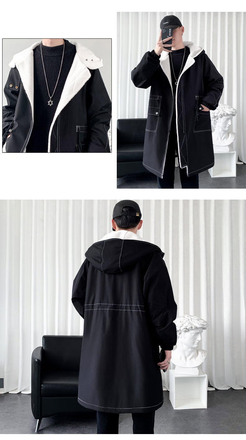 JEEP SPIRIT windbreaker boys mid-length coat autumn and winter plus cashmere loose large size hooded cotton coat British coat men black M 95-120Jin Jin equals 0.5 kg