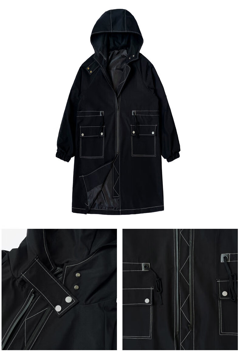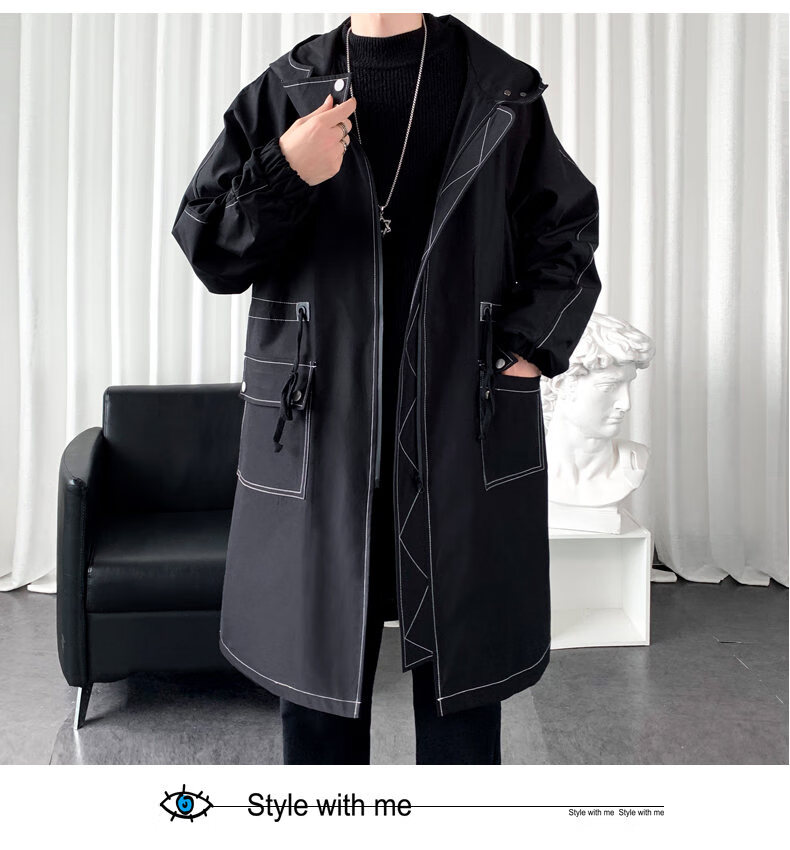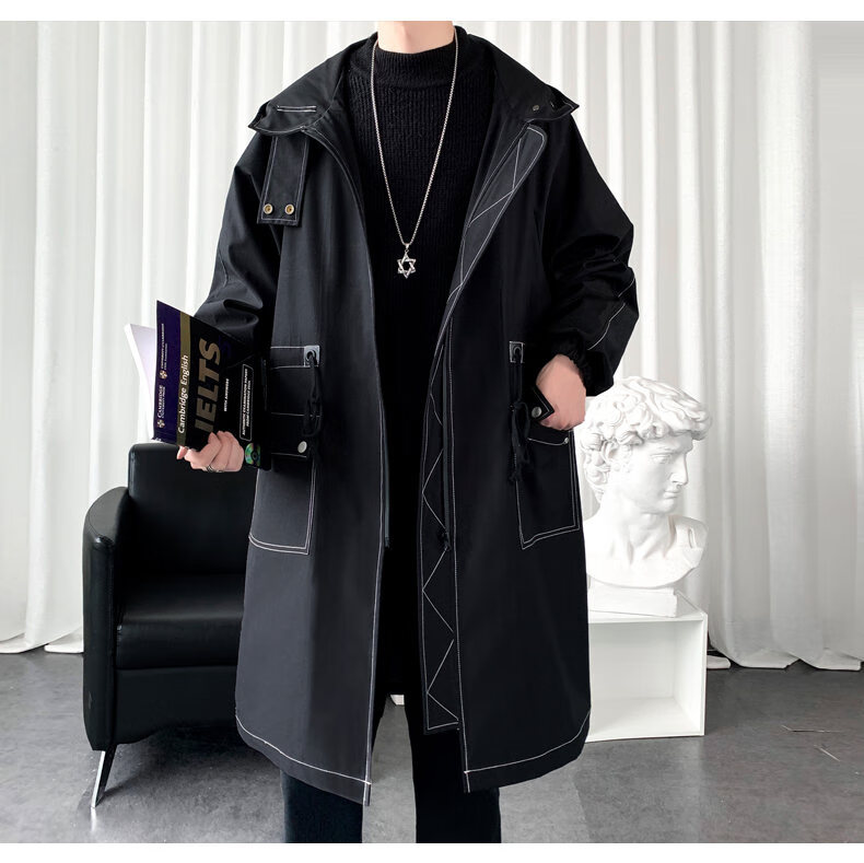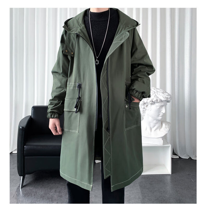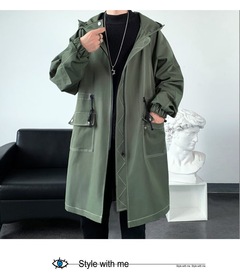 JEEP SPIRIT windbreaker boys mid-length coat autumn and winter plus cashmere loose large size hooded cotton coat British coat men black M 95-120Jin Jin equals 0.5 kg