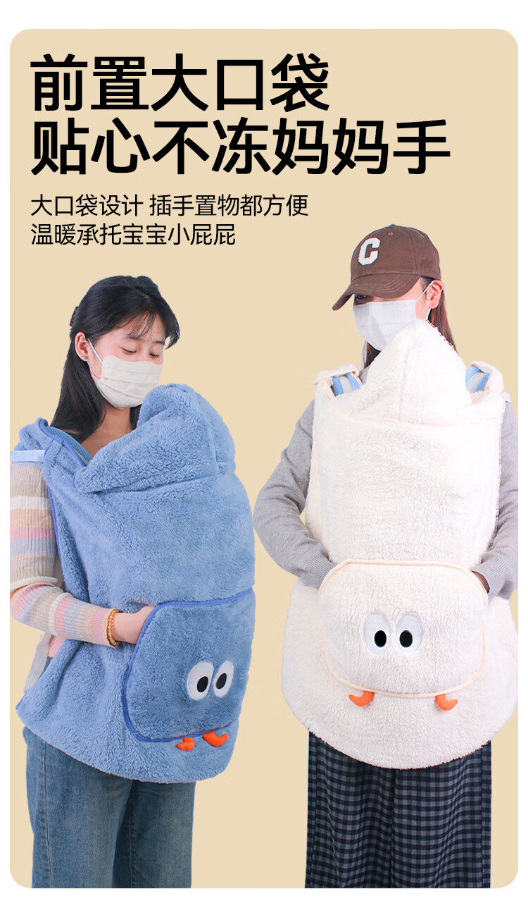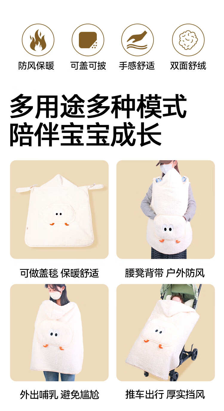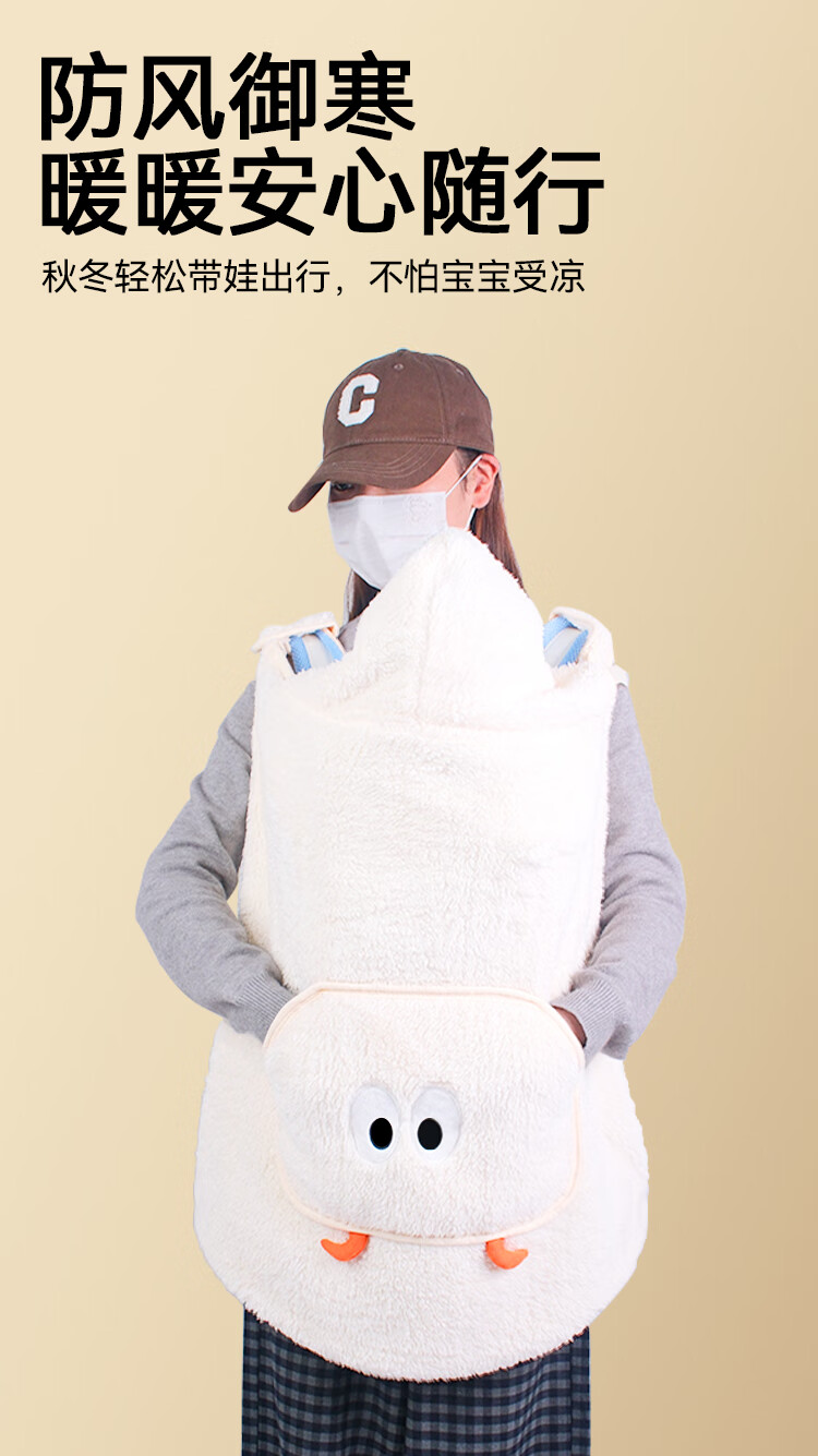 Aceboer baby stroller cover blanket for baby to go out in autumn and winter, warm windproof cloak strap waist stool, children's windshield blanket, big eye windproof quilt, plus velvet and thickening, white