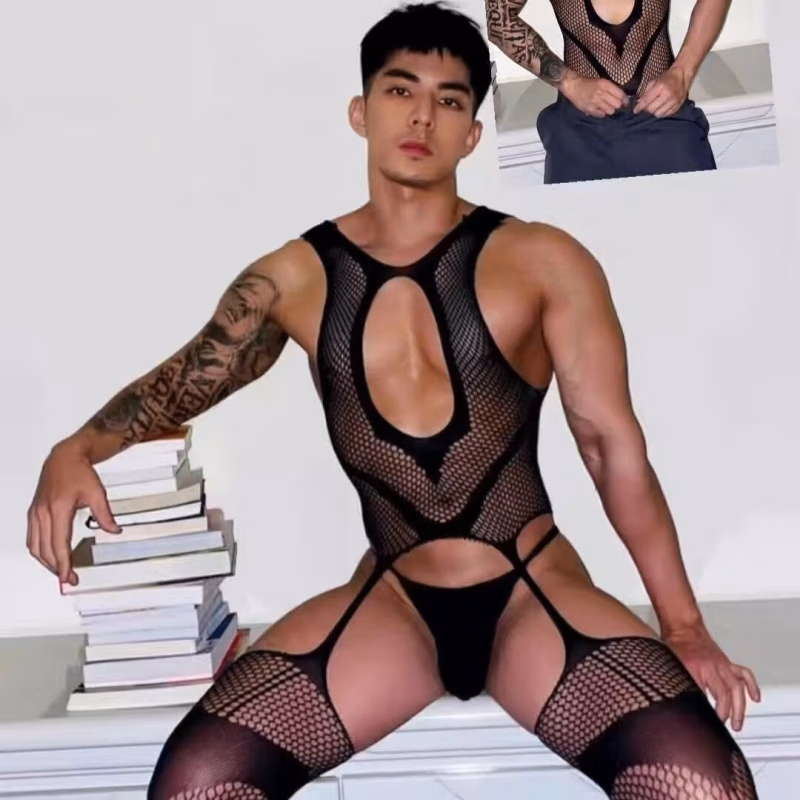 Male and female role-playing suspenders and stockings, sexy and tempting thong open crotch black silk stockings, 3 pieces randomly sent (please contact customer service to specify) men's sexy underwear and stockings